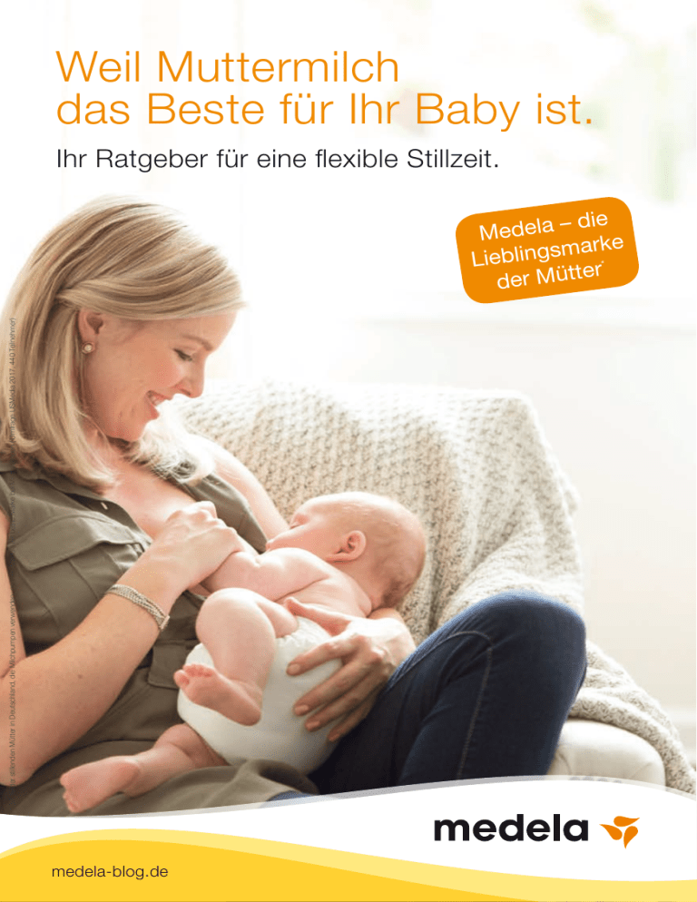 * 57 % der stillenden Mütter in Deutschland, die Milchpumpen verwenden, nennen Medela als beste Marke bei Milchpumpen ( Umfrage USMedia 2017, 440 Teilnehmer) Weil Muttermilch das Beste für Ihr Baby ist. Ihr Ratgeber für eine flexible Stillzeit. die Medela – ke mar Lieblings r* e der Mütt medela-blog.de 1 Sie werden oder sind gerade Eltern geworden? Herzlichen Glückwunsch! Vor Ihnen liegt eine spannende Zeit voller magischer Entdeckungen und Erfahrungen. Eine schöne Stillzeit gehört für die meisten Familien dazu. Sie wissen: Muttermilch ist die beste Nahrung für Babys. Sie enthält einzigartige Bestandteile für die gesunde Entwicklung Ihres Kindes und schenkt Ihnen beiden unvergessliche Augenblicke beim Stillen. Keine noch so fortschrittliche künstliche Säuglingsnahrung kann dieses Wunder der Natur kopieren. Umso wichtiger ist es, dass Sie von Anfang an die Unterstützung bekommen, die Sie brauchen. Denn Stillen ist kein Selbstläufer, es braucht Übung und Geduld bis Sie Ihren individuellen Rhythmus gefunden haben. Es lohnt sich! Für eine möglichst lange Stillzeit zum Wohle Ihres Babys, ohne dass Ihre eigenen Bedürfnisse dabei zu kurz kommen. Ich wünsche Ihnen eine zauberhafte Stillzeit! Ihre Alexandra Buder Mutter, Hebamme und Stillexpertin bei Medela 3 Muttermilch & Stillen Muttermilch ist ... … die beste Medizin. Muttermilch ist eine lebende Substanz, die sich immer wieder den Bedürfnissen und der Entwicklung Ihres Babys anpasst. Sie enthält unter anderem sogar Stammzellen, die sich in andere Körperzellen, wie Knochen-, Fett-, Leber- und Gehirnzellen, verwandeln können und so die Rolle eines „internen Reparatursystems“* übernehmen. … der beste Schutz. Außerdem bekommt Ihr Baby über die Muttermilch wichtige natürliche Abwehrstoffe. Wenn das Kleine krank ist, merkt das Ihr Körper beim Stillen sofort – und ändert die Zusammensetzung der Muttermilch entsprechend, um Ihrem Baby beim Gesundwerden zu helfen. Stillbabys haben auch oft ein geringeres Risiko für Übergewicht, Diabetes, Herzerkrankungen und Ekzeme. … Babys erstes Menü. Alles, was Sie während der Schwangerschaft oder Stillzeit essen, beeinflusst den Geschmack des Fruchtwassers bzw. der Muttermilch und kann spätere Ernährungsvorlieben Ihres Babys prägen. Muttermilch – wichtiger Energielieferant für die Gehirnentwicklung Wussten Sie, dass das Gehirn das fettreichste Organ im Körper ist? In den ersten sechs Lebensmonaten verdoppelt es sich fast und nach zwei Jahren hat es bereits 80 % seiner vollen Größe erreicht. Muttermilch unterstützt diese wichtige Entwicklung mit optimal abgestimmten Bestandteilen. Gehirn bei der Geburt 0,38 kg Gehirn mit 6 Monaten 0,64 kg Gehirn mit 1 Jahr 0,97 kg Gehirn eines Erwachsenen 1,25 kg Muttermilch & Stillen * Hassiotou, F. et al. Breastmilk is a novel source of stem cells with multilineage differentiation potential. Stem Cells 30, 2164-2174 (2012) 5 Stillen hat viele Vorteile Stillen ist ein einzigartiger, emotionaler Moment, der ganz Ihnen und Ihrem Baby gehört. Ihr Baby spürt dabei Ihre Wärme, Nähe und Liebe, eine Verbindung, die Sie lange über die Stillzeit hinaus stärkt. Doch nicht nur Ihr Baby profitiert, auch für Sie selbst hat Stillen viele Vorteile! Weniger Aufwand Unkomplizierter geht es nicht: Ihre Milch ist immer trinkfertig, perfekt temperiert und „gut verpackt” verfügbar. Sie müssen keine Fläschchen füllen oder reinigen, stattdessen können Sie beim Stillen entspannt die Füße hochlegen und alle paar Stunden eine kuschelige Auszeit mit Ihrem Baby genießen. Weniger Figurprobleme Wenn Sie Muttermilch produzieren, verbrennt Ihr Körper Kalorien. Das heißt, Sie können Ihr ursprüngliches Gewicht deutlich schneller zurückgewinnen als eine Mutter, die nicht stillt. Weniger Stress Viele Mütter berichten, dass sie sich weniger gestresst fühlen, wenn sie stillen. Vermutlich liegt das an der Ausschüttung von Oxytocin (Milchspendehormon) und Prolaktin (Milchbildungshormon). Diese Hormone werden produziert, wenn Ihr Baby an Ihrer Brust saugt und haben eine beruhigende, entspannende Wirkung auf Sie beide. Mehr Gesundheitsschutz Jüngsten Studien zufolge senkt Stillen Ihr Risiko, Krankheiten wie Brust-, Eierstock- oder Gebärmutterhalskrebs zu entwickeln. Zudem schützt es vor Herzkrankheiten, Herzinfarkt, Bluthochdruck und Diabetes. Und die Studien deuten auch darauf hin: Je länger Sie stillen, desto höher ist der Schutz, den Sie aufbauen. Wenn das kein Ansporn ist! 6 Muttermilch & Stillen Wie fühlt sich Stillen eigentlich an? „Wenn ich meine Tochter stille, ist das ein Moment der Ruhe.“ Monika Egert „Beim Stillen fühlt man sich so richtig als Mama.“ Nina Müller „In dem Moment empfindet man unheimlich viel Liebe.“ Vanessa Alatzas „Am Anfang hatte ich Schmerzen. Ich habe jedes Mal ein Tränchen verdrückt. Aber es hat sich einfach total gelohnt.“ Katrin Jansen „Es ist für mich eine richtige Bindung, die ich dann spüre.“ Stefanie Schenk Muttermilch & Stillen 7 Stillstart Aller Anfang ist ... voller Liebe Die Geburt eines Babys ist ein überwältigender Moment. Tausende Eindrücke werden in den ersten Minuten, Stunden und Tagen auf Sie zukommen – ein wahrer Sturm der Gefühle. Es lohnt sich deshalb, schon in der Schwangerschaft darüber nachzudenken, wie Sie sich diese ersten magischen Stunden vorstellen, und sich so gut wie möglich auf den Stillstart vorzubereiten. Vielleicht möchten Sie sich ja bereits vor der Geburt ein bequemes Stillkissen besorgen? Ein gut sitzender Still-BH ist auch in der Schwangerschaft schon nützlich. Je besser Sie sich informieren und vorbereiten, desto leichter wird Ihnen in der Regel der Stillstart fallen. Denn in den ersten Tagen und Wochen zählt nur eins: Ihr Baby! Die Brust bereitet sich vor Unter dem Einfluss der Schwangerschaftshormone verändern sich Ihre Brüste: Die Milchdrüsen entwickeln sich, die Brust nimmt an Größe und Gewicht zu. Auch die erste Mutter
