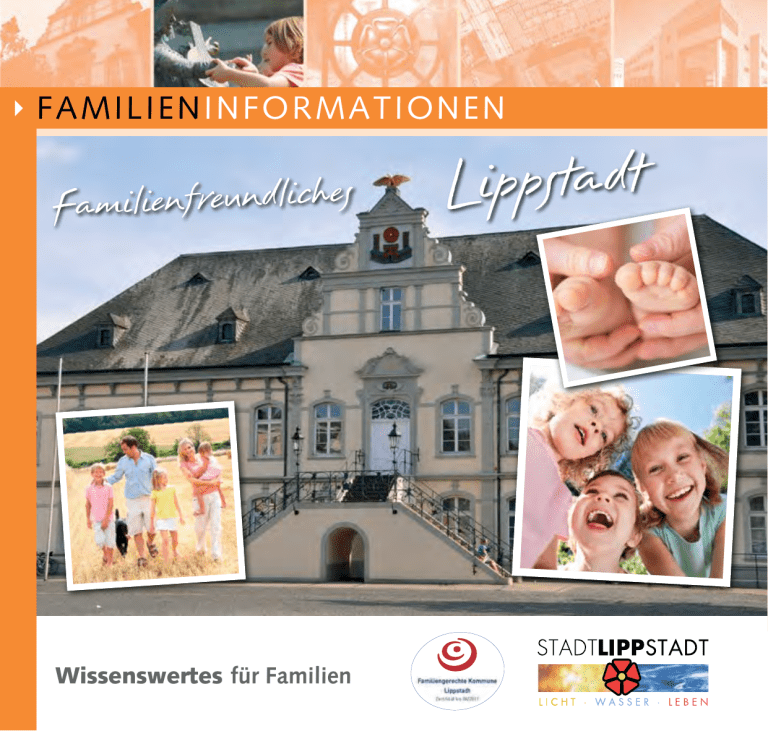 4 FAMILIENINFORMATIONEN Familienfreundliches Wissenswertes für Familien Lippstadt INFORMATIONEN FÜR FAMILIEN Liebe Eltern, die Familienfreundlichkeit unserer Stadt ist mir und vielen anderen Akteuren in der Politik, in den Lippstädter Betrieben und Vereinen sehr wichtig. So konnten in den letzten Jahren bereits viele Verbesserungen erreicht werden. Hierbei denke ich besonders an den Ausbau der Betreuungsplätze für Kinder unter drei Jahren. Hierbei hat die Stadt Lippstadt große Anstrengungen unternommen, um den veränderten Bedürfnissen der Familien – insbesondere hinsichtlich der Vereinbarkeit von Familie und Beruf – gerecht zu werden. So sind viele Kitaerweiterungen und auch komplette Neubauten entstanden. Besonders freue ich mich, dass auch Lippstädter Betriebe selbst in diesem Bereich investiert haben. Auch die Plätze in der Offenen Ganztagsschule OGS wurden stetig erweitert; die Mehrheit der weiterführenden Schulen konnte inzwischen die Ganztagsbetreuung einführen. Als Lippstädter Besonderheit gibt es an vier Grundschulen jetzt sogar eine Frühbetreuung ab 7:00 Uhr, weitere Schulen werden folgen. Auch im Stadtbild und in den Grünanlagen zeigt sich die Familienfreundlichkeit Lippstadts. So konnte der Grüne Winkel stetig weiterentwickelt und mit dem Entree und Entenspielplatz, dem Bewegungsparcours oder den Liegebereichen deutlich aufgewertet werden. In gleicher Weise ist die Anlage am Jahnplatz mit dem Kombibad CabrioLi, dem neugestalteten Skate- und Dirtpark besonders für Familien mit älteren Kindern noch attraktiver geworden. Und manchmal sind es die vermeintlichen Kleinigkeiten, die die Lebensqualität verbessern, z. B. die verbreiterten Parkbuchten auf dem neuen Parkplatz gegenüber dem Stadttheater. Hier wurde eine Anregung der Eltern aus dem Lokalen Bündnis für Familie aufgegriffen, um den Einstieg mit Babyschalen und Kinderwagen sowie für Senioren zu erleichtern. Die genannten Verbesserungen sind nur Beispiele, die aber neben vielen anderen Maßnahmen dazu beigetragen haben, dass die Stadt Lippstadt jetzt zum zweiten Mal die Auszeichnung „Familiengerechte Kommune“ vom Land NRW verliehen bekommen hat. G RUSWORT DES B ÜRGERM EIST ERS ÜBERSCHRIFT GRUSWORT DES BÜRGERMEISTERS In diesem Prozess ist mir die Beteiligung und Mitwirkung der Familien ganz besonders wichtig, und ich ermutige Sie hiermit ausdrücklich, sich mit Anregungen und Vorschlägen an die Stadt Lippstadt und gerne auch an mich ganz persönlich zu wenden, da Sie selbst die besten Experten für Familienfreundlichkeit sind. Ihr Christof Sommer (Bürgermeister) 1 Rund um´s Baby 2 Grußwort des Bürgermeisters . . . . . . . . . . . . . . . . . . . . . . . . 1 Branchenverzeichnis . . . . . . . . . . . . . . . . . . . . . . . . . . . . . . . 4 Impressum . . . . . . . . . . . . . . . . . . . . . . . . . . . . . . . . . . . . . . 4 3.10 Seniorenbüro, Pflegeberatung und Büro für bürgerschaftliches Engagement . . . . . . . . 37 3.11 Die Tafel in Lippstadt . . . . . . . . . . . . . . . . . . . . . . . 38 1.Eltern werden 4.Familienfreundliches Lippstadt 4.1 Jugend- und Familienbüro . . . . . . . . . . . . . . . . . . . 39 4.2 Lokales Bündnis für Familie . . . . . . . . . . . . . . . . . . 39 4.3 Familienpass . . . . . . . . . . . . . . . . . . . . . . . . . . . . . 40 4.4 Städt. Musikschule und Volkshochschule . . . . . . . . 40 4.5 Theater . . . . . . . . . . . . . . . . . . . . . . . . . . . . . . . . . 41 4.6 Familienbildung . . . . . . . . . . . . . . . . . . . . . . . . . . . 41 4.7 Kunst und Musik für Kinder und Jugendliche . . . . . 42 4.8 Stadtbücherei . . . . . . . . . . . . . . . . . . . . . . . . . . . . . 43 4.9 Stadtmuseum . . . . . . . . . . . . . . . . . . . . . . . . . . . . 43 4.10 Familienfreundliche Innenstadt . . . . . . . . . . . . . . . 43 4.11 Spielplätze in Lippstadt . . . . . . . . . . . . . . . . . . . . . 44 4.12 Weitere Freizeitgelände . . . . . . . . . . . . . . . . . . . . . 44 4.13 Kombibad CabrioLi . . . . . . . . . . . . . . . . . . . . . . . . 44 4.14Ferienangebote . . . . . . . . . . . . . . . . . . . . . . . . . . . 45 4.15 Der Schnullerbaum . . . . . . . . . . . . . . . . . . . . . . . . 45 4.16 Schwimmkurse für Kinder . . . . . . . . . . . . . . . . . . . 45 4.17 Jugendtreffs in Lippstadt . . . . . . . . . . . . . . . . . . . . 46 4.18 „StadtBus“ Lippstadt . . . . . . . . . . . . . . . . . . . . . . . 47 1.1 1.2 1.3 1.4 1.5 1.6 Schwangerschaft und Familienplanung . . . . . . . . . . 5 Geburt eines Kindes . . . . . . . . . . . . . . . . . . . . . . . . . 6 Krabbelgruppen, Babyschwimmen, PEKiP . . . . . . . . 9 Frühe Hilfen . . . . . . . . . . . . . . . . . . . . . . . . . . . . . . 11 Nicht miteinander verheiratete Eltern . . . . . . . . . . . 12 Adoptiv- und Pflegekinder . . . . . . . . . . . . . . . . . . . 13 2.Kinderbetreuung 2.1 Allgemeines zu Kindertageseinrichtungen . . . . . . . 14 2.2 Betreuungszeiten, Anmeldung und Elternbeitrag . . 14 2.3 Die Kindertageseinrichtungen im Überblick . . . . . . 15 2.4 Spielgruppen . . . . . . . . . . . . . . . . . . . . . . . . . . . . . 25 2.5 Kindertagespflege . . . . . . . . . . . . . . . . . . . . . . . . . 25 2.6 Betreuungsangebote an den Schulen . . . . . . . . . . . 26 2.7 Weitere Betreuungsangebote – „Babysitterbörse“ . 30 3.Rat und Hilfe 3.1 Hilfe bei Trennung und Scheidung . . . . . . . . . . . . . 31 3.2 Beratung zur Erziehung . . . . . . . . . . . . . . . . . . . . . 32 3.3 Opstapje – Das Spiel- und Lernproramm . . . . . . . . 32 3.4 Besondere Förderbedarfe von Kindern . . . . . . . . . . 32 3.5 Probleme von Jugendlichen . . . . . . . . . . . . . . . . . . 33 3.6 Nachhilfe und Hausaufgabenhilfe . . . . . . . . . . . . . 35 3.7 Migrationsdienste . . . . . . . . . . . . . . . . . . . . . . . . . 35 3.8 Finanzielle Hilfen . . . . . . . . . . . . . . . . . . . . . . . . . . 36 3.9 Verbraucherberatung und Schuldnerberatung . . . . 37 INHA LT SV ERZ EIC HNIS ÜBERSCHRIFT INHALTSVERZEICHN