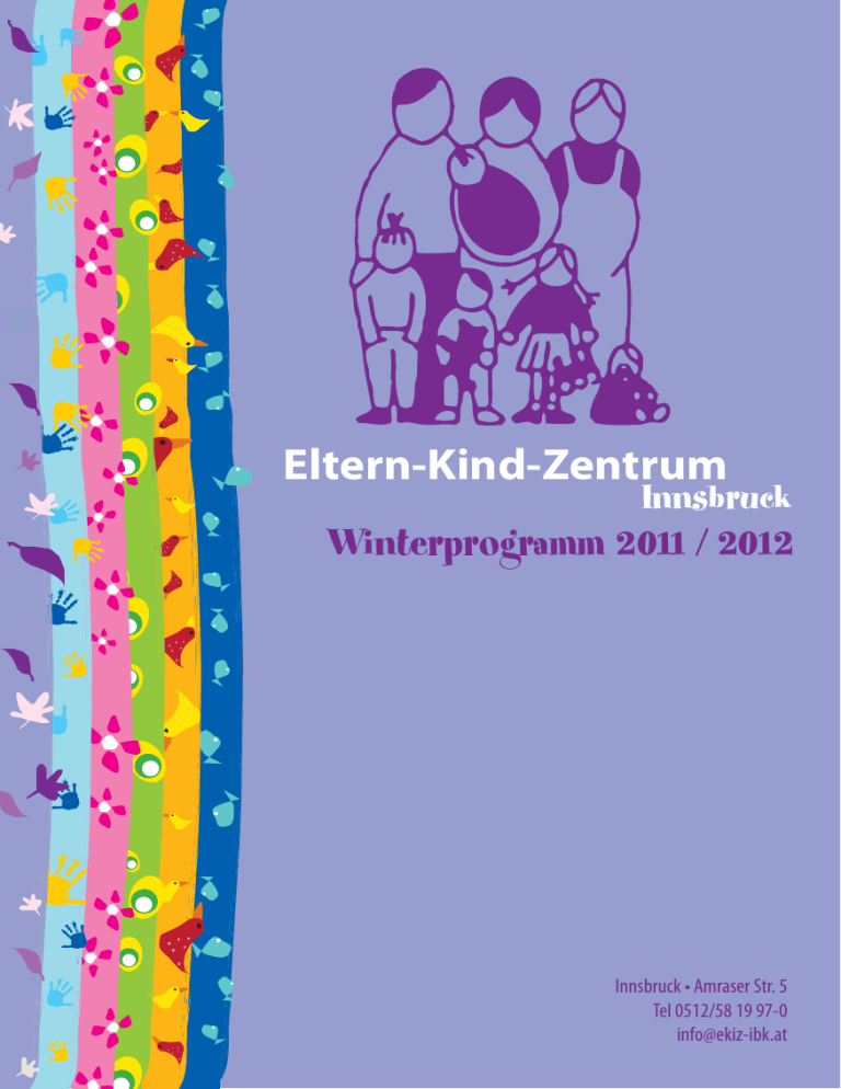 Eltern-Kind-Zentrum Innsbruck Winterprogramm 2011 / 2012 Innsbruck • Amraser Str. 5 Tel 0512/58 19 97-0 [email protected] Inhaltsverzeichnis Anmeldung / Infos Neuigkeiten & Spezialitäten 4 Fachtagung „Allein erziehend - Allein gelassen?“ Sommerprogramm 2011 Schwangerschaft und Geburt Säuglingsalter 9 12 Eltern-Kind-Gruppen 16 Eltern-Kind-Gruppen ohne Anmeldung 18 Eltern-Kind-Gruppen mit Anmeldung 19 Kurse im Überblick Spiel & Spaß im Wasser Kinderkrippe Familienberatung 24 30 33 34 Elternratgeber 35 Kleingruppenberatung 43 Themenblatt: Bildung von Anfang an 46 Menschen, die mit ihren Kindern alleine in einem Haushalt leben, stehen vor vielfachen Herausforderungen und sind an vielen Stellen mehrfach belastet. Das wird in unserer Gesellschaft oft übersehen, obwohl diese Familienform von immer mehr Menschen – auch in unserem Zentrum – gelebt wird. Um die Situation von „Allein“erziehenden verstärkt in den Blick zu nehmen, veranstalten wir am Freitag, den 4. November eine Fachtagung im Haus der Begegnung. Dort wollen wir den speziellen Bedürfnissen und Schwierigkeiten nachgehen, aber auch die Chancen beleuchten, die sich für Ein-Eltern-Familien durch vorbildliche Projekte in den Bereichen Kinderbetreuung, Arbeitszeit, Qualifizierung, Wohnen, Coaching und Beratung… hier in Tirol schaffen lassen. (vorläufiges Programm Seite 39) Neue Kurse In der Schwangerschaft: Singing Soul, Schwimm & Gym Für Babys: Bindung statt Erziehung Eltern-Kind-Gruppen: Als Eichkätzchen durch die Welt, Das große Krabbeln, Bunte Reise durch das Jahr Ein-malige Eltern-Kind-Workshops: Tanzen für Groß & Klein, Herbst- und Winternachmittage, Papierwerkstatt, Kleistermeisterei, Farbimprovisationen Elternratgeber: Einführung in die Osteopathie, Kinderzimmergestaltung, Rituale im Familienalltag, Infos für Alleinerziehende, MontessoriSchnupperkurs Ideencafé Wir laden euch zum gemütlichen Ideenaustausch und Einstieg ins neue Semester ein: alle, die Lust haben, uns ihre Ideen, Rückmeldungen, Erwartungen und Wünsche zum EKiZ mitzuteilen. Dies gilt für Erwachsene und Kinder natürlich gleichermaßen. Im EKiZ-Garten (bei schlechtem Wetter im großen Raum), am Donnerstag, 22. September, von 15 – 17 Uhr. Für Getränke und Kuchen ist gesorgt. Es freuen sich auf euch und eure Ideen Malina & Michi Impressum: Herausgeber: Eltern-Kind-Zentrum Innsbruck, Amraser Str. 5, 6020 Innsbruck Für den Inhalt verantwortlich: Malina Klöppel, Michaela Reinisch; Illustration: Nina Hammerle Grafik: Evelyn v. Mörl; Druck: A. Weger Wir danken außerdem unseren UnterstützerInnen: Stadt Innsbruck – Amt für Erziehung, Bildung und Gesellschaft; Land Tirol – Referat für Kinder- und Jugendbetreuung, Abteilung für Gesundheit, Familie und Jugend; Bundesministerium für Wirtschaft, Familie und Jugend; Raiffeisen Landesbank Tirol AG; Innsbrucker Kommunalbetriebe AG Doris Stetter (Sekretariat) 2 Inhaltsverzeichnis Michaela Reinisch & Malina Klöppel Petra Schöll-Hosp, Gerhild Heinz-Possert, Egon Stöger (Geschäftsführung) (Vorstand) Editorial 3 Anmeldung zu den Kursen Öffnungszeiten und Ferien 1) Vorab-Anmeldung für Mitglieder: Möglichkeit zur früheren Anmeldung als Vorteil Deiner Mitgliedschaft: Du kannst Dich per Mail, telefonisch oder direkt vor Ort beim Journaldienst anmelden, sobald Du unsere Mail mit dem aktuellen Programmheft im pdf-Format erhalten hast (einige Wochen vor Ende des laufenden Semesters)! Wir haben ab Montag, den 19. September, wieder montags bis freitags von 9 – 18 Uhr für Euch geöffnet. An Feiertagen und während der Schulferien ist unser Zentrum geschlossen. Unser Zentrum ist geschlossen: Mittwoch, 26.10.2011 (Nationalfeiertag) Montag, 31.10.2011 (Fenstertag), Dienstag, 01.11.2011 (Allerheiligen) und Mittwoch, 02.11.2011 (Allerseelen) Donnerstag, 08.12.2011 (Maria Empfängnis) und Freitag, 09.12.2011 Ab Samstag, 24.12.2011 bis Sonntag, 08.01.2012 (Weihnachtsferien) Montag, 13.02.2012 – So, 19.02.2012 (Semesterferien) 2) Online-Anmeldung für alle: Ab 1. September 2011 kannst du dich jederzeit ganz bequem und ohne lästige Wartezeit online über unsere Homepage www.ekiz-ibk.at zu unseren Kursen anmelden. Während unserer Öffnungszeiten ist die Anmeldung außerdem ganztägig (telefonisch oder persönlich) beim Journaldienst möglich. Die Kurse des Wintersemesters beginnen ab Montag, den 26. September. Sicherheit 0512 / 5 8 19 97 k.at -0 kiz-ib e . w ww Die Anmeldung sowohl zu unseren Kursangeboten als auch zu einmaligen Veranstaltungen wie Modulen, Seminaren und Workshops ist verbindlich! Wir bitten euch, den Kursbeitrag innerhalb von einer Woche nach der Anmeldung zu überweisen. Dies gilt auch für einmalige Veranstaltungen. Achtung: Wir verschicken keine Zahlscheine! Konto 670 141 BLZ 36000 RLB Bitte die Nummer des Kurses und den Namen der Teilnehmenden bei der Überweisung unter „Verwendungszweck“ vermerken! Stornierungen Bei Stornierungen innerhalb von einer Woche vor Beginn eines Kurses oder einer einmaligen Veranstaltung (bzw. innerhalb von zwei Wochen vor Beginn eines Geburtsvorbereitungskurses) erhältst Du den Kursbeitrag abzüglich einer Stornogebühr von € 10,– zurück. Bei Stornierungen am Tag oder nach Beginn eines Kurses ist uns eine Rückerstattung des Kursbeitrages aus Kostengründen leider nicht möglich. 4 Anmeldung Wir sind sehr darum bemüht, dass es in unseren Räumlichkeiten möglichst wenige Gefahrenquellen für Babys und Kleinkinder gibt. Trotzdem möchten wir darauf hinweisen, dass in unserem Zentrum (außer in der Kinderkrippe) die Eltern für die Sicherheit ihrer Kinder zuständig sind und wir bei Unfällen nicht haften können. Mitgliedschaft Das Eltern-Kind-Zentrum Innsbruck ist ein Verein, der vom Engagement seiner Mitglieder getragen wird. Je mehr Menschen sich für das EKiZ verantwortlich fühlen, desto lebendiger ist es. Wir freuen uns daher über jede und jeden, die mit ihrer Mitgliedschaft unsere Ideen, Ziele und Werte unterstützen! Auße