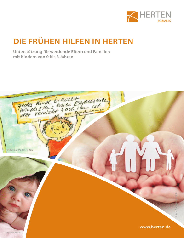 DIE FRÜHEN HILFEN IN HERTEN Unterstützung für werdende Eltern und Familien mit Kindern von 0 bis 3 Jahren © Syda Productions/Fotolia ©Matthias Müller, Herten www.herten.de © Jamey Ekins/Fotolia IMPRESSUM Herausgeber: Stadt Herten Der Bürgermeister V.i.S.d.P.: Dorthe Stanberger FB 4 – Familie, Jugend und Soziales Jugendamt Kurt-Schumacher-Str. 2 45699 Herten Tel.: (0 23 66) 303 442 [email protected] Redaktion: Dorthe Stanberger Design und Druck: Eigendruck Stadtdruckerei Herten Auflage:500 Veröffentlichung: 2 April 2017 Vorwort Liebe Eltern, liebe Familien, die Geburt eines Kindes ist für alle Beteiligten, für die werdenden Eltern, aber auch für die ganze Familie etwas ganz Besonderes. Zur Vorfreude können sich aber auch Fragen und Unsicherheiten für werdende Eltern, Geschwister, Tanten, Onkel und Großeltern mischen. Damit Sie bestmöglich durch diese spannende Zeit kommen, möchten wir Ihnen diese Broschüre mit an die Hand geben. Die Koordinierungsstelle „Netzwerk Frühe Hilfen und Kinderschutz“, angesiedelt im Fachbereich Familie, Jugend und Soziales der Stadt Herten, hat hier gemeinsam mit dem Hertener Netzwerk „Frühe Hilfen und Kinderschutz“ umfassende Informationen zu Angeboten der Beratung, Vermittlung und praktischen Unterstützung für Sie zusammengestellt, die sie während der Schwangerschaft und in den ersten drei Lebensjahren Ihres Kindes begleiten sollen. Auf den folgenden Seiten finden Sie Informationen und Beratungsangebote für die Zeit vor und nach der Geburt, zum Thema Gesundheit, Betreuung, Familienbildungs- und Bewegungsangebote, Ansprechpartner und Beratungsangebote für Mütter, Väter und Familien sowie Informationen zu den Themen Erziehung und Förderung, Entlastung und Unterstützung sowie finanzielle Hilfen. Ich lade Sie herzlich dazu ein, die Angebote zu nutzen, und wünsche Ihnen und Ihrer Familie von ganzem Herzen einen guten Start in diese Zeit! Ihr Fred Toplak Bürgermeister 3 Die Frühen Hilfen in Herten DIE FRÜHEN HILFEN IN HERTEN Unterstützung für werdende Eltern und Familien mit Kindern von 0 bis 3 Jahre Die Geburt eines Kindes… …ist der Beginn eines neuen Lebensabschnittes für die ganze Familie. …stellt alle Eltern vor eine neue Herausforderung. Oft ist dieser Neuanfang mit viel Freude, Hoffnung und Wünschen verbunden – Fragen, Unsicherheiten oder Ängste gehören jedoch ebenso dazu. Manchmal braucht es Zeit, starke Nerven sowie Unterstützung und Entlastung, bis sich der Alltag eingespielt hat. Um Schwangere und Familien gerade in solchen Situationen zu unterstützen, den Start ins „Abenteuer Leben“ für ihr Kind so liebevoll, sicher und gesund wie möglich zu gestalten, gibt es die Frühen Hilfen. In Herten halten verschiedene Einrichtungen und Dienste eine breite Palette an Angeboten der Information, Beratung, Vermittlung und praktischen Unterstützung im Lebensalltag für Schwangere und Familien mit Säuglingen und Kleinkindern bereit. Im November 2013 wurde das Hertener Netzwerk „Frühe Hilfen und Kinderschutz“ ins Leben gerufen. Diese Broschüre wurde gemeinsam von allen Netzwerkpartnern erarbeitet und erhebt keinen Anspruch auf Vollständigkeit. Weitere Einrichtungen und Dienste, die bisher nicht in der Broschüre vertreten sind, dies aber gerne sein möchten, sind aufgerufen, sich bei der unten angegebenen Ansprechpartnerin zu melden, um die Broschüre bei der nächsten Auflage um ihre Angaben zu bereichern. In dieser Broschüre (und voraussichtlich ab Frühsommer 2017 im Internet unter www.herten.de) finden Sie einen umfassenden Angebotskatalog zu folgenden Themen: • • • • • • • • • Vor der Geburt Nach der Geburt Gesundheit Bildung und Betreuung Familienbildungs- und Bewegungsangebote Beratung für Mütter, Väter und Familien Erziehung und Förderung Entlastung und Unterstützung Finanzielle Hilfen und vieles mehr… IHRE ANSPRECHPARTNERIN FÜR DIE FRÜHEN HILFEN IN HERTEN: Stadt Herten Fachbereich Familie, Jugend und Soziales Koordinierungsstelle „Netzwerk Frühe Hilfen und Kinderschutz“ Dorthe Stanberger Tel.: 02366/303-442 E-Mail: [email protected] 4 Inhalt INHALTSVERZEICHNIS 1. Vor der Geburt 1.1 Gynäkologinnen/ GynäkologenS. 10 1.2 HebammenS. 10 1.3 SchwangerschaftsberatungsstellenS. 11 1.3.1 Schwangerschaftsberatung im Caritasverband für die Stadt Recklinghausen e. V. S. 11 1.3.2 Schwangerschaftsberatung donum vitae Recklinghausen e. V. S. 12 1.3.3 Schwangeren- und Schwangerschaftskonfliktberatungsstelle der Diakonie S. 12 1.3.3.1 Projekt der Diakonie: „Kugelrund“S. 13 1.4 Geburtskliniken (im Umkreis) S. 14 1.5 Weitere AngeboteS. 14 1.5.1 Yoga für SchwangereS. 14 2. Nach der Geburt 2.1 Nachsorge durch Hebammen S. 16 2.2 Einsatz von Familienhebammen und Personen mit vergleichbaren Gesundheitsberufen S. 16 2.3 Besuche der Familien mit Erstgeborenen durch den Kinder- und Jugendgesundheitsdienst (Kreis Recklinghausen) S. 17 2.4 Willkommensbesuche bei allen Familien mit Neugeborenen durch das Jugendamt S. 17 2.5 Besuch aller Familien mit Zuwanderungsgeschichte zum Thema Sprachförderung S. 18 2.6 Projekt „ElternBriefe“S. 18 2.7 Behörden-ChecklisteS. 19 2.7.1 GeburtsurkundeS. 19 2.7.2 Vaterschaft anerkennenS. 19 2.7.3 Sorgeerklärung bei nicht verheirateten ElternS. 19 2.7.4 ElterngeldS. 20 2.7.5 KindergeldS. 20 2.7.6 UnterhaltsvorschussS. 20 2.7.7 Arbeitslosengeld II / Erstausstattung für das Kind S. 20 3. Gesundheit 3.1 Aktion gesundes Kind - Beratung zur Förderung von Früherkennungsuntersuchungen (U5-U9) S. 22 3.2 Kinder- und JugendärzteS. 22 3.3 Psychotherapie für Kinder und JugendlicheS. 23 3.4 Kinder- und Jugendgesundheitsdienst (Kreis Recklinghausen) S. 24 3.5 Kinderkliniken (im Umkreis) S. 24 3.6 Mutter-Kind-Ambulanz/Säuglings- und KleinkindambulanzS. 25 3.7 NotdiensteS. 25 3.8 Heilpädagogische FrühförderungS. 26 3.9 TherapieformenS. 27 3.9.1 ErgotherapieS. 27 3.9.2 LogopädieS. 28 3.9.3 Physiotherapie nach Bobath für Kinder (ab 0 Jahre) S. 28 3