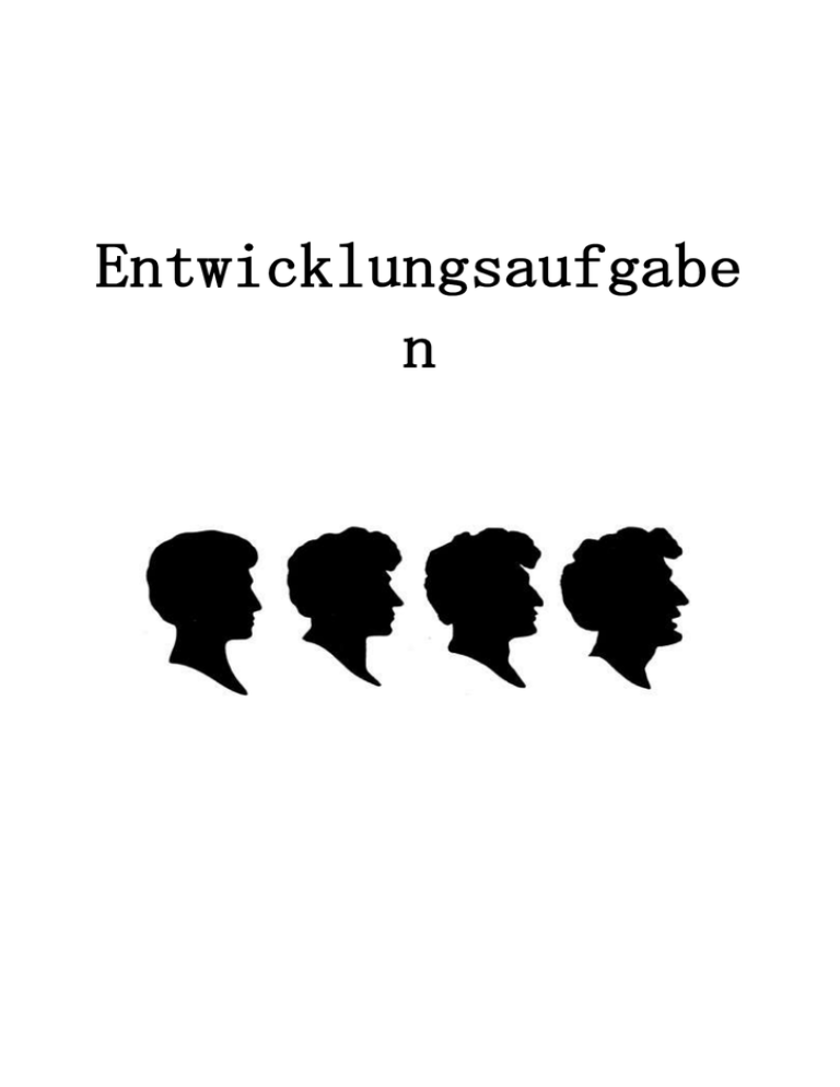 Entwicklungsaufgabe n Luther-Melanchthon-Gymnasium Wittenberg, April 2010 Jahrgangsstufe 11 Schuljahr 2009/2010 Psychologie 1 Frau Wiederhold Facharbeit Psychologie Entwicklungsaufgaben und ihre Bewältigung vom Kindesalter bis zum späten Erwachsenenalter Entwicklungsaufgaben im Alter von : 10-12 Jahren: Jone Rehfeld, Philipp Mücke, Lucas Bischoff, Marvin Brabender 13-17 Jahren: Antonia Federsel, Julia Hedenus, Victoria Klabes, Dominique Langner, Jane von Bartnitzke 18-22 Jahren: Anika Wagner, Lisa Birke, Lisa Kühl, Tina Hübsch, Annemarie Troschack 30-50 Jahren: Scarlet Schütze, Annemarie Jäger, David Böhme, Martin Pohl Ab 51 Jahren: Belinda Bäßler, Caroline Hoffmann, Manuela Knape, Jan Mader, Benny Ussat 2 Gesamtauswertung: Jennifer Naffin, Max Kiefner, Anh Tuan Phan Inhaltsverzeichnis 1. Einleitung.................................................................................................................. 4 2. Hypothesen der gesamten Stichproben..................................................................... 5 3. Operationalisierung der Begriffe.............................................................................. 5 3.1 Entwicklung........................................................................................................ 5 3.2 Entwicklungsaufgaben........................................................................................ 5 3.3 Coping.................................................................................................................. 5 4. Planung der Methodik................................................................................................ 6 5. Interpretation der einzelnen Stichproben ................................................................... 6 (differenzierte Hypothesen,Auswertung und Darstellung, Fragebögen) Entwicklungsaufgaben im Alter von : 5.1 10 – 12 Jahren......................................................................................................... 6 5.2 13 – 17 Jahren......................................................................................................... 12 5.3 18 – 22 Jahren......................................................................................................... 19 5.4 30 – 50 Jahren........................................................................................................ 23 5.5 ab 51 Jahren........................................................................................................... 31 6. Fazit............................................................................................................................ 34 7. Fehlerbetrachtung...................................................................................................... 35 8. Quellenverzeichnis.................................................................................................... 35 3 1. Einleitung Der Psychologe Robert James Havighurt, der sich mit Entwicklungsaufgaben und Erziehung beschäftigte, hat eine Betrachtungsweise des menschlichen Entwicklungsgeschehen vorgeschlagen, die man als Theorie der Entwicklungsaufgaben bezeichnet. Demnach verändert sich der Mensch dadurch, dass er während des Lebens in verschiedenen Altersphasen vor unterschiedlichen Aufgaben gestellt wird. Zur Bewältigung dieser Entwicklung muss er sich die erforderlichen Fähigkeiten, Einstellungen und Eigenschaften aneignen. Entwicklungsausgaben gelten demnach in dieser Theorie als Triebfeder des Entwicklungsgeschehens. Dieses Modell ist besonders geeignet, Entwicklung als einen lebenslangen Prozess zu verstehen, der mit dem Erwachsenenalter noch nicht abgeschlossen ist, so wie es die älteren Theorien unterstellen. Ein Einjähriger hat die Aufgabe, Sprechen und Laufen zu lernen; ein Dreijähriger muss sich zeitweise von seiner Mutter trennen können und sollte nicht mehr in die Hosen machen. Ein Sechsjähriger muss lernen, sich in eine Klassengesellschaft einzufügen, sich auf eine Aufgabe zu konzentrieren, Anweisungen eines Lehrers auszuführen usw. Zwanzigjährige müssen sich im Studium oder im Beruf durchsetzen sowie eine(n) Partner(in) finden, mit dem (der) sie auskommen. Fünfzigjährige müssen das Altwerden und den eventuellen Tod ihrer Eltern akzeptieren. Ein Sechzigjähriger muss lernen, sich mit dem Nachlassen seiner Kräfte und dem näher rückenden Ruhestand abzufinden. Havighurst hat sich bemüht, die verschiedenen Lebensabschnitte durch charakteristische Entwicklungsaufgaben zu kennzeichnen, indem er trennscharfe Probleme identifiziert, die typisch für einen bestimmten Abschnitt sind und in den benachbarten Abschnitten relativ selten auftreten. 4 2. Hypothesen allgemein 1. Jede Entwicklungsstufe hat ihre eigenen Entwicklungaufgaben. 2. Jede Entwicklungsstufe löst die Entwicklungsaufgaben auf unterschiedliche Art und Weise. 3. Operationalisierung der Begriffe 3.1 Entwicklung Entwicklung ist eine gerichtete, zeitlich geordnete Reihe von miteinander zusammenhängenden Veränderungen des Erlebens und Verhaltens eines Organismus. 3.2 Entwicklungsaufgabe Unter einer Entwicklungsaufgabe versteht man eine Anforderung, die in einem bestimmten Lebensabschnitt eines Menschen entsteht und deren erfolgreiche Bewältigung zu Glück und Erfolg bei späteren Anforderungen führt, während ein Versagen die Missbilligung durch die Gesellschaft und Schwierigkeiten bei späteren Anforderungen nach sich ziehen kann. 3. 3 Coping Coping bezeichnet die Auseinandersetzung mit belastenden Ereignissen oder Erlebnissen sowie deren Bewältigung. Es dient in der Hauptsache zwei Zielen. Einmal geht es darum, Person-UmweltBezüge, die Stress erzeugen, zu beherrschen oder zu ändern. Das ist ein problemorientiertes Bewältigen. Zum anderen sind stressgeladene Emotionen unter Kontrolle zu bringen. Dies ist ein emotionsorientiertes Bewältigen. 5 4. Planung der Methodik Wissenschaftliche Methoden sind systematisch geplante Vorgehensweisen oder Verfahren, um Wissen übe