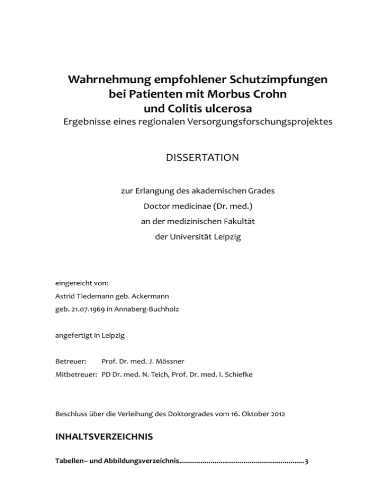 1.4.7 Impfempfehlungen für erwachsene CED–Patienten ................ 25