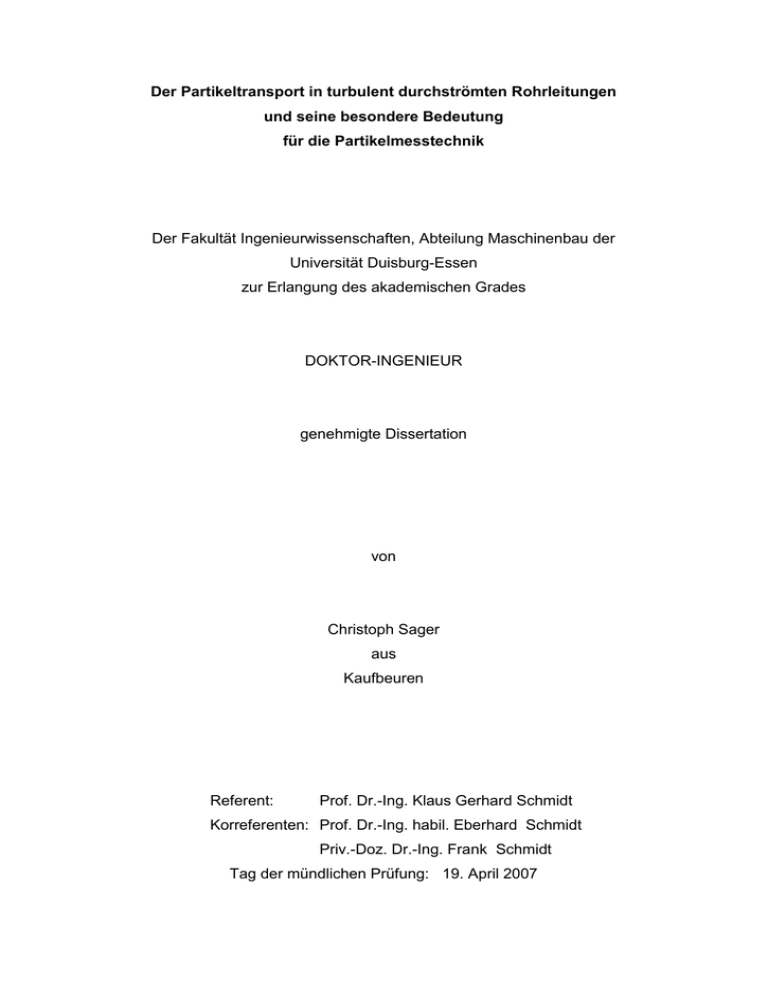 Schmidt, F.; Sager, C. (2000a): Deposition of Particles in Turbulent Pipe Flows. J.