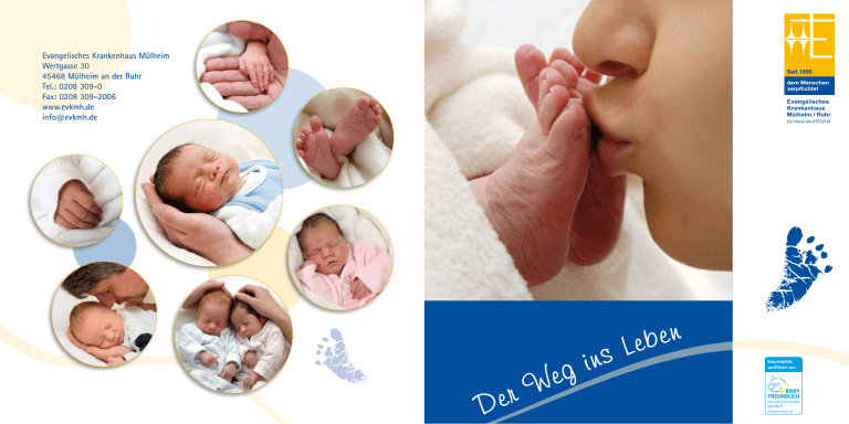 Evangelisches Krankenhaus Mülheim Wertgasse 30 45468 Mülheim an der Ruhr Tel.: 0208 309-0 Fax: 0208 309-2006 www.evkmh.de [email protected] Liebe Schwangere, liebe Paare in freudiger Erwartung, eine Geburt ist nicht nur ein bedeutendes, sondern auch ein sehr persönliches Erlebnis. Für Sie und Ihre Familie beginnt ein neuer Lebensabschnitt, den Sie mit Aufregung und Vorfreude, bestimmt aber auch mit einiger Unsicherheit erwarten. Was kommt da auf mich/uns zu? Wie verläuft die Geburt, wann kommen wir nach Hause – und wie wird das Leben mit dem neuen Familienmitglied aussehen? Die Geburt ist die natürlichste Sache der Welt, bei der sich die Frau in aller Regel ganz auf sich und ihren Körper verlassen kann. Die gebärende Frau als Mittelpunkt – das ist unser Motto. Und dabei stehen wir Ihnen zur Seite. Das Team der Frauenklinik Mülheim bietet Ihnen die größtmögliche Sicherheit – vor, während und nach der Geburt. Und das mit allen medizinisch-technischen Möglichkeiten und allen menschlichen Ressourcen, die uns zur Verfügung stehen! Ob geburtsvorbereitende Akupunktur, Entbindung auf dem Gebärhocker oder in der Badewanne, ob homöopathische Mittel zur Schmerzlinderung oder eine PeriduralAnästhesie, ob Familienzimmer auf der Station oder ambulante Entbindung – Sie können entscheiden. In dieser Broschüre finden Sie in erster Linie Antworten auf Ihre Fragen. Auch eine Checkliste zur guten Vorbereitung auf den Klinikaufenthalt gehört zu unserem Service. Zudem lernen Sie unser Team kennen, finden eine Telefonliste unserer Hebammen und werden über unsere Angebote für die Schwangerschaft, während des Klinikaufenthaltes und für die Zeit danach informiert. Denn wir wollen Sie und Ihre junge Familie rundum begleiten auf dem „Weg ins Leben“! Wir freuen uns auf Sie – Ihr Team der Mülheimer Frauenklinik! Wie kann ich die Frauenklinik und das Team vor der Geburt kennenlernen? Kommen Sie einfach vorbei und bringen Sie Ihren Partner, eine Freundin oder auch die ganze Familie mit. Wir bieten jeden ersten und dritten Donnerstag im Monat um 20 Uhr einen Informationsabend rund um die Geburt an, an dem wir Ihnen auch unseren Kreißsaal und die Wöchnerinnenstation mit Säuglingszimmer zeigen. Treffpunkt ist der Konferenzraum in der 10. Etage. Eine Anmeldung ist nicht erforderlich. Bevor es losgeht, möchte ich mich noch einmal persönlich beraten lassen. Geht das? Wir beraten Sie gerne. Schließlich möchten wir Sie auch kennenlernen. Sie können uns in unserer wöchentlichen Hebammensprechstunde montags, in der Zeit von 14:30 bis 17:00 Uhr aufsuchen. Hier beantworten wir Ihre Fragen rund um Schwangerschaft und Geburt. Gerne können Sie sich in der Sprechstunde auch zur Geburt anmelden. Wenn es dann losgeht, haben wir die Bürokratie schon mal erledigt! Für die Anmeldung bringen Sie bitte Ihren Mutterpass sowie die Krankenversicherungskarte mit. Anmeldung unter Tel: 0208 309-2511. Darüber hinaus sind die Hebammen und der Stationsarzt rund um die Uhr unter Tel: 0208 309-2511 oder -2512 für Sie erreichbar. In Abstimmung mit Ihrem Frauenarzt kann auch jederzeit eine Vorstellung bei uns erfolgen. Dafür benötigen Sie eine Überweisung von Ihrem Frauenarzt. Den Termin für das Geburtsplanungs-Gespräch vereinbaren wir mit Ihnen über die Gynäkologische Ambulanz (Tel.: 0208 309-2505 oder -2506). Das Geburtsplanungs-Gespräch ist zum Beispiel bei Voroperationen oder besonderen Risiken wie Bluthochdruck sinnvoll. Wir führen dann eine Ultraschall-Untersuchung durch, überprüfen die Herztöne des Babys sowie eine etwaige Wehentätigkeit (CTG) und besprechen das weitere Vorgehen mit Ihnen. Wie bereite ich mich auf die Geburt vor? Unsere qualifizierten Hebammen und unser Fachpersonal bieten Ihnen die bestmögliche Versorgung und Vorbereitung für Ihren neuen Lebensabschnitt. Wir laden Sie herzlich ein, die Angebote unserer Elternschule zu besuchen. •Geburtsvorbereitungskurse Hier bereiten unsere Hebammen Sie einfühlsam und kompetent auf das freudige Ereignis und Ihre neue Familiensituation vor. Außerdem können Sie Erfahrungen zu den verschiedensten Themen rund um die Geburt mit anderen werdenden Eltern austauschen. Wir bieten Ihnen Geburtsvorbereitung für Paare, Wochend-Intensivkurse für Paare sowie Geburtsvorbereitung für Frauen, die alleinstehend sind oder einfach ohne den Partner einen Kurs besuchen möchten. •Schwangerschaftsgymnastik Leichte gymnastische Übungen kräftigen die Muskulatur des Beckens sowie des Beckenbodens. Zusätzlich vermitteln wir Ihnen in unserem Kurs Atemübungen, die eine bessere Verarbeitung der Wehen ermöglichen. •Schwimmen für Schwangere Mit Atemübungen und gezielter Gymnastik im warmen Wasser bereiten unsere Hebammen Sie auf die Geburt vor und sorgen so für Ihr Wohlbefinden. Denn die Bewegung im Wasser wirkt entspannend und regt den Stoffwechsel an. •Akupunktursprechstunde Mit Beginn der 36. Schwangerschaftswoche bieten wir geburtsvorbereitende Akupunktur an. Diese unterstützt die Reifungsvorgänge am Muttermund und kann somit zur Verkürzung der Geburt (Eröffnungsperiode) dienen. Außerdem hilft die Akupunktur bei Schwangerschaftserbrechen, Sodbrennen, Rückenschmerzen und anderen Beschwerden. •Informationsabend Stillen/Ernährung Sie erfahren, wie Sie Ihr Baby optimal ernähren, wie Sie sich gut auf das Stillen vorbereiten können. •Informationsabend Säuglingspflege Hier dreht sich alles um die Säuglingspflege und ihr Leben mit dem Neugeborenen: was sollten Sie zuhause haben, wie wird Ihr Baby gebadet – wir freuen uns darauf, Ihre Fragen zu beantworten. Auch werdende Großeltern sind herzlich zu diesem Informationsabend eingeladen! Darf ich eigentlich auch persönliche Dinge mit ins Krankenhaus bringen? Natürlich, persönliche Dinge sind erlaubt und sogar wichtig. Schließlich sollen Sie sich während Ihres Aufenthaltes bei uns so wohl wie möglich fühlen. Folgendes dürfen Sie gerne mitbringen: h: Das brauchen Sie für