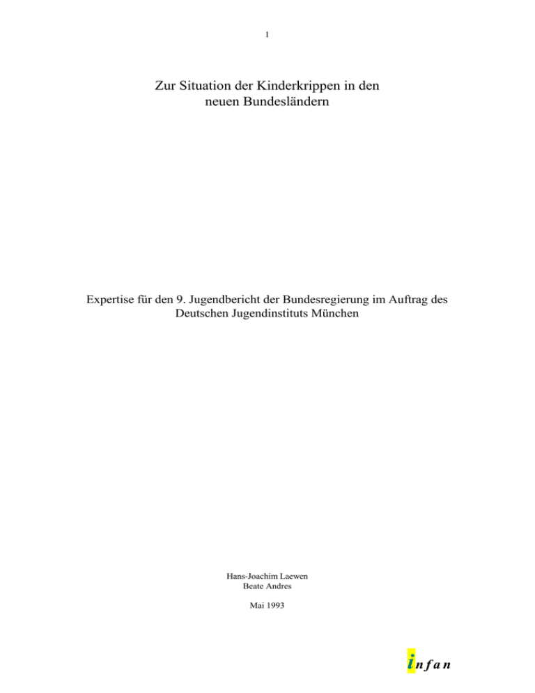 1 Zur Situation der Kinderkrippen in den neuen Bundesländern Expertise für den 9. Jugendbericht der Bundesregierung im Auftrag des Deutschen Jugendinstituts München Hans-Joachim Laewen Beate Andres Mai 1993 in f a n s 2 Inhaltsverzeichnis Zusammenfassung Vorbemerkung 1. Zur Situation der Krippen in der DDR 1.1 Quantitativer Ausbau 1.2 Gründe und Ziele des Ausbaus 1.3 Die Krippen als 1. Stufe des Bildungssystems der DDR 1.4 Die Krippen als Einrichtungen der staatlichen Gesundheitsfürsorge 1.5 Die Qualifizierung des pädagogischen Personals der Krippen 1.6 Die Weiterbildung des Fachpersonals 1.7 Die räumliche Situation 1.8 Die Gruppengrößen 2. Die Krippenpädagogik der DDR 2.1 Kontrollanspruch und Führungsphilosophie 2.2 Elemente einer modernen Krippenpädagogik 2.2.1 Die Beschäftigungen 2.3 Schritte in die richtige Richtung in und außerhalb der staatlichen Programmatik 2.4 Programm und Praxis 3. Die Zeit nach der Wende 4. Zur gegenwärtigen Lage der Kinderkrippen in den neuen Bundesländern 4.1 Ein Mangel an Alternativen im Krippenbereich 4.2 Wandel durch Fortbildung? 4.3 Der Abbau von Krippenplätzen 4.4 Die Folgen des Platzrückgangs 5. Die Krippen der neuen Bundesländer im Spannungsfeld eines Ost-West-Gegensatzes Literatur 3 5 5 5 6 7 8 8 9 9 10 10 11 13 15 16 17 17 20 20 21 23 25 26 28 in f a n s 3 Zusammenfassung Die Vereinigung der beiden deutschen Teilstaaten hat zwei sehr unterschiedliche Systeme der Frühsozialisation zusammengeführt. Während sich in den Ländern der alten Bundesrepublik Kernfamilie und Großeltern die Betreuungsaufgabe für Kinder unter 3 Jahren im wesentlichen teilen, standen 1989 in der DDR für 55.6% der Altersgruppe Krippenplätze zur Verfügung, berücksichtigt man das von fast allen Müttern in Anspruch genommene Babyjahr, für mehr als 80% der ein- und zweijährigen Kinder. Nur knapp 2% der unter dreijährigen Kinder können demgegenüber in der alten Bundesrepublik in einer Krippe betreut werden. Rechnet man die Plätze in staatlich kontrollierten und nicht-kontrollierten Tagespflegestellen hinzu, kommt man auf einen Versorgungsgrad von maximal 6% der Altersgruppe. In den neuen Bundesländern hat seit der Wende in zunächst begrenztem, seit 1992 beschleunigtem Maß ein Abbau von Krippenplätzen begonnen, der voraussichtlich auch in den nächsten beiden Jahren nicht zum Stillstand kommen wird. Es muß damit gerechnet werden, daß Ende 1995 je nach Bundesland nur noch zwischen 28 und 47 Prozent der 1989 vorhandenen Plätze existieren (Ost-Berlin: 58%). Im Vergleich mit der alten Bundesrepublik ist dies immer noch ein sehr hohes Niveau. Der Rückgang an Plätzen ist dabei weniger mit einer fehlenden Bereitschaft der Eltern verbunden, ihre Kinder für einige Stunden des Tages einer Krippe anzuvertrauen, sondern mit einem dramatischen Rückgang in den Geburtenzahlen. Dieser Effekt wird vermutlich noch verstärkt durch anhaltende Wanderbewegungen junger Paare in die alten Bundesländer. Der Abbau von Krippenplätzen erfolgt auf einem gleichbleibend hohen Niveau des Anteils der in Krippen betreuten Kinder von knapp 50% (DDR: 56,4%). Von der Möglichkeit, Tagespflegestellen aufzubauen bzw. zu besuchen wird in allen neuen Bundesländern nur in sehr geringem Umfang Gebrauch gemacht. Der Platzabbau ist begleitet von einem erheblichen Personalabbau, der seit knapp 2 Jahren in zunehmenden Maß Unruhe in die Einrichtungen trägt und (zum Schaden der Kinder) zu einer erheblichen Instabilität der Betreuungsverhältnisse führt. Die personelle Ausstattung der Krippen ist vergleichbar mit den Standards aus den alten Bundesländern, zum Teil deutlich besser (Sachsen-Anhalt: über den ganzen Tag 1:5 Kinder; im Vergleich West-Berlin: altersabhängig 1,5 zu 8 bzw 10 Kinder bei 11-stündiger Öffnungszeit). In den Krippen der neuen Bundesländer dürfte in großem Umfang nach den Leitlinien des "Programms für die Erziehungsarbeit in Kinderkrippen" gearbeitet werden, das seit 1987 für alle DDR-Krippen verbindliche Grundlage der pädagogischen Arbeit war. Eine der wesentlichen Ursachen dafür dürfte sein, daß entsprechende westliche Alternativen nicht vorliegen und wenn sie vorlägen mit dem verfügbaren Fortbildungsangebot nicht vermittelt werden könnten. Darüber hinaus herrscht in den alten Bundesländern ein eklatanter Mangel an Fachkräften für Krippenpädagogik - eine Folge der Entscheidung gegen die Einrichtung von Krippen in der alten Bundesrepublik. Das im Westen kaum zur Kenntnis genommene "Programm" enthält dabei neben einem deutlichen Führungs- und Kontrollanspruch der Staatspartei der DDR Elemente einer modernen Frühpädagogik und vermittelt relevante Informationen über die frühen Lern- und Entwicklungsprozesse von Kindern. Es würde sich u. E. lohnen, eine Überarbeitung in Erwägung zu ziehen, die dann Impulse für eine Kleinkindpädagogik auch in den alten Bundesländern geben könnte. Aber auch die Arbeit nach dem vorliegenden "Programm", eine Flexibilisierung des Umgangs mit seinen Regeln und eine Entrümpelung von unsinnigen Forderungen vorausgesetzt, nützt den Kindern u. E. eher als daß sie ihre Entwicklung mit in f a n s 4 Risiken belasten würde. Es wäre dringend zu wünschen, daß die angespannte Lage der öffentlichen Haushalte nicht zu einer so weitgehenden Verringerung des Platzangebots im Krippenbereich der neuen Bundesländer führt, daß nach einem Ansteigen der Geburtenzahlen ein Mangel an Betreuungsplätzen vorhersehbar wird. in f a n s 5 Vorbemerkung Die heute in den 5 neuen Bundesländern und Ost-Berlin noch existierenden Krippen sind Einrichtungen aus der Zeit der DDR, die diesen Bereich der öffentlichen Tagesbetreuung von Kindern unter 3 Jahren in einem weltweit einmaligen Umfang ausgebaut hatte. Wir gehen davon aus, daß ihre heutige Situation ohne Berücksichtigung ihrer Lage zumindest in den letzten Jahren der Existenz der DDR nicht angemessen zu beurteilen ist. Dies betrifft insbesondere den Stellenwert der Kri