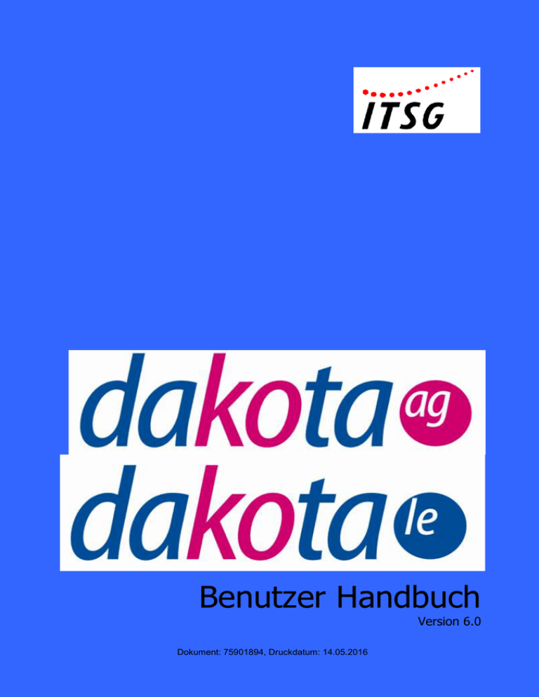 Benutzer Handbuch Version 6.0 Dokument: 75901894, Druckdatum: 14.05.2016 Copyright Die in diesem Handbuch enthaltenen Angaben und Daten können ohne vorherige Ankündigung geändert werden. Die Informationen in diesem Handbuch dürfen ohne ausdrückliche Genehmigung der ITSG GmbH weder ganz noch teilweise für irgendwelche Zwecke vervielfältigt oder übertragen werden, unabhängig davon, ob die Vervielfältigung oder Übertragung auf elektronischem, photooptischem oder mechanischem Wege geschieht. © ITSG GmbH 2013 Microsoft, MS, Windows XP, Windows Vista, Windows 7, Windows 8, MS Office sind eingetragene Marken der Microsoft Corporation. Andere aufgeführte Produkte oder Firmennamen sind möglicherweise Marken oder eingetragene Warenzeichen ihrer jeweiligen Besitzer. ITSG GmbH Seligenstädter Grund 11 63150 Heusenstamm dakota 2 Inhaltsverzeichnis 1 Einleitung .......................................................................................................................... 5 1.1 dakota ........................................................................................................................ 5 1.2 Das Sicherheitsverfahren im Gesundheitswesen ....................................................... 6 2 Inbetriebnahme ................................................................................................................. 7 2.1 Kurzbeschreibung ...................................................................................................... 7 2.2 Installation .................................................................................................................. 9 2.3 Inbetriebnahme mit dem dakota-Assistenten ............................................................ 13 2.3.1 Programmstart ..................................................................................................... 13 2.3.2 Konfiguration der Versandart................................................................................ 13 2.3.2.1 Versandart Kommunikationsserver ............................................................... 14 2.3.2.2 Versandart Verzeichnisausgabe ................................................................... 18 2.3.3 Konfiguration des Schlüssels (Zertifizierungsantrag) ............................................ 19 2.3.3.1 Erfassen des verantwortlichen Ansprechpartners ......................................... 19 2.3.3.2 Erfassen des Schlüssel-Passwortes ............................................................. 20 2.3.3.3 Zusammenfassung der Angaben .................................................................. 21 2.3.3.4 Fertigstellen und Aussendung des Schlüssels an das Trust Center .............. 21 2.3.3.5 Einlesen des Schlüssels vom Trust Center ................................................... 24 3 Verarbeitung.................................................................................................................... 29 3.1 Kurzbeschreibung .................................................................................................... 29 3.2 Programmstart ......................................................................................................... 30 3.3 Daten verarbeiten mit Direktaufruf von dakota.......................................................... 31 3.3.1 Daten verarbeiten................................................................................................. 31 3.3.2 Versenden mit HTTP/HTTPS ............................................................................... 32 3.3.3 Versenden mit Verzeichnis-Ausgabe.................................................................... 32 3.4 Verschlüsseln und Versenden integriert in die Fachanwendung ............................... 33 4 Protokollierung ................................................................................................................ 34 4.1 Kurzbeschreibung .................................................................................................... 34 4.2 Langprotokoll............................................................................................................ 35 4.3 Kurzprotokoll ............................................................................................................ 36 4.3.1 Detailansicht ........................................................................................................ 36 5 dakota-Aktualisierung ...................................................................................................... 38 5.1 Kurzbeschreibung .................................................................................................... 38 5.2 Neuer Schlüssel ....................................................................................................... 39 6 Konfiguration ................................................................................................................... 40 6.1 Allgemeine Einstellungen ......................................................................................... 41 6.2 Einstellungen für die Verschlüsselung ...................................................................... 42 6.3 Einstellungen für die Entschlüsselung ...................................................................... 43 6.4 Einstellungen für das Stammdatenupdate ................................................................ 44 6.5 Einstellungen für den Kommunikationsserver ........................................................... 45 6.6 Einstellungen für die Schlüsselsicherung ................................................................. 46 6.7 Zertifikatsverwaltung ................................................................................................ 47 6.8 Sicherung erstellen .................................................................................................. 49 6.9 Sicherung importieren .............................................................................................. 