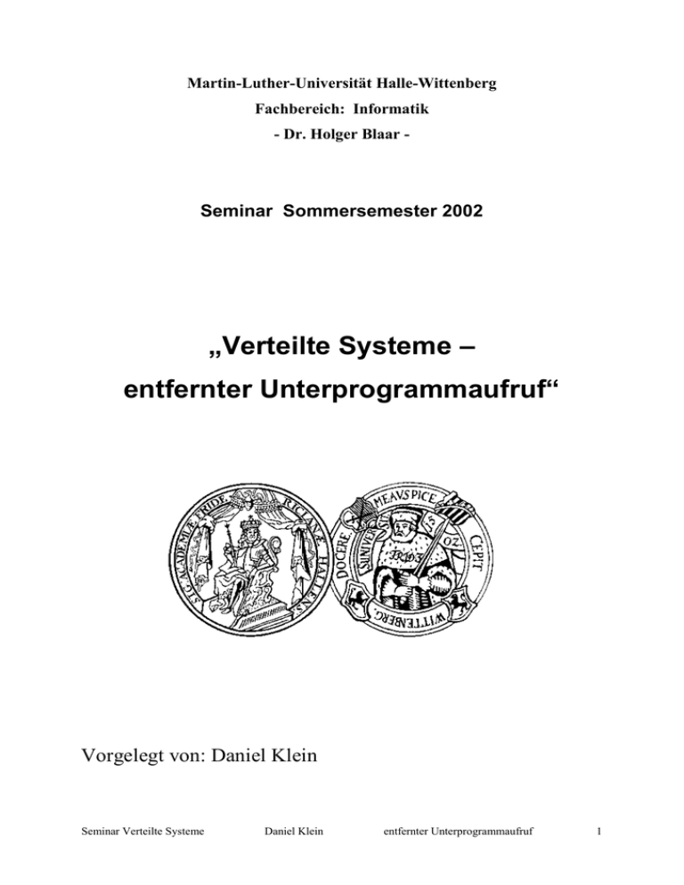 werden soll. In einem RPC gibt es im Gegensatz zu einem Einprozessorsystem keine