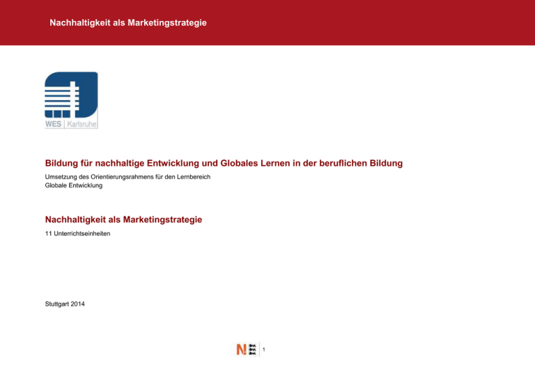 Nachhaltigkeit als Marketingstrategie Bildung für nachhaltige Entwicklung und Globales Lernen in der beruflichen Bildung Umsetzung des Orientierungsrahmens für den Lernbereich Globale Entwicklung Nachhaltigkeit als Marketingstrategie 11 Unterrichtseinheiten Stuttgart 2014 1 Nachhaltigkeit als Marketingstrategie Impressum Herausgeber: Haftung für Inhalte Die Inhalte dieser Publikation wurden mit größter Sorgfalt erstellt. Es wird jedoch keine Gewähr - weder ausdrücklich noch stillschweigend - für die Vollständigkeit, Richtigkeit, Aktualität oder Qualität der bereit gestellten Informationen übernommen. Ministerium für Kultus, Jugend und Sport Baden-Württemberg Thouretstr. 6 70173 Stuttgart Telefon: 0711 279-0 Internet: www.km-bw.de E-Mail: [email protected] Verantwortlich für die Herausgabe: Ingo Noack, Referat Berufskollegs [email protected] Autoren: Sebastian Blümle, Dominik Heller Walter-Eucken-Schule Karlsruhe Gestaltung: ÖkoMedia GmbH, Stuttgart www.oekomedia.com Stand: Haftung für Links Diese Unterlage enthält Links oder Verweise auf Internetauftritte Dritter. Diese Links zu den Internetauftritten Dritter stellen keine Zustimmung zu deren Inhalten durch den Herausgeber dar. Es wird keine Verantwortung für die Verfügbarkeit oder den Inhalt solcher Internetauftritte übernommen und keine Haftung für Schäden oder Verletzungen, die aus der Nutzung - gleich welcher Art - solcher Inhalte entstehen. Mit den Links zu anderen Internetauftritten wird den Nutzern lediglich der Zugang zur Nutzung der Inhalte vermittelt. Für illegale, fehlerhafte oder unvollständige Inhalte und für Schäden, die aus der Nutzung entstehen, haftet allein der Herausgeber der Seite, auf welche verwiesen wurde. Urheberrecht Die durch die Autoren erstellten Inhalte unterliegen dem deutschen Urheberrecht. Soweit die Inhalte in dieser Publikation nicht von den Autoren erstellt wurden, werden die Urheberrechte Dritter beachtet. Insbesondere werden Inhalte Dritter als solche gekennzeichnet. Sollten Sie trotzdem auf eine Urheberrechtsverletzung aufmerksam werden, bitten wir um einen entsprechenden Hinweis. Bei Bekanntwerden von Rechtsverletzungen werden wir derartige Inhalte umgehend entfernen. Oktober 2014 Verwendung des Unterrichtsmaterials Das vorliegende Unterrichtsmaterial ist nur für schulische Zwecke bestimmt und kann im Rahmen des Unterrichts bearbeitet und Schülerinnen und Schülern zugänglich gemacht werden. Eine Bearbeitung und Vervielfältigung für nichtschulische Zwecke ist nicht gestattet. Gefördert von Engagement Global gGmbH aus Mitteln des BMZ. 2 Nachhaltigkeit als Marketingstrategie Inhaltsverzeichnis Grundlagen 4 1. Vorbemerkungen zum Unterrichtsmodell 5 1.1 Intention des Unterrichtsmodells 5 1.2 Struktur des Unterrichtsmodells 5 1.3 Beschreibung des Unterrichtsmodells 6 2. Aufbau des Unterrichtsmodells 7 2.1 Bildungsgang 7 2.2 Lehrplanbezug 7 3. Kompetenzerwerb 8 4. Unterrichtliche Umsetzung 12 Unterrichtsmaterialien 20 Weitere Informationen, Links und Quellen 49 Lehrerbegleitmaterial 50 Grundlegende methodische Hinweise 50 Überprüfung des Kompetenzzuwachses 51 Quellen und Bildnachweise 51 3 Grundlagen 5 Nachhaltigkeit als Marketingstrategie 1. Vorbemerkungen zum Unterrichtsmodell 1.2 Struktur des Unterrichtsmodells Das Unterrichtsmodell besteht aus elf Unterrichtseinheiten à 45 Minuten, die in den Fächern Gemeinschaftskunde, Betriebswirtschaft und Deutsch durchgeführt werden. Je zwei Unterrichtseinheiten in Betriebswirtschaft sind als Doppelstunden konzipiert. Das Modell der vollständigen Handlung wird für jede Einzelstunde (in GK, D und BW) bzw. Doppelstunde (in BW) und nicht über die gesamte Unterrichtssequenz angestrebt. 1.1 Intention des Unterrichtsmodells Das Unterrichtsmodell „Nachhaltigkeit als Marketingstrategie“ wurde für Klassen des kaufmännischen Berufskollegs I entwickelt. Das Berufskolleg I baut auf der Fachschulreife oder einem gleichwertigen mittleren Bildungsabschluss auf. Durch die Ausbildung am kaufmännischen Berufskolleg I sollen kaufmännische Kenntnisse vermittelt und die Allgemeinbildung vertieft werden. Die Schülerinnen und Schüler am kaufmännischen Berufskolleg I sind im Durchschnitt 16 bis 17 Jahre alt. Nach erfolgreichem Abschluss des Berufskollegs I und Erfüllen der Aufnahmevoraussetzungen für das Berufskolleg II können die Schülerinnen und Schüler die Fachhochschulreife erwerben. Die Unterrichtsinhalte des Unterrichtsmodells entstammen den Lehrplänen der Fächer Geschichte mit Gemeinschaftskunde (GGK), Betriebswirtschaft (BW) sowie Deutsch/Betriebliche Kommunikation (D) für das kaufmännische Berufskolleg I. Anschlüsse an die Fächer Religion und Ethik sind inhaltlich leicht umsetzbar und sicher sinnvoll. Unterrichtsphasen Ziel ist es, vor dem Hintergrund der aktuellen Gegebenheiten der globalisierten Arbeitsteilung und der Arbeiterausbeutung in Schwellen- und Entwicklungsländern, zu zeigen, dass Fair Trade eine Alternative sein kann, die sowohl den einzelnen Verbraucher zum Wandel ermächtigt als auch von Handelsunternehmen positiv genutzt werden kann. Da am anderen Ende der Verwertungskette die Bedingungen der Arbeiter/Kleinproduzenten ebenfalls positiv beeinflusst werden, könnte es hierdurch zu einer Win-win-Situation kommen. Beispiel Stunde 2 (GGK) Einstieg/Handlungsziel (Zielbestimmung) Aufgaben-/ Problemanalyse (Information) Impulsfrage „Haben Sie schon einmal jemanden richtig ausgebeutet?“ Reportage zu Arbeitsbedingungen in einer thailändischen Textilfabrik, dazu eine Grafik zu den unterschiedlichen Kostenbestandteilen eines Turnschuhes auf einem Arbeitsblatt. Planung/ Problemlösung Ausführung (Präsentation) Schülerinnen und Schüler formulieren Möglichkeiten der Einflussnahme auf Schuhproduzenten. Keine Präsentation, sondern Besprechung im Plenum. Fragend-entwickelnder Unterricht (FEU) zur marktwirtschaftlichen Logik der Güterproduktion. Auswertung Die aus der Produktionslogik resultierende Notwen(
