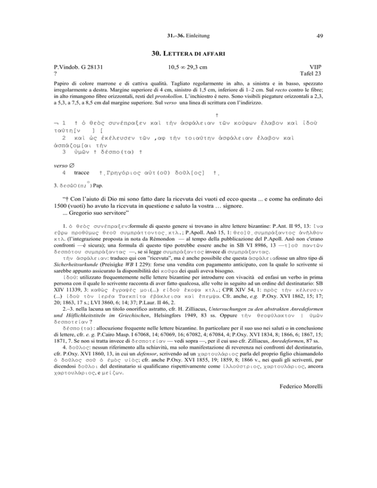 30. Lettera di affari