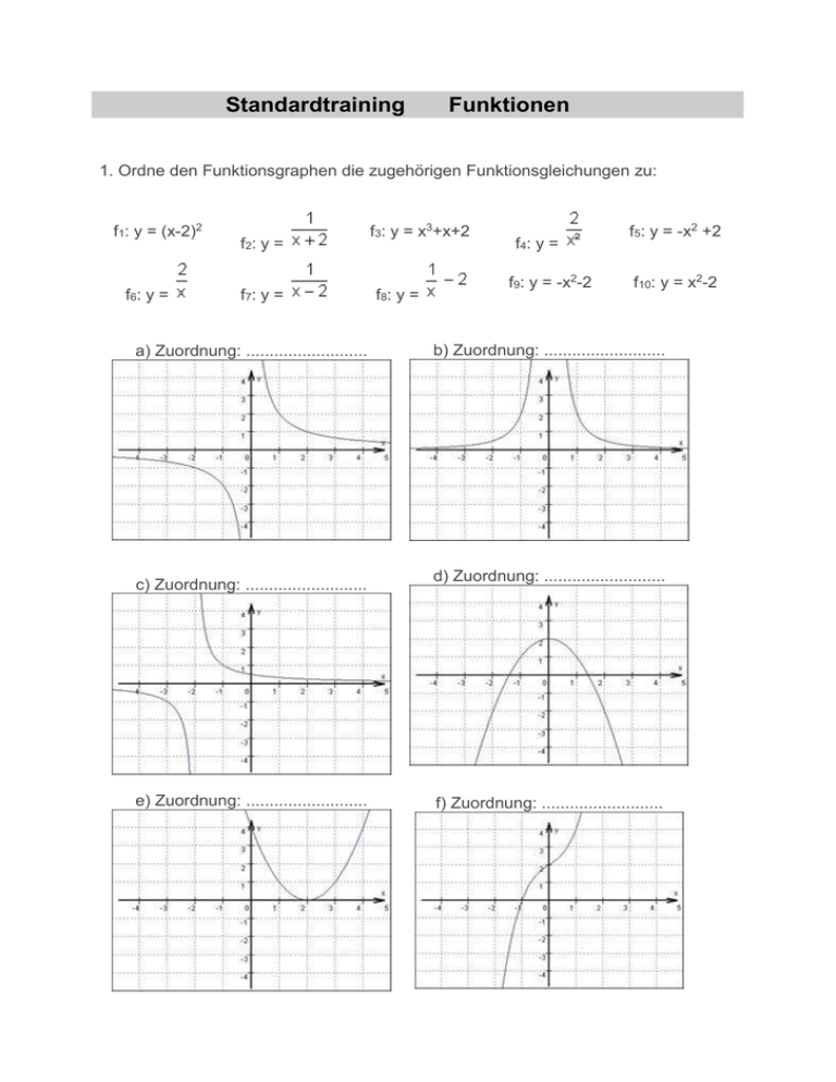 1. Ordne den Funktionsgraphen die zugehörigen Funktionsgleichungen zu: