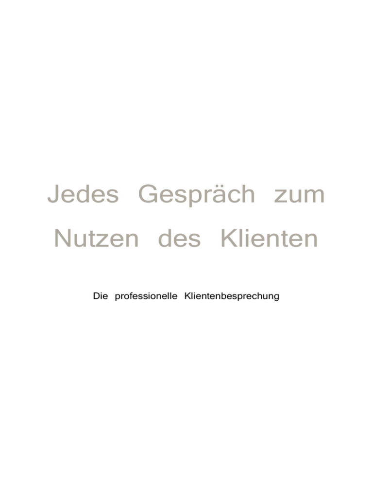 Jedes Gespräch zum Nutzen des Klienten Die professionelle Klientenbesprechung Inhaltsverzeichnis 1 EINLEITUNG 1 2 DIE 6 GRUNDREGELN FÜR KLIENTENBESPRECHUNGEN 2 KLARE UND EINDEUTIGE ZIELE FÜR DIE BESPRECHUNG FIXIEREN PROFESSIONELLE VORBEREITUNG UND EINE TAGESORDNUNG INFOS VORWEG SCHICKEN BESPRECHUNGSPROTOKOLL FÜR DEN KLIENTEN FOLLOW-UP DER BESPRECHUNG WIR HALTEN UNS AN STANDARDS 2 4 6 7 9 9 3 KLIENTENORIENTIERTE KOMMUNIKATION 10 4 ZUFRIEDENHEIT SICHERSTELLEN 15 WIR WOLLEN WISSEN, WAS FÜR UNSERE KLIENTEN WERTVOLL IST FEEDBACK IST IMMER EIN GESCHENK! SYSTEMATISCHES FEEDBACK 5 BESONDERHEITEN FÜR DIE BILANZBESPRECHUNG DIE 7 GRUNDRECHTE DES KLIENTEN BEI DER BILANZBESPRECHUNG STANDARD FÜR BILANZBESPRECHUNGEN THEMENFELDER FÜR BILANZBESPRECHUNGEN 6 15 16 16 19 19 21 23 CHECKLISTEN, FRAGEBÖGEN UND MUSTERVORLAGEN 26 CHECKLISTE „GESPRÄCHSVORBEREITUNG“ EINLADUNGS-E-MAIL ZUR BILANZBESPRECHUNG BESPRECHUNGSPROTOKOLL MAßNAHMENPLAN CHECKLISTE „VORBEREITUNG BILANZBESPRECHUNG“ CHECKLISTE „STANDARD BILANZBESPRECHUNG“ AUSFORMULIERTER STANDARD FÜR BILANZBESPRECHUNGEN FEEDBACK-FORMULAR 26 31 33 35 37 40 43 54 1 Einleitung Klientenbesprechungen sind für Steuerberater und deren Mitarbeiter Routinesache. Ihre Bedeutung wird meist enorm unterschätzt. Denn jede Klientenbesprechung bietet die Chance den Wert der erbrachten Leistungen darzustellen, sich als Steuerberater verständlich zu machen, die Beziehung zum Klienten zu verbessern, den Klienten bei der Unternehmensentwicklung zu unterstützen, weitere Beratungsaufträge zu erhalten, die Klientenbindung zu erhöhen und neue Klienten durch Weiterempfehlungen zu gewinnen. Steuerberater werden vor allem an der Qualität der Besprechungen gemessen. Jede Besprechung ist ein so genannter „Moment der Wahrheit“, bei dem es darauf ankommt exzellent zu sein. Die große Kunst bei Klientenbesprechungen ist es, die Ziele der Beratung nicht aus den Augen zu verlieren und sich immer seiner Rolle als Berater des Klienten bewusst zu sein. 1 2 Die 6 Grundregeln für Klientenbesprechungen Von einer Besprechung in die nächste – das ist für viele Inhaber, Partner und Teamleiter, aber auch Mitarbeiter – der typische Tagesablauf. Gerade bei Alltäglichem verliert man leicht das Wesentliche aus den Augen, denn jede Klientenbesprechung bietet die eingangs erwähnten großen Chancen, die wir für unseren Kanzleierfolg nutzen wollen. An der Qualität der Besprechungen können uns unsere Klienten messen. Daher ist es lohnenswert, über die Erfolgskriterien von Klientenbesprechungen nachzudenken, und dann auch danach zu handeln. Das Wesentliche einer Klientenbesprechung wird durch 5 Grundregeln bestimmt. Wir wollen uns diese 5 Grundregeln für jede Besprechung zu Herzen nehmen und damit die „Momente der Wahrheit“ mit dem Klienten zu seiner absoluten Zufriedenheit gestalten. Klare und eindeutige Ziele für die Besprechung fixieren „Ans Ziel kommt, wer eines hat!“ Klare und eindeutige Ziele für Besprechungen zu formulieren, ist harte Arbeit. Allerdings eine sehr lohnende. Wir stellen uns im Vorfeld die unten folgenden Fragen und suchen nach konkreten Antworten. Diese Antworten sind Argumente im Verlauf der Besprechung, die unsere Überzeugungsarbeit erleichtern. Was wollen wir mit der Besprechung erreichen? Was sollte nach der Besprechung anders sein? Aus welchen Gründen wollen wir unser Ziel erreichen? Welchen Nutzen hat der Klient von dem Ziel – welchen können wir ihm nennen? Woran können wir erkennen, dass wir das Besprechungsziel erreicht haben? „Wir treffen uns heute zu einem ersten Kennenlern-Gespräch in unserer Kanzlei. Ziel dieser Besprechung ist aus unserer Sicht, dass wir von Ihnen sehr genau erfahren wollen, was Sie sich von uns als Berater erwarten. Umgekehrt wollen wir Ihnen gerne darstellen, was wir für Sie leisten können. Am Ende sollen Sie ein 2 gute Grundlage für Ihre Entscheidung haben, ob wir uns für eine langfristige Zusammenarbeit qualifizieren können.“ Hinweis: Eine ganze Reihe von allgemeinen Tipps zur Vorbereitung und Führung von Gesprächen können Sie auch im Tool I „Auf gute Zusammenarbeit – Den neuen Klienten begeistern“ finden. 3 Die oben dargestellten Fragen sind auf den ersten Blick einfache Fragen. Deren Beantwortung für die konkrete Besprechung ist schon nicht mehr so einfach. Denn es tut sich eine Reihe weiterer Fragen auf: Möchten wir den Klienten nur informieren? Möchten wir, dass der Klient eine Entscheidung trifft? Möchten wir, dass der Klient einer Empfehlung folgt? Oder möchten wir mehr über die Anliegen des Klienten wissen? Um eine Klärung der Ziele der Besprechung kommen wir nicht herum, wenn wir eine hohe Qualität bei unserer Klientenbesprechung wollen. Professionelle Vorbereitung und eine Tagesordnung Vorbereitung! Die Klärung des Ziels der Besprechung ist schon ein Teil der professionellen Vorbereitung. Abhängig davon nämlich, was wir mit der Besprechung erreichen wollen, wird die weitere Vorbereitungsarbeit aussehen. Eine inhaltliche Vorbereitung ist keine offene Frage, sondern eine unbedingte Notwendigkeit. Hier wollen wir absolute Professionalität erreichen. Dazu gehören perfekte Fach- und Leistungskenntnisse genauso wie das Wissen darüber, was genau wir diesem Klienten raten wollen. Hier führt kein Weg an brillanter Kompetenz vorbei. Vorbereitung! Das Fachliche ist in Besprechungen allerdings nur die eine Seite der Medaille. Eine ganz andere Seite ist die persönliche oder auch die emotionale Seite einer Besprechung. Diese Seite wollen wir ganz bewusst sorgfältig vorbereiten und somit unsere Klientenbesprechungen weiter professionalisieren. Uns gegenüber sitzt immer ein Mensch mit all seinen Wünschen und Erwartungen, und die wollen wir uns absolut wichtig machen. Kommunikationsforscher sagen uns, dass Menschen ihre Entscheidungen bis zu 80 % aus emotionalen Gründen treffen. Das ist ein beachtlich hoher Prozentsatz! Unsere Klienten wollen sich in Besprechungen wo