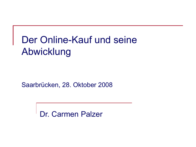 Der Online-Kauf und seine Abwicklung Saarbrücken, 28. Oktober 2008 Dr. Carmen Palzer Der Online-Kauf und seine Abwicklung Gliederung Vertragsschluss Sonderregeln Vertragsschluss Fernabsatz-Geschäft E-Commerce Abwicklung Versand, Gefahrtragung, Kosten Widerrufs- und Rückgaberecht Dr. Carmen Palzer 2 Der Online-Kauf und seine Abwicklung Vertragsschluss Übereinstimmende Willenserklärungen Angebot Annahme Zugang (vgl. auch § 312e Abs. 1 S. 2 BGB) Dr. Carmen Palzer 3 Der Online-Kauf und seine Abwicklung Sonderregeln Vertragsschluss Elektronische Form des Vertragsschlusses (E-Commerce) Kein persönlicher Kontakt, keine Information über Verkäufer (Fernabsatzgeschäft) Keine Möglichkeit, Ware zu prüfen (Fernabsatzgeschäft) Dr. Carmen Palzer 4 Der Online-Kauf und seine Abwicklung Sonderregeln Vertragsschluss Fernabsatzgeschäft, §§ 312b ff BGB Vertragsschluss zwischen Unternehmer und Verbraucher unter ausschließlicher Verwendung von Fernkommunikationsmitteln im Fernabsatzsystem E-Commerce-Geschäft, §§ 312e ff BGB Vertragsschluss (auch zwischen Unternehmern) mittels Tele- oder Mediendiensten, d.h. unter Einsatz von elektronischen Kommunikationsmitteln Dr. Carmen Palzer 5 Der Online-Kauf und seine Abwicklung E-Commerce-Geschäft, § 312e BGB Pflichten für Unternehmer angemessene technische Mittel zum Erkennen und Berichtigen von Eingabefehlern vor Bestellung zur Verfügung zu stellen den Zugang der Bestellung elektronisch und unverzüglich zu bestätigen Eine Möglichkeit für Abruf und Speicherung der Vertragsbestimmungen nebst AGB bei Vertragsschluss zu schaffen Dr. Carmen Palzer 6 Der Online-Kauf und seine Abwicklung E-Commerce-Geschäft, § 312e BGB, § 3 BGB-InfoVO Informationspflichten - vor Abgabe der Bestellung Technische Schritte bis zum Vertragsschluss (Nr. 1) Speicherung Vertragstext und Möglichkeit des Abrufs für Kunden (Nr. 2) Behebung von Eingabefehlern (Nr. 3) Sprachen (Nr. 4) Verhaltenskodizes (Nr. 5) Dr. Carmen Palzer 7 Der Online-Kauf und seine Abwicklung Fernabsatzgeschäft, § 312c Abs. 1 BGB, § 1 Abs. 1 BGB InfoVO Informationspflichten - vor Abgabe der Vertragserklärung durch Verbraucher Identität (Nr. 1-3) Wesentliche Merkmale der Leistung (Nr. 4) Angaben über Vertragsschluss (Nr. 4) Mindestlaufzeit (Nr. 5) Dr. Carmen Palzer 8 Der Online-Kauf und seine Abwicklung Fernabsatzgeschäft, § 312c Abs. 1 BGB, § 1 Abs. 1 BGB InfoVO Vorbehalte (Nr. 6) Preisangaben (Nr. 7, 8) Angaben zu Zahlung/Lieferung (Nr. 9) Hinweis auf Widerrufs-/Rückgaberecht, sog. Widerrufsbelehrung (Nr. 10) Erhöhte Telefon-/Internetkosten (Nr. 11) Befristung Angebot (Nr. 12) Dr. Carmen Palzer 9 Der Online-Kauf und seine Abwicklung Fernabsatzgeschäft, § 312c Abs. 2 BGB, § 1 Abs. 4 BGB InfoVO Informationspflichten - vor der vollständigen Erfüllung des Vertrages, in Textform (§ 126b BGB) Alle Informationen nach § 312c Abs. 1 BGB Informationen über Kundendienst und Garantiebedingungen Falls Informationen in AGB enthalten: Angaben zu ladungsfähiger Anschrift, Widerrufs-/Rückgaberecht, Kundendienst, Garantie hervorgehoben und deutlich Dr. Carmen Palzer 10 Der Online-Kauf und seine Abwicklung …… weitere Pflichten bei Dauerschuldverhältnissen, Finanzdienstleistungen zudem weitere Informationspflichten z.B. aus Telemediengesetz (Impressumspflicht) sowie Datenschutzrecht … Dr. Carmen Palzer 11 Der Online-Kauf und seine Abwicklung Online-Kauf- Abwicklung Versand Widerrufs- bzw. Rückgaberecht Dr. Carmen Palzer 12 Der Online-Kauf und seine Abwicklung Versand Gefahrtragung Grundsatz § 446 BGB: Gefahrübergang erst bei Übergabe an Käufer Ausnahme § 447 BGB: Versendungskauf, dann GÜ bei Übergabe an Transportperson Ausnahme von Ausnahme § 474 Abs. 2 BGB: kein Versendungskauf bei „Verbrauchsgüterkauf“ Keine abweichenden Regelungen, (insb. AGB) gegenüber Verbraucher § 475 Abs. 1 BGB Dr. Carmen Palzer 13 Der Online-Kauf und seine Abwicklung Versand Kosten Versendungskauf: § 448 BGB, Kosten trägt Käufer Sonst keine Regelung, also: Vereinbarung Beachte: Vorlagebeschluss des BGH an EUGH vom 1. Oktober 2008 - VIII ZR 268/07 Dr. Carmen Palzer 14 Der Online-Kauf und seine Abwicklung Widerrufs- oder Rückgaberecht Widerrufsrecht §§ 312d, 355 ff BGB Gesetzlich verankert: § 312d BGB Begründung nicht erforderlich Ausübung: in Textform oder durch Rücksendung Gefahr und Kosten trägt Unternehmer, Ausnahmen unter best. Voraussetzungen möglich, z.B. unter 40,00 € Dr. Carmen Palzer 15 Der Online-Kauf und seine Abwicklung Widerrufs- oder Rückgaberecht Widerrufsfrist, §§ 312d, 355 BGB 2 Wochen bei Belehrung vor oder bei Vertragsschluss 1 Monat bei Belehrung nach Vertragsschluss Fristbeginn: frühestens ab Belehrung in Textform, bei Lieferung von Waren erst ab Eingang der Ware (§ 312d Abs. 2 BGB) Beginnt nicht vor Erfüllung der Pflichten aus § 312c Abs. 2 (Textform), (§ 312d Abs. 2 BGB) und § 312e Abs. 1 BGB ( § 312e Abs. 3 BGB) Erlischt spätestens 6 Monate nach Vertragsschluss oder, bei Lieferung von Waren, nach Wareneingang – kein Erlöschen, wenn keine ordnungsgemäße Belehrung!! Dr. Carmen Palzer 16 Der Online-Kauf und seine Abwicklung Widerrufs- oder Rückgaberecht Rückgaberecht §§ 312d, 356 BGB Kann, wenn gesetzlich zugelassen (z.B. in § 312d BGB), statt des gesetzlich verankerten Widerrufsrechts vertraglich vereinbart werden Belehrung in Textform in Verkaufsprospekt (auch Internetkatalog) Ausübung: grds. Rücksendung Frist/Begründung wie Widerruf Kosten + Gefahr trägt Unternehmer, keine Ausnahme Dr. Carmen Palzer 17 Der Online-Kauf und seine Abwicklung Fazit BGB-Regeln anwendbar (Vertragsschluss, Gefahrtragung, Vertragsmängel, Gewährleistung…) Sonderregeln: Als E-Commerce-Geschäft Informationspflichten und Vorgaben für technische Umsetzung als Fernabsatzgeschäft Informationspflichten und Widerrufs- und Rückgaberecht Dr. Carmen Palzer 18 Der Online-Kauf und seine Abwicklung Vielen Dank für Ihre Aufmerksamkeit Dr. Carmen Palzer 19