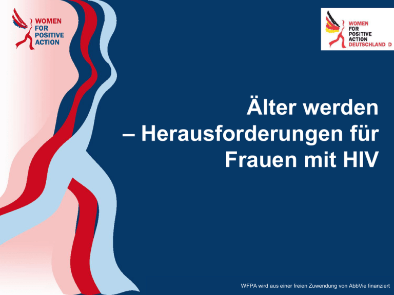 Älter werden – Herausforderungen für Frauen mit HIV WFPA wird aus einer freien Zuwendung von AbbVie finanziert Women for Positive Action is supported by a grant from Abbott Inhalt Einleitung Körperliche Herausforderungen Emotionale, psychologische und psychiatrische Herausforderungen Rat und Hilfe Zusammenfassung und Fallbeispiele Weiterführende Informationen 2 Einleitung WFPA wird aus einer freien Zuwendung von AbbVie finanziert Women for Positive Action is supported by a grant from Abbott Die Weltbevölkerung altert In 2050 werden ca. 25% der Weltbevölkerung 60 Jahre und älter sein Schätzung 3000 Menschen in Millionen • 2500 2000 1500 2009 2025 1000 2050 500 0 0-19 20-29 30-39 40-49 50-59 ≥60 Alter in Jahren 4 Internationale Datenbank des US Census Bureau Menschen im Alter von 60 und mehr Jahren – weltweit 5 www.helpage.d Epidemiologie 2013 o 4,2 Millionen Menschen im Alter von ≥50 Jahren leben weltweit mit HIV, davon 2,5 Millionen in Subsahara-Afrika o Prävalenz von HIV bei Menschen ≥50 Jahren hat sich seit 1995 verdoppelt o 13% aller Erwachsenen, die mit HIV leben, sind ≥50 Jahre 6 Mahy et al., 2014 HIV und Alter weltweit 7 UNAIDS GAP Report 07/2013 Lebenserwartung von HIV-PatientInnen • Die Lebenserwartung von PatientInnen mit Zugang zur ART ist inzwischen mit der Lebenserwartung der Allgemeinbevölkerung vergleichbar 8 1. Antiretroviral Therapy Cohort Collaboration (2008) Lancet 2. Swiss HIV Cohort Study (Mai 2009) Neudiagnosen bei älteren Menschen (1) • Der Anteil von HIV-Infektionen und -Neudiagnosen bei älteren Menschen steigt1-3 • Die tatsächlichen Infektionsraten bei Menschen ≥50 sind wegen niedriger Testraten oft nicht bekannt4 9 1. EuroHIV End-year Report (2006) 2. Simone MJ et al (2008) Geriatrics 3. Dougan S et al (2004) Epidemiol Infect 4. Pratt G et al (2010) Age and Ageing Neudiagnosen bei älteren Menschen (2) Europa: • der Anteil von Frauen ≥50 Jahren an neuen HIV/Aids-Fällen ist von 7,4% im Jahr 2004 auf 12,5% im Jahr 2010 gestiegen1 UK: • Neudiagnosen bei älteren Erwachsenen haben sich zwischen 2000 und 2009 mehr als verdoppelt2: 2009: 13% aller Diagnosen3 • 2009: 25% aller Diagnosen bei Menschen ≥50 Jahre werden bei Frauen gestellt4 • 10 1. WHO/ECDC (2010) HIV/AIDS surveillance in Europe 2010 2. www.hpa.org.uk/hpr/archives/2010/hpr4710.pdf 3. www.hpa.org.uk/hpr/archives/2010/hpr4710.pdf 4. Smith R et al (2010) HIV Medicine Deutschland: Neudiagnosen bei Frauen nach Alter HIV-Neudiagnosen bei Frauen 2013 120 100 Anzahl Fälle 80 60 40 20 0 Altersgruppen 11 www.rki.de, survstat, Datenabfrage 09.10.2014 Warum gibt es immer mehr ältere Menschen mit HIV? • Menschen, die mit HIV und HAART älter und alt werden • Menschen, bei denen HIV im mittleren oder fortgeschrittenen Lebensalter diagnostiziert wird unterschiedliche Bedürfnisse, unterschiedliche Herausforderungen 12 Späte Diagnosen… • Ältere Menschen werden oft erst spät auf HIV getestet, weil • ältere Menschen sich trotz möglicher Infektionsrisiken nicht für gefährdet halten • das medizinische Personal bei älteren Menschen HIV als Krankheitsursache nicht in Betracht zieht 13 … und ihre Folgen • eine späte Diagnose bedeutet auch eine späte Behandlung1 • eine späte Behandlung kann für ältere Menschen negative Folgen haben2-4 • ältere PatientInnen mit CD <200 bei der Diagnose haben ein 14-fach erhöhtes Sterberisiko4 • aber: ältere PatientInnen können aus der HAART den gleichen Nutzen ziehen wie jüngere5 14 1. Rotily M et al (2000) Int J STD AIDS 2. Kirk (2006) J Am Geriatr Soc 3. COHERE Study Group (2008) AIDS 4. Smith R et al (2010) Lancet 5. Perez JL et al (2003) Clin Infect Dis HIV und älter werden Alter BegleitErkrankungen HIV/Aids HAART 15 Mod. nach Gazzard B., Aging and AIDS: new clinical endpoints in clinical practice. IAS 2007, MOPL 103 Begleiterkrankungen bei älteren Menschen mit HIV • • • • • • • • Herz-Kreislauf-Erkrankungen / koronare Herzkrankheit Metabolisches Syndrom / Diabetes Mellitus Leber- und Nierenerkrankungen Osteopenie / Osteoporose Neuropathien Malignome Demenz / neurokognitive Defizite Depressionen 16 HIV und altersbedingte Erkrankungen • Eine Studie aus den Niederlanden zeigt für Menschen mit HIV ein signifikant erhöhtes Risiko für Alterserkrankungen im Vergleich zu Menschen ohne HIV: • • • • Bluthochdruck Herzanfall periphere Arterienerkrankungen eingeschränkte Nierenfunktion 45% 4% 3% 4% vs. 31% vs. 2% vs. 1% vs. 2% • traditionelle Risikofaktoren (z.B. Rauchen, Übergewicht, hoher Blutdruck, Bewegungsmangel) erhöhen die Risiken • die Dauer der HIV-Infektion, der Behandlung und der Immunsuppression beeinflusst die Risiken 17 Schouten J et al. 2014 Konsens • HIV und HAART… • … können den Prozess des Alterns beeinflussen • … können die Entwicklung von altersspezifischen Erkrankungen beeinflussen 18 High et al. J Acquir Immune Defic Syndr 2012; 60 Offene Fragen • Warum entwickeln Menschen mit HIV einige altersbedingte Symptome und Erkrankungen früher als Menschen ohne HIV? • Mögliche Erklärungen: • HIV beschleunigt den Alterungsprozess, z.B. durch entzündliche Prozesse • HIV verstärkt andere Faktoren, die das Risiko für bestimmte Erkrankungen steigern • Weitere Forschung ist notwendig! 19 Ältere Frauen mit HIV Älterwerden stellt Frauen mit HIV vor dieselben HerausForderungen wie Frauen ohne HIV, es kommen aber hinzu Konsequenzen der HIVInfektion Konsequenzen der länger dauernden HAART 20 Häufiger bei älteren Frauen mit HIV: • hormonelle Veränderungen • kardiovaskuläre Erkankungen • nicht-Aids-definierende Infektionen • Nierenerkrankungen • nicht-Aids-definierende Krebserkrankungen • muskuläre/skelettäre Veränderungen • nicht-Aids-bedingte neurokognitive/psychiatrische Veränderungen, Stimmungsschwankungen und Störungen des zentralen Nervensystems Körperliche Herausforderungen für Frauen beim Älterwerden WFPA wird aus