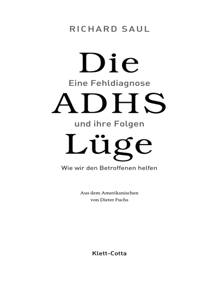 RICHARD SAUL Die AD H S Lüge Eine Fehldiagnose und ihre Folgen Wie wir den Betroffenen helfen Aus dem Amerikanischen von Dieter Fuchs Klett-Cotta Die Wiedergabe von Warenbezeichnungen und Handelsnamen, die in diesem Buch als solche nicht eigens gekennzeichnet sind, berechtigt nicht zu der Annahme, dass diese von jedermann frei benutzt werden dürfen. www.klett-cotta.de Die Originalausgabe erschien unter dem Titel »ADHD does not exist. The Truth about Attention Deficit and Hyperactivity Disorder« im Verlag HarperCollins, New York © 2014 by Richard Saul Für die deutsche Ausgabe ©2015 by J. G. Cotta’sche Buchhandlung Nachfolger GmbH, gegr. 1659, Stuttgart Alle deutschsprachigen Rechte vorbehalten Printed in Germany Umschlag: Rothfos & Gabler, Hamburg Redaktion: Ulf Müller, Köln Gesetzt von Dörlemann Satz, Lemförde Gedruckt und gebunden von Friedrich Pustet GmbH & Co. KG, Regensburg ISBN 978-3-608-98046-2 Bibliografische Information der Deutschen Nationalbibliothek Die Deutsche Nationalbibliothek verzeichnet diese Publikation in der Deutschen Nationalbibliografie; detaillierte bibliografische Daten sind im Internet über <http://dnb.d-nb.de> abrufbar. Dieses Buch ist all den Kindern und Erwachsenen gewidmet, die fälschlicherweise die Diagnose ADHS erhalten haben und deshalb zu spät oder gar nicht behandelt wurden. »Man darf nicht mehr Ursachen für die in der Natur vorkommenden Dinge zulassen, als wahr sind und zur Erklärung der Erscheinungen dieser Dinge ausreichen. (…) Folglich muss man, soweit wie es möglich ist, den in der Natur vorkommenden Wirkungen von der gleichen Art die gleichen Ursachen zuschreiben.« Isaac Newton »Hör dem Patienten zu, er sagt dir die Diagnose.« Sir William Osler, Mitbegründer der Johns Hopkins Medical School Inhalt Inhalt Vorbemerkung des Autors . . . . . . . . . . . . . . . . . . . . . . . . . . . . . . . . . . . Vorwort . . . . . . . . . . . . . . . . . . . . . . . . . . . . . . . . . . . . . . . . . . . . . . . . . . . . . Einführung: ADHS – die Störung, die es gar nicht gibt . . . . . . 11 13 19 TEIL I: DIE GEBURT EINER K RISE 11. 12. 13. 14. Was wir über ADHS wissen . . . . . . . . . . . . . . . . . . . . . . . . . . . . . Eine einfache Antwort: Die Gesellschaft ist schuld . . . . . . Die Stimulanzien-Epidemie und ihre Auswirkungen . . . Die Störungen hinter den ADHS -Symptomen – ein Überblick . . . . . . . . . . . . . . . . . . . . . . . . . . . . . . . . . . . . . . . . . . . . 27 39 45 54 TEIL II: DIE S TÖRUNGEN UND LEIDEN, DIE DEN A DHS-S Y MP TOMEN ZUGRUNDE LIEGEN 15. 16. 17. 18. 19. 10. 11. 12. 13. 14. 15. 16. Sehstörungen . . . . . . . . . . . . . . . . . . . . . . . . . . . . . . . . . . . . . . . . . . . Schlafstörungen . . . . . . . . . . . . . . . . . . . . . . . . . . . . . . . . . . . . . . . . . Substanzmissbrauch . . . . . . . . . . . . . . . . . . . . . . . . . . . . . . . . . . . . Affektive Störungen (bipolare Störung und Major Depression) . . . . . . . . . . . . . . . . . . . . . . . . . . . . . . . . . . . . . . . Hörprobleme . . . . . . . . . . . . . . . . . . . . . . . . . . . . . . . . . . . . . . . . . . . . Lernstörungen . . . . . . . . . . . . . . . . . . . . . . . . . . . . . . . . . . . . . . . . . . Sensorische Verarbeitungsstörung . . . . . . . . . . . . . . . . . . . . . . Hochbegabung . . . . . . . . . . . . . . . . . . . . . . . . . . . . . . . . . . . . . . . . . . Anfallsleiden . . . . . . . . . . . . . . . . . . . . . . . . . . . . . . . . . . . . . . . . . . . . Zwangsstörungen . . . . . . . . . . . . . . . . . . . . . . . . . . . . . . . . . . . . . . . Tourette-Syndrom . . . . . . . . . . . . . . . . . . . . . . . . . . . . . . . . . . . . . . Asperger-Syndrom (Autismusspektrumsstörung) . . . . . . 59 70 84 99 114 125 136 148 160 170 181 191 Inhalt 9 17. 18. 19. 20. 21. Neurochemisch bedingte Ablenkbarkeit/Impulsivität . . Schizophrenie . . . . . . . . . . . . . . . . . . . . . . . . . . . . . . . . . . . . . . . . . . . Fetales Alkoholsyndrom . . . . . . . . . . . . . . . . . . . . . . . . . . . . . . . . Fragiles-X-Syndrom . . . . . . . . . . . . . . . . . . . . . . . . . . . . . . . . . . . . Andere Ursachen . . . . . . . . . . . . . . . . . . . . . . . . . . . . . . . . . . . . . . . . 205 217 229 242 254 T E I L I I I : WA S Z U U N T E R N E H M E N I S T 22. Wenn es keine Diagnose gibt . . . . . . . . . . . . . . . . . . . . . . . . . . . . 273 23. Beurteilung der Symptome und der Umgang damit . . . . . 280 Anmerkungen . . . . . . . . . . . . . . . . . . . . . . . . . . . . . . . . . . . . . . . . . . . . . . . 295 Danksagung . . . . . . . . . . . . . . . . . . . . . . . . . . . . . . . . . . . . . . . . . . . . . . . . . 317 10 Inhalt Vorbemerkung des Autors In diesem Buch werde ich »ADHS« als eine Art Abkürzung für die Gruppe von Aufmerksamkeitsdefizit-/Hyperaktivitätssymptomen verwenden, die diese Bezeichnung von der American Psychiatric Association, deren Referenzwerk DSM1 sowie all jenen erhalten haben, die sie gutheißen konnten oder mit offenen Armen empfangen haben. Des Weiteren gehe ich an etlichen Stellen darauf ein, inwiefern und in welchen Punkten ADHS sich mit anderen Diagnosen überschneidet. In sämtlichen Fällen bitte ich Sie darum, »ADHS« als »die Summe der mit dieser Diagnose in Verbindung gebrachten Symptome« zu verstehen und meine Verwendung der Diagnose nicht etwa wörtlich zu nehmen. Wenn es mir um Letzteres ginge, gäbe es dieses Buch nicht. Schließlich empfehle ich allen wissbegierigen Lesern, nach der Lektüre jedes Kapitels den Anmerkungsteil zu konsultieren, wo sich weitere Details und Quellennachweise finden. Vorbemerkung des Autors 11 Vorwort Vorwort Ich habe dieses Buch geschrieben, um zu provozieren. Nicht um des Provozierens willen, sondern weil ich seit Jahren mit den vielfältigen Problemen konfrontiert bin, die durch die Fehldiagnose einer Aufmerksamkeitsdefizit-/Hyperaktivitätsstörung (ADHS) bei Kindern wie auch bei Erwac