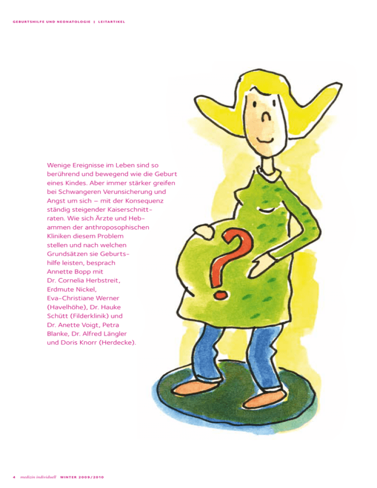 geburtshilfe und neonatologie | L eitartikel Wenige Ereignisse im Leben sind so berührend und bewegend wie die Geburt eines Kindes. Aber immer stärker greifen bei Schwangeren Verunsicherung und Angst um sich – mit der Konsequenz ständig steigender Kaiserschnittraten. Wie sich Ärzte und Hebammen der anthroposophischen Kliniken diesem Problem stellen und nach welchen Grundsätzen sie Geburtshilfe leisten, besprach Annette Bopp mit Dr. Cornelia Herbstreit, Erdmute Nickel, Eva-Christiane Werner (Havelhöhe), Dr. Hauke Schütt (Filderklinik) und Dr. Anette Voigt, Petra Blanke, Dr. Alfred Längler und Doris Knorr (Herdecke). 4 medizin individuell winter 2 0 0 9 / 2 010 geburtshilfe und neonatologie | L eitartikel Die Kollision des Zeitgeistes mit der Natur Was hat sich in den vergangenen Jahren und Jahrzehnten hinsichtlich Schwangerschaft und Geburt verändert? Wie ist das mit der Angst vor der Geburt – ist sie heute eher ein Thema als früher? Cornelia Herbstreit: Heute wissen Frauen viel mehr als früher und haben viel gelesen, aber sie haben immer weniger unmittelbare Erfahrung, was Schwangerschaft und Geburt betrifft. Anette Voigt: Frauen bekommen heute kaum noch innerhalb der Familie die Geburt und Säuglingspflege als etwas Natürliches mit. Sie wissen nicht, wie sie ein Fläschchen zubereiten, was ein Kleinkind isst – so ganz banale Dinge. Hauke Schütt: Oft ist ja schon schwierig, überhaupt schwanger zu werden. Damit klappt es oft nicht mehr auf Anhieb – und es gibt viel mehr Diagnostik, wenn es dann soweit ist. Erdmute Nickel: Die meisten Frauen haben sehr präzise Vorstellungen, wie eine Geburt ablaufen sollte, aber wenig Vertrauen in das eigene Gefühl und wenig inneren Spielraum für die Bandbreite dessen, was eine Geburt mit sich bringt. Sie wissen nicht, dass jede Geburt so individuell ist wie der Mensch selbst, und dass jede anders verläuft – vor allem anders als die Vorstellung es vorgibt. Herbstreit: Frauen bekommen ihr erstes Kind heute oft relativ spät, und sie sind es gewohnt, alles im Griff zu haben, alles zu managen. Schwangerschaft und Geburt sind aber Vorgänge, die man schlecht kontrollieren kann, da muss man viel abgeben, geschehen lassen, sich anvertrauen. Das fällt vielen sehr schwer. Oft geht es schon los mit dem Entbindungstermin. Wir sagen dann immer: „Der errechnete Termin ist der Termin, an dem das Kind wahrscheinlich nicht kommt“ – nur 4 Prozent der Babys halten sich daran. Für viele ist es schon schwierig, das nicht als pathologisch oder als Kontrollverlust zu erleben, sondern als normalen Verlauf, dem Raum zu geben ist. Aber es ist nunmal so: Bei der Geburt kollidiert der Zeitgeist mit der Natur. Petra Blanke: Für mich ist am auffälligsten, dass die Frauen mehr Angst haben. Sie haben kaum noch Vorbilder für eine gute Geburt, es werden eher die negativen Erfahrungen berichtet als die positiven. Eva-Christiane Werner: Ich glaube, dass die Angst schon immer da war, sie wird heute nur eher benannt und bekommt durch das Internet mehr Raum. Es wird weniger Angst gemacht, als mehr über die Angst gesprochen. Die Angst vor dem Unbekannten, davor, was einem passieren kann unter der Geburt – die war schon immer da. Früher waren die Menschen nur eher bereit, sich anzuvertrauen – einer Fügung, einer göttlichen Macht, der Natur, was auch immer. Man hat gebetet und gehofft – Frauen waren guter Hoffnung! Heute begegnet man der Angst mit Kontrolle, mit dem Zwang, etwas zu machen. Die Geburt ist aber etwas, wo man in erster Linie nichts macht, sondern zulässt, kommen lässt. Wir machen immer wieder die Erfahrung, dass die Geburt dann gut vorangeht, wenn eine Frau sich in dieser Art wirklich dem Geschehen überlässt, zulässt, sich selbst fallenlässt in das, was da kommt und mit ihr geschieht. Und selbst die Kontrolliertesten kommen spätestens dann ins Schleudern, wenn die Wehen richtig knackig werden – wenn eine Frau zu sehr im Kopf ist, kann sie nicht gut gebären. Nickel: Wir müssen uns auch klarmachen, wer hier bestimmt, wann die Geburt losgeht – das ist das Kind! Das Kind gibt den Impuls zum Geburtsbeginn. Und die beste Schmerzmedikation ist die menschliche Begleitung – Präsenz, Zuwendung, Berührung. Das ist das wichtigste. Jede Geburt ist anders und nie so, wie man sie sich vorstellt Wie oft wird an Sie der Wunsch nach einem Kaiserschnitt herangetragen, aus Angst vor Geburtsverletzungen, Schmerzen oder anderen Gründen? Voigt: Einen echten Wunschkaiserschnitt gibt es selten. Die meisten, die mit diesem Anliegen kommen, haben so sehr Angst vor der Geburt, dass die Angst die Indikation darstellt. Und wenn wir die Frau davon nicht abbringen können, dann machen wir eben einen Kaiserschnitt. Schütt: Es ist ja die Aufgabe von uns Ärzten und auch der winter 2 0 0 9 / 2 010 medizin individuell 5 Satt, warm, zufrieden, geborgen im Arm der Mutter und sehr schläfrig – ein wenige Tage altes Neugeborenes. Hebammen, dass wir den Frauen die Angst nehmen und Vertrauen in die eigene Kraft vermitteln. Das wird heute vielerorts unzureichend wahrgenommen. Zu uns in die Filderklinik kommen eher Frauen, die eben gerade keinen Kaiserschnitt wollen – den bekommen sie andernorts sowieso. Wir schaffen es in aller Regel, diesen Wunsch zu relativieren. Gelingt es uns nicht, werde ich mich allerdings nicht zum Richter aufschwingen, dann bekommt die Frau ihren Kaiserschnitt, auch von mir. Aber das sind im Jahr nicht mehr als fünf oder sechs. Herbstreit: Unserer Erfahrung nach sind es sehr wenige Frauen, die strikt dabei bleiben, und sie schicken wir woanders hin. Manche sind dann verstimmt, weil sie ihren Kaiserschnitt gerne in der kuscheligen Atmosphäre von Havelhöhe bekommen wollen – aber das entspricht einfach nicht der Art und Weise, wie wir hier Geburtshilfe leisten wollen. Wir sind ja hier nicht auf dem Land, wo die nächste Klinik 200 km entfernt ist. Wenn eine Frau einen wirklichen Wunschkaiserschnitt will, dann findet sie in nä