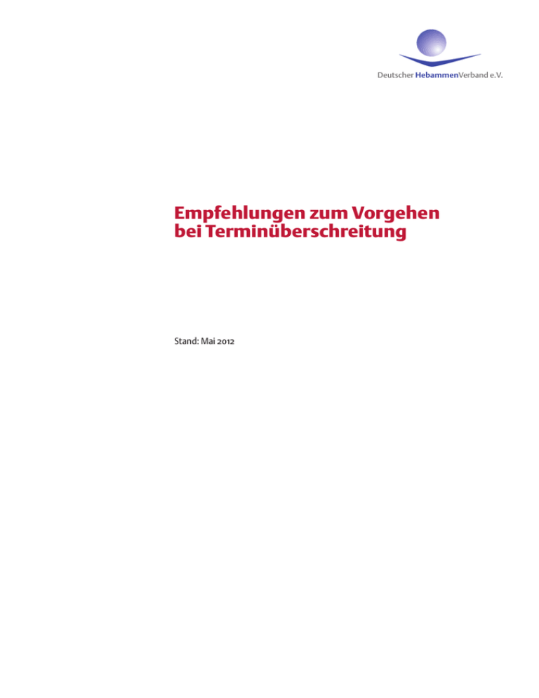 Deutscher HebammenVerband e.V. Empfehlungen zum Vorgehen bei Terminüberschreitung Stand: Mai 2012 1 Inhaltsverzeichnis Vorwort 3 Einleitung 7 Mögliche Gründe für eine Terminüberschreitung oder Übertragung 8 Zeichen der Übertragung 19 Mögliche Probleme im Zusammenhang mit Übertragung 10 Zur Wahrscheinlichkeit einer erhöhten Totgeburtenrate 11 Einleitung der Geburt im Vergleich zur abwartenden Beobachtung 13 Methoden der Geburtseinleitung 15 Sichtweise der Frauen 17 Möglichkeiten der abwartenden Beobachtung (Überwachungstechniken) 17 Richtlinien und Empfehlungen 19 Abgeleitete Empfehlung für den Umgang mit Terminüberschreitung in Deutschland 20 Fazit 22 Literatur 23 2 Empfehlungen zum Vorgehen bei Terminüberschreitung Vorwort Der Deutsche Hebammenverband (DHV) ist ein Bundesverband und setzt sich aus 16 Landesverbänden zusammen. Mit derzeit 17.544 Mitgliedern ist der DHV der größte Hebammenberufsverband in Deutschland und vertritt die Interessen aller Hebammen. In ihm sind angestellte und freiberufliche Hebammen, Lehrerinnen für Hebammenwesen, Familienhebammen sowie Hebammenschülerinnen und Studierende vertreten. Mit der Gesundheitsreform 2000 wurde die generelle Verpflichtung der Leistungserbringer zur Qualitätssicherung vom Gesetzgeber in §135a SGB V vorgeschrieben. Die vorliegenden Empfehlungen können als ein Ergebnis dieser Verpflichtung bewertet werden. Sie wurden unter Berücksichtigung vorhandener Evidenzen unter dem Gebot der wirtschaftlichen Versorgung erstellt und konsentiert. Mittelfristig ist eine Leitlinienentwicklung durch die Deutsche Gesellschaft für Hebammenwissenschaft (DGHWi) geplant. In der Expertinnengruppe zur Erstellung der vorliegenden Empfehlung war die Sektion Schwangerenvorsorge der DGHWi vertreten. Schwerpunkte der Hebammenarbeit liegen in der medizinischen Betreuung, Gesundheitsförderung und Steigerung der Lebensqualität der Frauen und Familien. Die vorliegenden Empfehlungen wurden von einer Gruppe wissenschaftlich und praktisch tätiger Hebammen im Auftrag des Deutschen Hebammenverbandes erstellt. Ausgangssituation Hebammen sind tätig in der Schwangerschaft, in der Schwangerenbetreuung (Schwangerenvorsorge, Geburtsvorbereitung, Hilfeleistung bei Schwangerschaftsbeschwerden etc.), während der Geburt in der Geburtshilfe und nach der Geburt in der Wochenbettbetreuung, Neugeborenenbetreuung, Stillberatung und Rückbildungsgymnastik. In allen Arbeitsbereichen der Hebammen gibt es Überschneidungen mit den Tätigkeiten anderer Berufsgruppen des Gesundheitswesens (z. B. GynäkologInnen, Pflegepersonal). Ein wesentlicher Unterschied liegt jedoch darin, dass es sich bei dem von Hebammen betreuten Personenkreis in der Regel um Gesunde handelt. Von zentraler Bedeutung ist das Recht der betreuten Frauen auf Information und eigene Entscheidung über Art und Umfang diagnostischer und therapeutischer Maßnahmen. Dies bedingt eine andere Sichtweise, deren Darlegung auch für andere Berufsgruppen richtungweisend sein kann. Die im Folgenden gegebenen Empfehlungen beschreiben das Vorgehen bei physiologischem Verlauf der Schwangerschaft nach Überschreitung des errechneten Entbindungstermins. Der Umgang mit pathologischen Zuständen ist nicht Gegenstand dieser Empfehlung. Verbindlichkeit der Empfehlungen Publikationen zur Verbindlichkeit von Richtlinien, Leitlinien und Empfehlungen beschäftigen sich bisher nur mit ärztlicher Tätigkeit. Darin wird davon ausgegangen, dass Frauen, die ärztliche Leistung in Anspruch nehmen, vom Facharztstandard ausgehen können. Idealerweise sollten die Mutterschafts-Richtlinien und die Empfehlungen der Fachgesellschaften den aktuellen Stand der Wissenschaft widerspiegeln. In juristischen Auseinandersetzungen werden Richtlinien, Leitlinien und Empfehlungen als Maßstab zur Beurteilung eines möglichen Behandlungsfehlers im Schadensfall herangezogen. Die Besonderheiten des Falles oder ernsthafte Kritik an der hergebrachten Methode können ein Abweichen von der Standardmethode rechtfertigen. Wesentlich ist jedoch, dass mit der erforderlichen Sorgfalt vorgegangen wurde. Frauen, die Hebammenvorsorge in Anspruch nehmen, können sicher nicht vom »Facharztstandard« ausgehen. Sie können jedoch davon ausgehen, dass die Hebamme sie mit der erforderlichen Sorgfalt betreut und fachärztliche Behandlung vorschlägt, wenn diese erforderlich werden sollte. Richtlinien, Leitlinien und Empfehlungen sind weder für die betreuten Frauen noch für die betreuenden Fachkräfte bindend. Die betreuten Frauen können selbst entscheiden über Art, Umfang und Ort der Betreu- 3 Empfehlungen zum Vorgehen bei Terminüberschreitung ung, die sie in Anspruch nehmen möchten. Aufgabe der Hebamme ist es, innerhalb der Schwangerenvorsorge über zweckmäßige Untersuchungen und deren Vor- und Nachteile generell und im individuellen Fall zu informieren, so dass die Frau in der Lage ist, die für sie richtige Entscheidung zu treffen. Gegenstand sind dabei sowohl Inhalte dieser Empfehlungen als auch die der Mutterschafts-Richtlinien und Empfehlungen der Fachgesellschaften in besonderen Fällen. Die Bezugnahme auf die ärztlicherseits gültigen Mutterschafts-Richtlinien in den vorliegenden Empfehlungen begründet sich durch die Hebammengebührenordnung, die die Vergütung der Hebamme für Schwangerschaftsvorsorge nach den Mutterschafts-Richtlinien vorsieht. Die in den Mutterschafts-Richtlinien an die Abrechenbarkeit gestellten Voraussetzungen in Form von Indikationen z. B. für kardiotokographische Überwachung gelten auch für die Hebamme, die diese Leistungen erbringt. Ziel dieser Empfehlungen ist es, der Hebamme evidenzbasierte Informationen an die Hand zu geben für das beratende Gespräch ebenso wie für die eigene Entscheidungsfindung, wenn die Frau der Hebamme die Entscheidung über den Inhalt der Vorsorge bei Terminüberschreitung überlässt. Verurteilungen im Schadensfall erfolgen häufig aufgrund mangelnder Aufklärung oder mangelhafter Dokument
