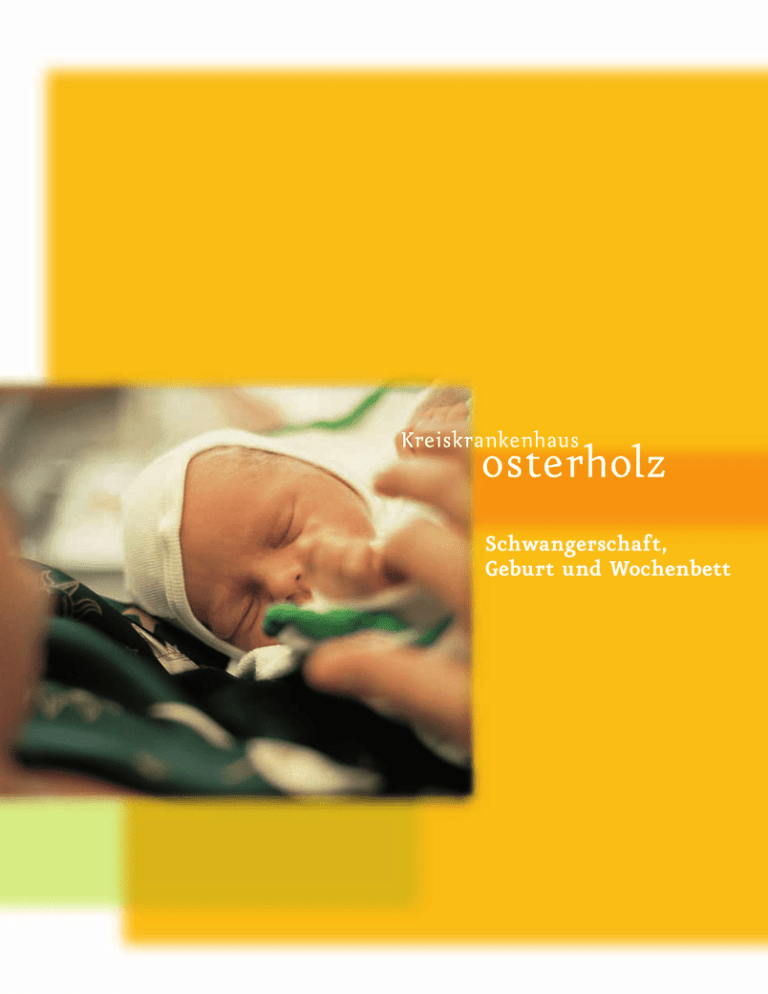 Schwangerschaft, Geburt und Wochenbett „Es gibt Momente, die kann man nicht in Worte fassen, nur fühlen“ 01 Schwangerschaft und Geburt stehen am Anfang jeder menschlichen Existenz und bestimmen das weitere Leben werdender Eltern auf eine ganz neue, positive Art und Weise. Die Gründung einer Familie stellt ein einmaliges Glückserlebnis für junge Paare dar, an dessen Verwirklichung Hebammen und Ärzte maßgeblich beteiligt sind. Vor diesem Hintergrund ist uns die sorgfältige und vertrauensvolle Begleitung schwangerer Frauen ein wichtiges Element der Gesundheitsfürsorge, um Fragen zu beantworten, Ängste abzubauen, Gefahren rechtzeitig zu erkennen und zu behandeln. Unser Ziel ist es, Ihnen eine familienorientierte und selbstbestimmte Geburt in Sicherheit und Geborgenheit zu ermöglichen. Wir möchten Ihnen helfen, die Geburt zum Erlebnis werden zu lassen und hierbei Ihre Bedürfnisse zu erkennen. Mit ausführlicher Beratung zur Schwangerschaft, zum Wochenbett und zum Geburtsverlauf möchten wir Ihnen dabei zur Seite stehen. ... gut ankommen. Wir bekommen ein Kind – alles wird sich verändern. Wie wird es sein? Wie bereiten wir uns auf die Geburt vor? Wie und wo wird das Baby auf die Welt kommen? Wie ist es, wenn das Baby da ist? Wird das Baby gesund sein? 02 Welche Sicherheit gibt mir das Krankenhaus? Unser geburtshilfliches Team umfasst Hebammen, Kinderkrankenschwestern, Gynäkologen, einen Kinderarzt sowie weitere Fachärzte die im Schichtdienst 24 Stunden für Sie da sind und Ihre Wünsche erfüllen. Wir helfen etwa 500 Kindern jährlich auf die Welt, wovon ca. 100 Elternpaare die Möglichkeit einer Wassergeburt nutzen. Das Team unterstützt die Geburt mit natürlichen Mitteln. Sollten Risiken bestehen oder Notfälle auftreten, so ist die medizinische Versorgung auch durch die anderen internen Fachabteilungen und eine enge Kooperation mit der Kinderklinik des Zentralkrankenhauses BremenNord gewährleistet. Selbstverständlich stehen uns im Haus moderne Geräte für die Betreuung und Überwachung der Mütter und der Neugeborenen zur Verfügung. Auch die Möglichkeit eines Kaiserschnitts ist jederzeit gegeben. Sollten Sie innerhalb des Krankenhauses andere Abteilungen nutzen müssen, bleibt auch dann Ihr Ansprechpartner derselbe. Für die Vorund Nachsorge steht Ihnen eine Hebamme zur Verfügung. Auch während der Geburt werden Sie nach Möglichkeit durch ein und dieselbe Hebamme begleitet. Ich will mein Kind so natürlich wie möglich zur Welt bringen und ich möchte mich sicher fühlen. Aber wie kann ich sicher sein, dass alles gut geht? Ein Kind zur Welt bringen. Wie wird es sein? Kann ich mich spontan entscheiden, in welcher Position ich mein Kind gebären will? Was ist, wenn Schmerzen unerträglich scheinen? Welche Möglichkeiten habe ich? 03 Welche Möglichkeiten habe ich für das Erleben einer sanften und natürlichen Geburt? Sie entscheiden, ob Sie ambulant oder stationär entbinden. Wir beraten und helfen Ihnen bei Ihrer Entscheidungsfindung. In jedem Fall werden wir Sie optimal unterstützen. Sollten Sie sich für eine ambulante Geburt entscheiden, können Sie noch am selben Tag nach ca. drei Stunden mit Ihrem Kind nach Hause gehen. Wichtig dabei ist, dass Sie sich rechtzeitig um eine Hebamme bemühen, die Sie zu Hause weiter betreut. Bei der Suche sind wir Ihnen gerne behilflich. Falls Sie eine stationäre Geburt vorziehen, stehen Ihnen auf unserer Wochenstation Ein- und Zwei-Bett-Zimmer zur Verfügung, in denen wir Sie gerne betreuen. Sie können bei uns eine selbstbestimmte Geburt in jeder gewünschten Gebärposition erleben. Eine Hebamme begleitet Sie durch die Geburt. Sie unterstützt Sie und hilft Ihnen, die für Sie optimale Gebärposition zu finden – hockend, stehend, liegend, Vierfüßlerstand oder in unserer Entbindungswanne. Ganz nach Ihrem persönlichem Empfinden. Zur Linderung der Geburtsschmerzen stehen uns viele Möglichkeiten zur Verfügung: Entspannungsmassagen, Entspannungsbäder, Entspannung durch Licht, Aromatherapie, Homöopathie, Akupunktur aber auch medikamentöse Schmerztherapie. Geplante Kaiserschnitte sind mit Rückenmarksanästhesie möglich. Beziehen Sie auch Ihren Partner in Ihre Überlegungen mit ein. Je besser er Ihre Wünsche und Vorstellungen kennt, desto leichter kann er Sie während der Geburt unterstützen. Wir möchten, dass die Geburt Ihres Kindes für Sie zu einem schönen und unvergesslichen Erlebnis wird! 04 Was kann ich schon während der Schwangerschaft tun? Bereits vor der Geburt werden Sie sich mit vielen Fragen rund um die Geburt beschäftigen. Wir sprechen mit Ihnen über Unklarheiten und Probleme und führen Schwangerschaftskurse durch. Hierfür nehmen wir gerne Anmeldungen entgegen. Auf Wunsch besteht die Möglichkeit, Vorsorgeuntersuchungen von unseren Hebammen durchführen zu lassen, die Sie auch selbstverständlich bei Schwangerschaftsbeschwerden oder vorzeitigen Wehen betreuen und beraten können. Kursangebote In unseren Kursen haben Sie Gelegenheit, sich mit Fragen um die Schwangerschaft, Geburt und der Zeit danach auseinander zu setzen. Selbstverständlich können Sie uns jederzeit unter der Telefonnummer 04791/803-313 erreichen. Gerne beantworten wir alle Ihre Fragen. » 04 Was kann ich schon während der Schwangerschaft tun? Folgende Kurse zur Vorbereitung auf die Geburt bieten wir Ihnen an: • Geburtsvorbereitungskurse für Paare am Wochenende (Kostenübernahme durch die Krankenkassen, Partner muss Eigenanteil entrichten) • Geburtsvorbereitungskurse über 7 Wochen immer mittwochs und donnerstags (Kostenübernahme durch die Krankenkassen) • Schwangerengymnastik im Wasser (auf Rezept) • Säuglingspflegekurse Nähere Informationen hierzu finden Sie auf unserer Homepage www.kreiskrankenhaus-osterholz.de Elterninformationsabend Sie erfahren etwas über unsere Geburtshilfe, über die kliniktypischen Abläufe rund um die Geburt und über unsere Wochenbettpflege. Eine Besichtigung des Kreißsaals und der Wochen