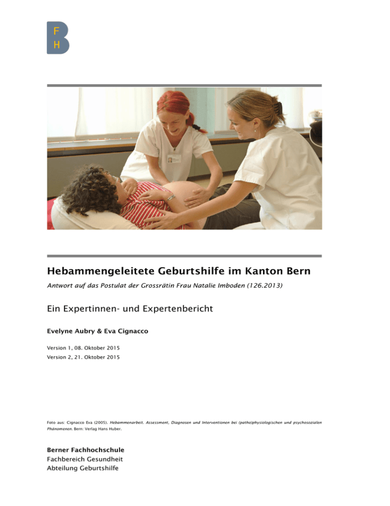 – Hebammengeleitete Geburtshilfe im Kanton Bern Antwort auf das Postulat der Grossrätin Frau Natalie Imboden (126.2013) Ein Expertinnen- und Expertenbericht Evelyne Aubry & Eva Cignacco Version 1, 08. Oktober 2015 Version 2, 21. Oktober 2015 Foto aus: Cignacco Eva (2005). Hebammenarbeit. Assessment, Diagnosen und Interventionen bei (patho)physiologischen und psychosozialen Phänomenen. Bern: Verlag Hans Huber. Berner Fachhochschule Fachbereich Gesundheit Abteilung Geburtshilfe Inhaltsverzeichnis Zusammenfassung 4 1 Einleitung 7 2 Methodisches Vorgehen 11 3 Ergebnisse 15 4 Diskussion 49 5 Schlussfolgerung und Empfehlungen 56 6 Literaturverzeichnis 60 7 Anhang 69 Detailliertes Inhaltsverzeichnis Zusammenfassung 4 1 Einleitung 7 1.1 Ausgangslage 7 1.2 Hintergrund 7 1.3 Auftrag 9 1.4 Zielsetzung und Eingrenzung 9 2 3 Methodisches Vorgehen 11 2.1 Literaturrecherchen 11 2.1.1 Suchstrategien 11 2.1.2 Untersuchte Länder 12 2.2 Expertinnen- und Expertenbefragungen 13 2.3 Validierung des Berichts durch Fachexpertinnen 14 Ergebnisse 15 3.1 Hebammengeleitete Geburtshilfe: Definition 15 3.2 Qualität der hebammengeleiteten Geburtshilfe 16 3.2.1 Effektivität und Sicherheit Berner Fachhochschule | Haute école spécialisée bernoise | Bern University of Applied Sciences 16 2 3.2.2 Frauenzentrierte Betreuung 17 3.2.3 Kontinuierliche Betreuung und autonome Geburtsleitung 18 3.2.4 Gesundheitsförderung und Prävention 19 3.3 Geburtshilfe in der Schweiz und im europäischen Kontext 19 3.3.1 Aktuelle Situation der Geburtshilfe in der Schweiz 19 3.3.2 Geburtshilfe in europäischen Ländern 21 3.4 Hebammengeleitete Geburtshilfemodelle 24 3.5 Analyse des Umgebungsfeldes des Modells der hebammengeleiteten Geburtshilfe in der Schweiz 28 3.5.1 Politische Einflussfaktoren 28 3.5.2 Ökonomische Einflussfaktoren 32 3.5.3 Gesellschaftliche Einflussfaktoren 35 3.5.4 Arbeitsorganisatorische Einflussfaktoren 38 3.6 Ergebnisse der Expertinnen- und Expertenbefragungen 4 3.6.1 Allgemeine Einschätzungen zur hebammengeleiteten Geburtshilfe als Modell 40 3.6.2 Kategorien der Expertinnen- und Expertenbefragungen 42 Diskussion 49 4.1 Zusammenfassung der zentralen Befunde 49 4.1.1 Hebammengeleitete Geburtshilfe als wichtige Ergänzung zur Geburtsversorgung 4.1.2 49 Förderliche und hinderliche Faktoren für die Umsetzung der hebammengeleiteten Geburtshilfe 5 40 53 Schlussfolgerung und Handlungsbedarf 56 5.1 Schlussfolgerung 56 5.2 Handlungsbedarf 57 6 Literaturverzeichnis 60 7 Anhang 69 7.1 Interviewleitfaden 69 Berner Fachhochschule | Haute école spécialisée bernoise | Bern University of Applied Sciences 3 Zusammenfassung Ausgangslage Im Kanton Bern sollen mit dem Postulat Imboden (14.8.2013) Rahmenbedingungen überprüft werden, die bei der Einführung einer hebammengeleiteten Geburtshilfe in den Spitälern mit einer geburtshilflichen Abteilung förderlich oder hinderlich wirken könnten. Hintergrund Die Geburtshilfe hat in den letzten Dekaden im Zusammenhang mit den allgemeinen technologischen Entwicklungen in der Medizin eine starke Medikalisierung und Pathologisierung während Schwangerschaft, Geburt und Wochenbett erfahren. Das Ziel dieser Entwicklungen war es, die mütterliche und neonatale Morbidität und Mortalität zu senken, was auch zu einer sehr tiefen Säuglingssterblichkeitsrate in der Schweiz führte. Mit der medizinischen Betreuung von Schwangerschaft und Geburt nahm aber auch die Anzahl medizinischer Eingriffe bei Geburten, die ohne Komplikationen und pathologische Ereignisse verlaufen zu. So wurde im Jahr 2010 in der Schweiz jedes dritte Kind durch einen Kaiserschnitt geboren, womit sich die Schweiz im Vergleich zu anderen OECD-Staaten im oberen Mittelfeld bewegt. Als negative Folge dieser Modernisierung wurden auch die physiologischen Prozesse von Schwangerschaft, Geburt und Wochenbett vernachlässigt und die Betreuung der Frauen wurde stark fragmentiert. Um diesem Trend entgegenzuwirken und die physiologischen Prozesse der Schwangerschaft und Geburt zu fördern, entstanden im europäischen Ausland, insbesondere in Grossbritannien und in Deutschland, Bestrebungen nach einer hebammengeleiteten, die Gesundheit der Frau in den Vordergrund stellenden und von Kontinuität geprägten perinatalen Versorgung. Die hebammengeleitete Geburtshilfe stellt hinsichtlich Effektivität, Sicherheit und frauenzentrierter Betreuung ein vielversprechendes Modell dar. Dieses Betreuungsmodell wird als Ergänzung zum herkömmlichen Arzt-/Hebammenmodell verstanden und im Ausland in Kooperation mit dem herkömmlichen Arzt-/Hebammenmodell ausgeübt. Verglichen mit der ärztlichen Versorgung normaler Geburten sind hebammengeleitete Geburten ebenso sicher und führten zudem zu weniger invasiven Interventionen während der Geburt sowie zu einer hohen Zufriedenheit der Frauen und der Familien, die dieses Betreuungsmodell gewählt haben. Methodisches Vorgehen Eine narrative Literaturanalyse sowie acht Interviews mit Expertinnen und Experten (Ärzteschaft, Hebammen und Standesvertreter) bilden die Grundlage dieses Berichts. Ergebnisse Das Modell der hebammengeleiteten Geburtshilfe wird international als integraler und innovativer Teil eines Versorgungskonzepts verstanden, das die physiologischen Prozesse in der perinaBerner Fachhochschule | Haute école spécialisée bernoise | Bern University of Applied Sciences 4 talen Phase, die Betreuungskontinuität sowie die Bedürfnisse der Nutzerinnen in den Mittelpunkt stellt. Dabei obliegt die peri- und postnatale Betreuung und Verantwortung für Mutter und Kind vollumfänglich der betreuenden und autonom handelnden Hebamme. Die Betreuung wird bei einer Abweichung vom physiologischen Schwangerschafts- oder Geburtsverlauf der Ärztin bzw. dem Arzt übergeben. Die Betreuung der Frau durch die autonom handelnde Hebamme über den ganzen Bogen von Schwangerschaft, Geburt und Wochenbett reduziert medizinische Eingriffe, Medikamenteneinnahmen sowie die Kaiserschnittraten und fördert die Spontang
