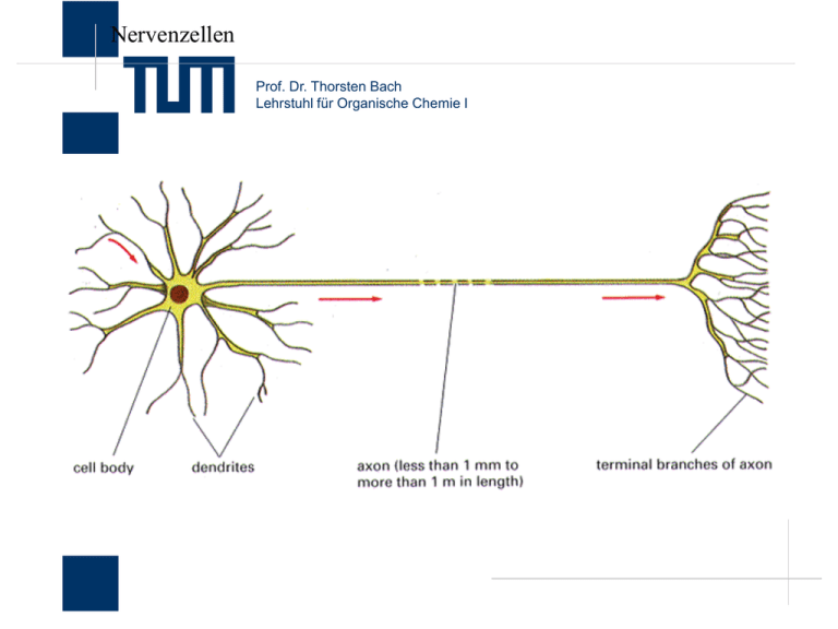 Nervenzellen Prof. Dr. Thorsten Bach Lehrstuhl für Organische Chemie I Acetylcholinesterasehemmer Signaltransduktion und Nervengifte Ruhepotential Spannungskontrollierter Na+-Kanal Das Aktionspotential Reizfortpflanzung Synapsen Synapsen Synapsen Schema der Struktur des Acetylcholinrezeptors Der Acetylcholinrezeptor Acetylcholinesterase O NMe3 H2O O NMe3 + O AChE HO OH ACh Ser-OH H2O O O NMe3 + O O O Ser Ser O NMe3 F3C O Ser TS-Analog: TMTFA Harel, M. J. Am.Chem. Soc. 1996, 118, 2340 NMe3 HO Phosphorsäureaktivester: Insektizide und Kampfgase LD50 [mg/kg] LD50 [mg/kg] NO2 OEt F OEt P P O O S Parathion Sarin 10 COOEt OMe P COOEt P 0,1 F OMe O S S O Malathion O CMe3 Soman 700 OMe 0,08 OEt OMe P O P O O CCl2 Dichlovos 70 NPr2 S VX 0,02 AChE und Phosphorsäureaktivester OR OH ´RO Ser + OR OR OR O P OH OR Ser P + RO OH P Ser O O O NOH N OH Ser N + N O RO OR P O AChE und Phosphorsäureaktivester F Ser + OH O O OH O O P P P Ser O _ O HO Ser O NOH N gealtertes Sarin-AChE Millard, C. B. Biochemistry 1996, 38, 7032 OH Ser N + N O O P O Das Aktionspotential