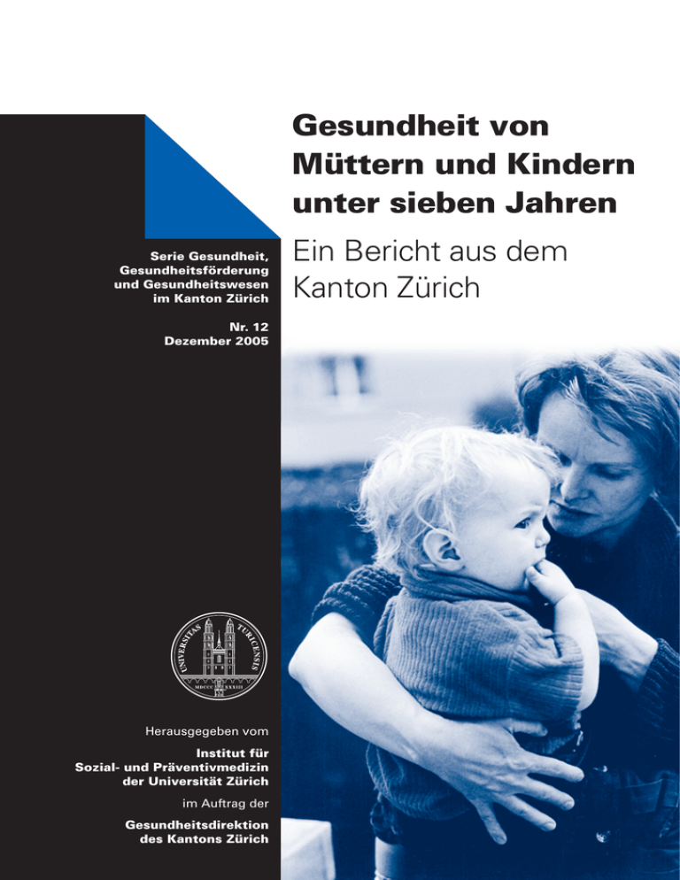 Gesundheit von Müttern und Kindern unter sieben Jahren Serie Gesundheit, Gesundheitsförderung und Gesundheitswesen im Kanton Zürich Nr. 12 Dezember 2005 Herausgegeben vom Institut für Sozial- und Präventivmedizin der Universität Zürich im Auftrag der Gesundheitsdirektion des Kantons Zürich Ein Bericht aus dem Kanton Zürich Gesundheit von Müttern und Kindern unter sieben Jahren Ein Bericht aus dem Kanton Zürich Redaktion Hans Wydler Alexandra Hardt In Zusammenarbeit mit dem Amt für Jugend und Berufsberatung, Bildungsdirektion Kanton Zürich Serie Gesundheit, Gesundheitsförderung und Gesundheitswesen im Kanton Zürich Nr. 12 Dezember 2005 Herausgegeben vom Institut für Sozial- und Präventivmedizin der Universität Zürich im Auftrag der Gesundheitsdirektion des Kantons Zürich Die Serie: Gesundheit, Gesundheitsförderung und Gesundheitswesen im Kanton Zürich Herausgegeben vom Institut für Sozial- und Präventivmedizin der Universität Zürich im Auftrag der Gesundheitsdirektion des Kantons Zürich. In der Serie «Gesundheit, Gesundheitsförderung und Gesundheitswesen im Kanton Zürich» werden Berichte veröffentlicht, welche einen Beitrag leisten zum Monitoring des Gesundheitszustandes der Zürcher Bevölkerung, zur Gesundheitsförderung und Prävention, zur Verbesserung der gesundheitlichen Versorgung oder zur Verbreitung epidemiologischen Wissens. Die Aussagen der Berichte müssen sich nicht notwendigerweise mit den Meinungen der Gesundheitsdirektion oder des Institutes decken. Die inhaltliche Verantwortung liegt ausschliesslich bei der Autorschaft. Bisher erschienen oder in Vorbereitung: Nr. 1: Suchtpräventionskonzept. 1991. iv + 81 Seiten. Fr. 14.–. Nr. 2: Sicherstellung der Suchtprävention in allen Regionen des Kantons Zürich. Regionale Suchtpräventionsstellen: Aufgaben, Koordination, Finanzierung. 1994. iv + 50 Seiten, 4 Tabellen. Fr. 8.–. Nr. 3: Gesundheit im Kanton Zürich. Bericht und Massnahmen. 1994. xxi + 118 Seiten, 107 Abbildungen, 16 Tabellen. Fr. 16.–. Nr. 4: Nicht erschienen. Nr. 5: Gesundheit im Kanton Zürich, Bericht und Massnahmen 1999. 1999. iv + 138 Seiten, 81 Abbildungen, 9 Tabellen. Fr. 18.–. Nr. 6: Soziale Ungleichheit und Gesundheit im Kanton Zürich. 1999. ii + 88 Seiten, 80 Abbildungen, 6 Tabellen. Fr. 12.–. Nr. 7: Die Gesundheit Jugendlicher im Kanton Zürich. 2002. iv + 93 Seiten, 33 Abbildungen, 15 Tabellen. Fr. 15.–. Nr. 8: Konzept für kantonsweit tätige Fachstellen für Suchtprävention. 1999. v + 57 Seiten, 5 Abbildungen, 5 Tabellen. Fr. 10.–. Nr. 9: Ökonomische Nutzen und Kosten populationsbezogener Prävention und Gesundheitsförderung. 2004. iv + 105 Seiten, 12 Abbildungen, 20 Tabellen. Fr. 19.–. Nr. 10: Arbeit und Gesundheit im Kanton Zürich. Befragungsergebnisse zu Arbeitsbedingungen, Work-Life Balance und Befindlichkeit. 2004. iv + 82 Seiten, 41 Abbildungen, 24 Tabellen. Fr. 18.–. Nr. 11: Konzept für Prävention und Gesundheitsförderung im Kanton Zürich. 2004. iv + 85 Seiten, 7 Abbildungen, 6 Tabellen. Fr. 18.–. Nr. 12: Gesundheit von Müttern und Kindern unter sieben Jahre. Ein Bericht aus dem Kanton Zürich. 2005. iv + 82 Seiten, 11 Abbildungen, 15 Tabellen. Fr. 18.–. Nr. 13: Gesundheit im Kanton Zürich 2000-2006. 2007. vi + 177 Seiten, 56 Abbildungen, 60 Tabellen. Gedruckte Version: Fr. 26.–; CD-Version (erlaubt Volltextsuche): Fr. 15.–; kombinierte Version (Buch und CD): Fr. 34.–. Nr. 14: Gesundheit im Alter. Ein Bericht aus dem Kanton Zürich. 2008. vi + 105 Seiten, 32 Abbildungen, 19 Tabellen. Fr. 19.–. Korrekte Zitierweise für diesen Bericht: Institut für Sozial- und Präventivmedizin der Universität Zürich (2005, Hrsg): Gesundheit von Müttern und Kindern unter sieben Jahren. Ein Bericht aus dem Kanton Zürich. Herausgeber / Bezugsquelle: Institut für Sozial- und Präventivmedizin der Universität Zürich Hirschengraben 84, 8001 Zürich Tel: 044 634 46 29, Fax: 044 634 49 77 [email protected] Umschlagfoto: Ursula Markus, © Ethno-Expo, Zürich © ISPM Zürich, 2005 ii Inhaltsverzeichnis Geleitwort – Felix Gutzwiller ....................................................................................................................... 1 Vorwort – Hans Wydler ................................................................................................................................3 Zusammenfassung – Hans Wydler ......................................................................................................... 5 1. Demographie und Lebensbedingungen von Familien .......................................................... 7 1.1 Haushaltsstrukturen und Lebendgeburten – Matthias Bopp .......................................................... 7 1.2 Arbeit und Familie – Einfluss von Erwerbsarbeit und Arbeitsbedingungen A. Doris Baumgartner ........................................................................................................................ 11 1.3 Die Bedeutung sozialer Unterstützung für die Gesundheit – Monica Budowski ......................... 15 1.4 Familiensituation und Sozialhilfeabhängigkeit – Robert Fluder ................................................... 19 2. Epidemiologie: Krankheit und Sterblichkeit ...........................................................................23 2.1 Säuglingssterblichkeit – Matthias Bopp ......................................................................................... 23 2.2 Gesundheit von Müttern und Kindern im Spiegel der Medizinischen Statistik der Krankenhäuser – Ueli Zellweger & Matthias Bopp ................................................................... 25 3. Gesundheit und Wohlbefinden von Frauen mit Kindern Hans Wydler & Ueli Zellweger ...........................................................................................................31 4. Angebote im Bereich der Gesundheits- und Sozialversorgung ......................................39 4.1 Angebote für Mütter w