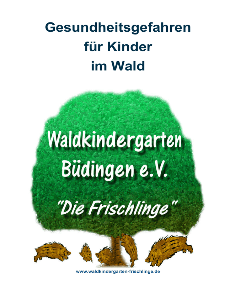 Gesundheitsgefahren für Kinder im Wald www.waldkindergarten-frischlinge.de Waldkindergarten Büdingen e.V. „Die Frischlinge“ Inhalt Vorwort Verletzungen Wunden Zusammenfassung Ausmaß Verschmutzung und Kontamination Wundversorgung Risiken Prophylaxe Geschlossene Verletzungen Zusammenfassung Beobachtung Behandlung Prophylaxe Vergiftungen Zusammenfassung Beispiele giftiger Pflanzen Erste Hilfe Prophylaxe 3 4 4 4 4 4 4 5 5 8 8 8 10 10 Tollwut 11 Tetanus - Wundstarrkrampf Zusammenfassung Definition Erreger Infektion Inkubationszeit Symptome Diagnose Therapie Letalität Prophylaxe Zecken Zusammenfassung Allgemeines Definition Ursachen Ausbreitung Häufigkeit Inkubationszeit Symptome Diagnose Therapie Komplikationen Letalität Prophylaxe Prognose 7 7 7 7 11 18 18 18 18 18 19 19 20 20 20 21 21 21 21 Lyme-Boreliose 22 Zusammenfassung Definition Entstehung Häufigkeit Symptome Diagnose Therapie Prophylaxe Prognose 11 11 11 11 11 11 12 12 12 22 22 22 22 22 23 24 24 24 Hunde- bzw. Fuchsbandwurm-Infektionen; Echinococcus-Infektionen 25 13 13 13 13 13 13 13 14 14 14 14 Zusammenfassung Allgemeines Erreger Infektionswege Inkubationszeit Verbreitung Beschwerden Diagnose Therapie Prognose Vorbeugung 15 Allgemeines Häufigkeit 15 15 15 16 16 Frühsommer Meningo-Enzephalitis (FSME) 18 7 Infektionen Zusammenfassung Erreger Infektion Verbreitung Inkubationszeit Symptome Diagnose Therapie Prophylaxe Symptome Zeckenentfernung Zecken als Krankheitsüberträger Prophylaxe Impfung 15 15 Waldkindergarten Büdingen e.V.: Klostergasse 4, Amtsgericht Büdingen VR 574 63654 Büdingen Vorsitzender: Reinhard Schaffert Internet: www.waldkindergarten-frischlinge.de [email protected] 2 25 25 25 26 26 26 26 27 27 27 27 Volksbank e. G. Büdingen: BLZ: 507 613 33 Kontonr.: 479802 Gesundheitsgefahren für Kinder im Wald Vorwort Unsere Waldkindergartenkinder sollen fast jeden Tag im Wald verbringen. Wald und Natur bergen jedoch besondere Gefahren, vor denen wir unsere Kinder schützen müssen. Ist das so? Ja und nein! In Wald und Natur gibt es einfach nur andere Gefahren für die Gesundheit, als in unserer zivilisierten Welt. Nur haben wir uns an die Gefahren der Zivilisation gewöhnt: Wir wissen, dass auf einer Straße ein Auto kommen kann. Deshalb halten wir die Kinder davon ab, die Straße abseits einer Ampel oder eines Zebrastreifens zu überqueren. Die Gefahren der Natur haben wir jedoch inzwischen vielfach vergessen und dadurch erscheinen sie umso bedrohlicher. Manchmal entsteht fast der Eindruck, die durch Zecken übertragene Hirnhautentzündung FSME mit 100 bis 300 Neuerkrankungen pro Jahr scheint für manche eine größere Gesundheitsgefahr zu sein, als beispielsweise der Straßenverkehr mit ca. 500.000 Verletzten, davon ca. 42.500 Kindern und 7.000 Getöteten, davon 230 Kindern. Aber manche Gesundheitsrisiken sind natürlich im Wald größer, als in einem Kindergartengebäude. Zweifellos besteht ein erhöhtes Verletzungsrisiko, denn der Wald ist weitläufiger als ein Kindergartenspielplatz, eine lückenlose Beaufsichtigung daher schwieriger. Der „Spielplatz“ Wald wurde auch nicht vom TÜV geprüft und die Gefahr, dass ein Ast abbricht, auf dem ein Kind gerade steht, ist nicht auszuschließen. Ohne Frage gibt es im Wald mehr giftige Pilze und andere Pflanzen, die Kinder einfach mal essen könnten und selbstverständlich besteht ein gewisses Risiko einer durch Zecken übertragenen Infektion oder Erkrankung am Fuchsbandwurm. Diese Gefahren sollen im Folgenden kurz dargestellt und über Möglichkeiten der Vorbeugung und der Behandlung informiert werden. Einige Beiträge wurden selbst verfasst, andere waren bereits in sehr schöner Weise im Internet veröffentlicht und werden hier zitiert. Nur kurz möchte ich noch darauf eingehen, dass durch den Aufenthalt im Freien auch bei Regen und Kälte die Kinder Anfangs vermehrt Allgemeininfektionen wie Erkältungen oder auch Durchfallerkrankungen haben können. Dies lässt dies jedoch im Verlauf nach und die Kinder werden gegen solche Infektionen resistenter. Dagegen sind epidemieartige Erkrankungswellen, wie sie in anderen Kindergärten aufgrund des engen Beisammenseins in geschlossenen Räumen und der gemeinsamen Nutzung verschiedener Gegenstände und Einrichtungen vorkommen, im Wald normalerweise seltener. Ich wünsche eine interessante und nützliche Lektüre. Für weitere Informationen stehe ich gerne zur Verfügung. Reinhard Schaffert Vorstandsmitglied Facharzt für Chirurgie 3 Verletzungen Wunden Zusammenfassung Wunden sind eine Verletzung der Körperoberfläche. Diese können oberflächlich bleiben (Kratzer) und nur die Haut betreffen, jedoch auch sehr tief oder umfangreich sein und erheblich Gewebe zerstören. Bei jeder Wunde gibt es drei Kriterien, die Einfluss auf die Wundheilung und damit das Endergebnis haben und die miteinander in Zusammenhang stehen. Dies sind: Das Ausmaß der Wunde, die Verschmutzung bzw. insbesondere die Kontamination der Wunde mit Erregern und die Dauer bis zur angemessenen Wundversorgung. Natürlich neigt eine große Wunde eher zur Kontamination und damit zur Infektion, ebenso wie eine Wunde, die längere Zeit nicht angemessen versorgt ist. Daher ist es wichtig, bei der Erstbehandlung von Wunden zunächst das Ausmaß richtig einzuschätzen, die Wunde, wenn möglich, zu reinigen und eine weitere Kontamination zu vermeiden sowie ggf. eine angemessene Wundversorgung durchzuführen bzw. zu veranlassen. Ausmaß Nicht in jedem Fall ist das Ausmaß einer Wunde auf Anhieb richtig einzuschätzen. Manche Wunden werden überschätzt, weil sie beispielsweise stark bluten, wenn eine oberflächliche kleine Vene verletzt wurde obwohl es sich „nur“ um einen tieferen Kratzer handelt. Oft wird jedoch das Ausmaß unterschätzt. Insbesondere Stich- und Quetschverletzungen können auf den ersten Blick kaum eingeschätzt werden. Stichverletzungen können bei kleiner Oberflächenwunde sehr tiefgehend sein und wichtige Strukturen verletzen. Bei Quetschverl
