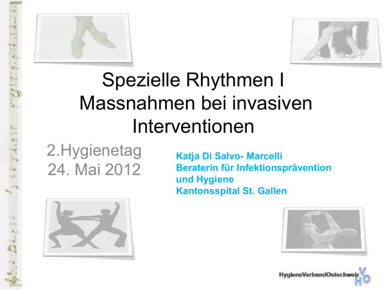 Spezielle Rhythmen I Massnahmen bei invasiven Interventionen 2.Hygienetag 24. Mai 2012 Katja Di Salvo- Marcelli Beraterin für Infektionsprävention und Hygiene Kantonsspital St. Gallen Inhalte Therapieassoziierte Infektionen Blasenkatheter Injektionen und Punktionen Absaugen von Atemwegsekreten 2. Hygienetag, 24. Mai 2012 Katja Di Salvo, Kantonsspital St. Gallen 2. Hygienetag, 24. Mai 2012 Katja Di Salvo, Kantonsspital St. Gallen Infektionen Für betagte Menschen sind Infektionen ein erheblicher Risikofaktor: für eine erhöhte Morbidität und zum Teil auch Mortalität! 2. Hygienetag, 24. Mai 2012 Katja Di Salvo, Kantonsspital St. Gallen Infektionen, die einem Zusammenhang mit der Behandlung oder Unterbringung dieser Menschen stehen, nennt man: Healthcare Associated Infection (HCAI) (Übersetzung: Therapieassoziierte Infektionen/im Zusammenhang mit dem „Gesundheitswesen“ erworbene Infektionen) 2. Hygienetag, 24. Mai 2012 Katja Di Salvo, Kantonsspital St. Gallen Wie häufig sind HCAI Häufigkeit Art der Infektionen 6496 Bewohner in Studie eingeschlossen 117 Bewohner mit Infekt (Prävalenz 1,6%) Europäische Prävalenzstudie HALT 2010 (Healthcare-associated infections in long-term care facilities) 2. Hygienetag, 24. Mai 2012 Katja Di Salvo, Kantonsspital St. Gallen Risikofaktoren für HCAI Hohes Alter Immunsuppression Immobilität Funktionelle Störungen Schluckstörungen Blasenentleerungsstörung Multimorbidität, chronische Erkrankungen Chronische Hautläsionen 2. Hygienetag, 24. Mai 2012 Katja Di Salvo, Kantonsspital St. Gallen Institutionsbezogene Risikofaktoren für HCAI Invasive Massnahmen Blasenkatheter Trachealkanülen Ernährungssonden Häufige Spitalaufenthalte 2. Hygienetag, 24. Mai 2012 Katja Di Salvo, Kantonsspital St. Gallen Quellen Wichtigste Quellen für Infektionen Haut/Schleimhaut des Patienten/ Bewohners/Klient/s Personal 2. Hygienetag, 24. Mai 2012 Katja Di Salvo, Kantonsspital St. Gallen www.rki.de/ 2005 2. Hygienetag, 24. Mai 2012 Katja Di Salvo, Kantonsspital St. Gallen Harnwegsinfektionen Cystofix DK 2. Hygienetag, 24. Mai 2012 Katja Di Salvo, Kantonsspital St. Gallen Problem Alle Dauerkatheter werden besiedelt ! Bakteriurie: bei Kathetereinlage: 1-10% Katheter > 30 Tage: bis 100% Besiedlung heisst nicht Infektion! Klinik: Schmerzen, Harndrang, Blut im Urin Fieber ohne andere Quelle Therapie: Antibiotika nur bei Symptomen Infektsanierung meist nur nach Katheterentfernung möglich! 2. Hygienetag, 24. Mai 2012 Katja Di Salvo, Kantonsspital St. Gallen Wichtigste Massnahmen Katheter nur wenn nötig Regelmässig Indikation überprüfen Händedesinfektion Asepsis bei der Einlage Geeignetes Material Pflege Fixierung 2. Hygienetag, 24. Mai 2012 Katja Di Salvo, Kantonsspital St. Gallen Wichtiges bei der Einlage Händedesinfektion 2 Personen Methode oder mit steriler Pinzette arbeiten Gleitmittel bei Männern und auch Frauen Steriles Material benutzen 2. Hygienetag, 24. Mai 2012 Katja Di Salvo, Kantonsspital St. Gallen Kathetermaterial Kurzzeitdrainage ≤5 Tage Latexkatheter 2. Hygienetag, 24. Mai 2012 Längerfristige Blasendrainagen Vollsilikonkatheter Katja Di Salvo, Kantonsspital St. Gallen Pflege Ein- bis zweimal täglich Intimtoilette Wasser und ph-neutraler Waschlotion kein Einsatz von antiseptischen Substanzen Verkrustungen am Ausgang der Harnröhre entfernen Kein Routinemässiger Katheterwechsel 2. Hygienetag, 24. Mai 2012 Katja Di Salvo, Kantonsspital St. Gallen Katheterfixierung Katheter direkt am Bein fixieren Sack bei mobilen Menschen am Bein fixieren Bei liegenden Bewohnern am Bett 2. Hygienetag, 24. Mai 2012 Katja Di Salvo, Kantonsspital St. Gallen Wenn der Katheter diskonnektiert Katheterpavillon und Anschlussstopfen von Beutel mit alkoholischem Präparat desinfizieren allenfalls Beutel wechseln 2. Hygienetag, 24. Mai 2012 Katja Di Salvo, Kantonsspital St. Gallen Blasenkatheter mit Ventil Adapter und Schutzkappe in einem Becher in Alkohol 70% einlegen 2. Hygienetag, 24. Mai 2012 Katja Di Salvo, Kantonsspital St. Gallen Blasenkatheter mit Ventil Urinbeutel staubgeschützt aufbewahren 1x wöchentlich wechseln Adapter 1x wöchentlich wechseln 2. Hygienetag, 24. Mai 2012 Katja Di Salvo, Kantonsspital St. Gallen Suprapubische Katheter (Cystofix) Einfache Pflege der Eintrittsstelle Vermeidung von Urethrastrikturen Spontanmiktion möglich Mikrobielle Kolonisierung des Urins in den ersten Tagen signifikant niedriger als beim transurethralen Katheter Katheter wechsel: zwischen 6-16 Wochen 2. Hygienetag, 24. Mai 2012 Katja Di Salvo, Kantonsspital St. Gallen Injektionen und Punktionen 2. Hygienetag, 24. Mai 2012 Katja Di Salvo, Kantonsspital St. Gallen Problem Lokale Infektion/Phlebitis Bakteriämie/Endokarditis Septische Streuung 2. Hygienetag, 24. Mai 2012 Katja Di Salvo, Kantonsspital St. Gallen Wichtigste Massnahmen Vermeiden von unnötigen Punktionen Infusion: Indikation Einlage prüfen, Entfernung regelmässig evaluieren Händedesinfektion Asepsis bei der Einlage Pflege 2. Hygienetag, 24. Mai 2012 Katja Di Salvo, Kantonsspital St. Gallen Risikogruppe 1 Einfacher Punktionsverlauf Geringes Risiko der Infektion Risikogruppe 2 Einfacher Punktionsverlauf Risikogruppe 3 Punktion Organe/ Hohlräume geringes Risiko, selten schwerwiegende Infektionsfolgen bei Ablage von sterilem Punktionszubehör Komlexer Punktionsverlauf + zwischenzeitlicher Ablage von sterilem Punktionszubehör unabhängig vom Assistenzpersonal 2. Hygienetag, 24. Mai 2012 Katja Di Salvo, Kantonsspital St. Gallen Wichtigstes bei der Durchführung Händedesinfektion Hautdesinfektion Einwirkzeit Trägermedium Technik 2. Hygienetag, 24. Mai 2012 Katja Di Salvo, Kantonsspital St. Gallen Hautdesinfektion/ Einwirkzeiten Alkoholische Antiseptika intakte Haut Einwirkzeit BE/Injektion: 15 s Gelenkspunktion: 60 s Wässrige Aniseptika nicht intakte Haut, Schleimhaut Einwirkzeit 60 s 2. Hygienetag, 24. Mai 2012 Katja Di Salvo, Kantonsspital St. Gallen Haut- Schleimhaut Desinfektion Periphere Gefässe (z.B. Bluten