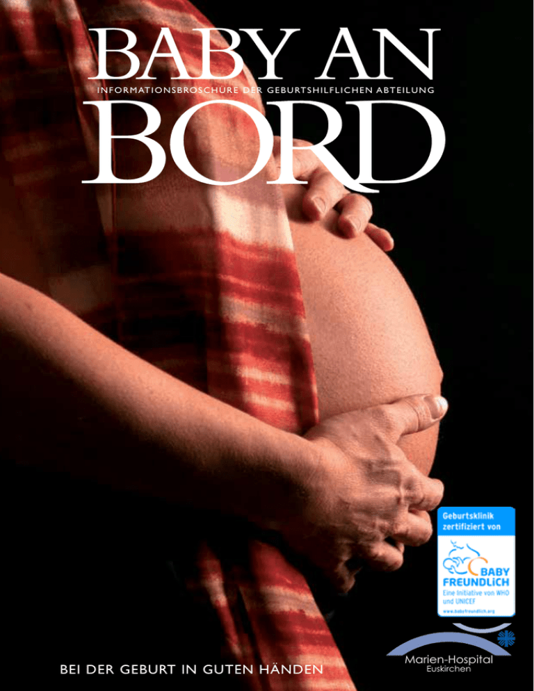 BABY AN BO D I N F O R M AT I O N S B RO S C H Ü R E D E R G E B U RT S H I L F L I C H E N A B T E I L U N G BEI DER GEBURT IN GUTEN HÄNDEN Marien-Hospital Euskirchen BRIEF EINES NEUGEBORENEN AN SEINE ELTERN 5 Hebammensprechstunde6 Kreißsaalführung 6 Die Geburt 7 Erleichterung der Geburtsschmerzen 7 Überwachung der Geburt 8 Geburtspositionen8 Liebe Schwangere, liebe werdende Eltern, mit dieser Broschüre möchten wir Sie über unsere Geburtshilfliche Abteilung informieren. Sicherlich machen Sie sich viele Gedanken in der Vorbereitung auf die Geburt Ihres Kindes. Wir hoffen, Ihnen einen Teil Ihrer Fragen, die sich hierbei ergeben, beantworten zu können und Ihre Ängste und Sorgen, die hiermit oftmals verbunden sind, zu verringern. Wir würden uns freuen, Sie bei uns begrüßen zu dürfen. Ihr Dr. med. N. Golz Chefarzt der Gynäkologie und Geburtshilfe des Marien-Hospital Euskirchen NACH DER GEBURT Auf der Wochenbettstation Kinderarzt Wochenbettbetreuung Wochenbettgymnastik Essen und Diätberatung Bindungs-, Entwicklungs- und Stillförderungs-Richtlinien 10 12 12 12 13 14 KURSANGEBOTE DER ELTERNSCHULE Geburtsvorbereitungskurs mit Wassergymnastik Geburtsvorbereitungs-Crash-Kurs Stillvorbereitungskurs Still-Café Babymassage Rückbildungsgymnastikkurs Stillambulanz Babygymnastik Babyschwimmen Feldenkrais Methode Yoga für Schwangere Yoga für Frauen 16 16 17 17 18 18 18 19 19 19 20 20 Anhang Stillempfehlungen für Säuglinge Gewinnung von Muttermilch Beikostempfehlungen Anleitung zur Benutzung des Bondingsäckchens Kursangebote außerhalb unseres Hauses 21 22 25 29 30 So erreichen sie uns 33 DIE GEBURT DIE GEBURT 4 Brief eines Neugeborenen an seine Eltern Liebe Eltern, Ich komme zu euch als ein kleines, unreifes Wesen mit der mir ganz eigenen Persönlichkeit. Nehmt euch Zeit herauszufinden, wer ich bin, wie ich mich von euch unterscheide und was ich euch geben kann. Bitte gebt mir Nahrung, wenn ich hungrig bin. In deinem Bauch, Mama, habe ich keinen Hunger gekannt und Zeit und Uhr sind mir noch fremd. Bitte haltet mich nah an eurem Körper, liebkost mich, streichelt mich, küsst mich, erzählt mir. In deinem Bauch, Mama, fühlte ich mich auch immer getragen und ganz nah bei dir. Ich war nie allein. Ich hoffe, ihr seid nicht zu enttäuscht, wenn ich nicht das perfekte Baby eurer Träume und Hoffnungen bin. Seid auch nachgiebig und großzügig mit euch selbst, wenn ihr nicht die perfekten Eltern seid, die ihr so gern wäret. Erwartet nicht zuviel von mir neugeborenem Baby und erwartet auch nicht zuviel von euch selbst als Eltern. Gebt uns allen sechs Wochen – sozusagen als Geburtstagsgeschenk. Sechs Wochen für mich, damit ich reifen kann, mich stabilisiere und meinen Rhythmus finde und sechs Wochen für euch, wieder allmählich zu euch zu kommen und mich in euer Leben zu integrieren. Bitte vergebt mir, wenn ich viel weine. Habt Geduld mit mir, mit der Zeit werden ich immer weniger weinen und euch mit meiner Gesellschaft erfreuen. Achtet gut auf mich – schaut mir aufmerksam zu, denn ich kann euch auch ohne Worte sagen, was ich brauche, wie ihr mich trösten könnt und was mich zufrieden macht. Ich bin wirklich kein Tyrann, der zu euch gekommen ist, um euch das Leben zu vermiesen. Aber der einzige Weg, wie ich euch momentan zu verstehen geben kann, dass mir etwas fehlt, ist das Weinen. Bitte denkt daran, dass ich ganz schön zäh und widerstandsfähig bin. Ich kann schon viele Fehler aushalten, die ihr anfangs aufgrund eurer Unerfahrenheit natürlicherweise machen werdet. Solange ihr mich lieb habt, kann eigentlich nichts schief gehen. Bitte achtet auf euch. Seht zu, dass ihr euch ausgewogen ernährt und genügend Ruhe und Bewegung bekommt, damit ihr euch in den Zeiten, in denen wir zusammen sind, gesund und kräftig fühlt. Versucht zwischen „unwichtig“ und „wichtig“ zu unterscheiden, seht die Dinge etwas gelassener – dann könnt ihr mich viel besser genießen. Und bitte – hegt und pflegt auch eure Beziehung zueinander – weil diese mein Nährboden ist und mir zeigt, wie man Menschen lieben kann. Wenn ich auch momentan euer Leben ein bisschen durcheinander gebracht habe, so denkt daran, dass dies nur vorübergehend ist. Ich danke euch, euer Kind (Verfasser unbekannt) 5 DIE GEBURT VOR DER GEBURT 6 HEBAMMENSPRECHSTUNDE In unserer wöchentlich stattfindenden Hebammensprechstunde haben Sie die Möglichkeit, unsere Hebammen kennen zu lernen und von Ihnen Informationen und Beratung zur Schwangerschaft, Geburt und Wochenbett zu bekommen. Die Hebammensprechstunde bietet Ihnen die Gelegenheit sich zur Geburt anzumelden. Eine Anmeldung zur Geburt ist nicht erforderlich, aber durchaus sinnvoll, da dabei schriftliche Formalitäten soweit wie möglich vorbereitet werden können und nicht erst während bereits bestehenden Wehen durchgeführt werden müssen. Zudem bieten wir Ihnen im Rahmen der Hebammensprechstunde ab der 36.Schwangerschaftswoche kostenlose geburtsvorbereitende Akupunktur an. Sie hat das Ziel die Eröffnungsperiode zu verkürzen und findet einmal wöchentlich bis zu Geburt statt. Akupunktur kann Ihnen in der Schwangerschaft übrigens auch bei Übelkeit und Erbrechen, Schlafstörungen, Schmerzen oder Beckenendlagewendung helfen. Anmeldung: Tel.: 02251/901245 Gebühr: kostenlos Ort: Kreißsaal, 1. Etage Zeitpunkt: Donnerstag vormittag, nach Terminvereinbarung Leitung: Hebamme, ausgebildet in Akupunktur KREIßSAALFÜHRUNG Wir laden Sie herzlich ein, sich über uns und unsere Geburtshilfliche Abteilung vorab zu informieren. Im Rahmen der Kreißsaalführung haben Sie die Möglichkeit die Räumlichkeiten sowie unser Konzept kennen zu lernen. Während eines ausführlichen und offenen Gesprächs werden Ihnen von unserem Chefarzt oder einer unserer Oberärztinnen der normale Geburtsverlauf, die Möglichkeiten der Entbindungsarten sowie der gesamte Kreißsaal – Aufenthalt erklärt. Ein Anästhesist gibt Ihnen Informationen zum Thema Periduralanästhesie (PDA) unter der Geburt