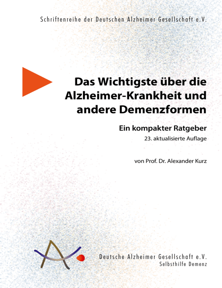 S c h r i f t e n r e i h e d e r D e u t s c h e n A l z h e i m e r G e s e l l s c h a f t e . V . Das Wichtigste über die Alzheimer-Krankheit und andere Demenzformen Ein kompakter Ratgeber 23. aktualisierte Auflage von Prof. Dr. Alexander Kurz D e u t s c h e A l z h e i m e r G e s e l l s c h a f t e . V . Selbsthilfe Demenz Zu diesem Ratgeber Bei der Bewältigung der Alzheimer-Krankheit und anderer Formen der Demenz müssen viele Personen zusammenwirken: der Patient selbst, seine Angehörigen, Freunde und Bekannte, der Hausarzt und spezialisierte Ärzte, oft auch die Mitarbeiter von Beratungsstellen, Tagesstätten und Pflege­einrichtungen. Sie alle brauchen Informationen über die Krankheit. Das Wichtigste über Demenzerkrankungen zu vermitteln, ist das Ziel des vorliegenden kompakten Ratgebers, den Ihnen die Deutsche Alzheimer Gesellschaft gerne überreicht. Der Ratgeber wurde verfasst von Prof. Dr. Alexander Kurz, Klinik für Psychiatrie und Psychotherapie, Technische Universität München. Deutsche Alzheimer Gesellschaft Selbsthilfe Demenz Die Deutsche Alzheimer Gesellschaft, Mitglied von Alzheimer Europe und Alzheimer’s Disease International, ist der Dachverband der AlzheimerGesellschaften in Deutschland. Sie wurde 1989 gegründet. Ihre wichtigsten Ziele sind: •• •• •• •• •• •• Information der Öffentlichkeit Anregung gesundheitspolitischer Initiativen Entlastung von Angehörigen Förderung regionaler Alzheimer Gesellschaften Unterstützung der Forschung Weiterentwicklung von Versorgung und Pflege © Juni 2013 Deutsche Alzheimer Gesellschaft e. V., Berlin 23. aktualisierte Auflage Druck: Meta Druck, Berlin Gestaltung: Andrea Böhm, Moosburg Alle Rechte vorbehalten Schriftenreihe der Deutschen Alzheimer Gesellschaft e. V. ISSN 1432-7090 2 Inhalt 1 Demenz: Was ist das ?. . . . . . . . . . . . . . . . . . . . . . . . . . . . . . . . . . . . . . . . . . 5 2 Alzheimer-Krankheit: Was geschieht im Gehirn ?. . . . . . . . . . . . . . . . 6 3 4 Welche Ursachen und Risiko­faktoren der Alzheimer-Krankheit sind bekannt ?. . . . . . . . . . . . . . . . . . . . . . . . . . . . 7 Welche Symptome und Stadien hat die Alzheimer-Krankheit ?. . . . . . . . . . . . . . . . . . . . . . . . . . . . . . . . . . . . . . . . . 9 5 Welche anderen Formen der Demenz gibt es ? . . . . . . . . . . . . . . . . 12 6 Wie wird die Diagnose gestellt ?. . . . . . . . . . . . . . . . . . . . . . . . . . . . . . 16 7 Sollen Menschen mit Demenz ihre Diagnose erfahren ?. . . . . . . . 20 8 Welche Entscheidungen müssen nach der Diagnose getroffen werden ?. . . . . . . . . . . . . . . . . . . . . . . . . . . . . . . . . . . . . . . . . . . 20 9 Welche Behandlungsmöglichkeiten hat der Arzt ?. . . . . . . . . . . . . 21 10 Gibt es eine Vorbeugung gegen Demenz ?. . . . . . . . . . . . . . . . . . . . 25 11 Was können Angehörige für Demenzkranke tun ? . . . . . . . . . . . . . 26 12 Welche Hilfen gibt es für pflegende Angehörige ? . . . . . . . . . . . . . 29 13 Welche rechtlichen Fragen können auftreten ? . . . . . . . . . . . . . . . . 32 14 Wie bekommt man finanzielle Unterstützung ?. . . . . . . . . . . . . . . . 33 15 16 17 Mitgliedsgesellschaften der Deutschen Alzheimer Gesellschaft. . . . . . . . . . . . . . . . . . . . . . . . . . . . 34 Informationsschriften der Deutschen Alzheimer Gesellschaft. . . . . . . . . . . . . . . . . . . . . . . . . . . . 44 Stichwortverzeichnis. . . . . . . . . . . . . . . . . . . . . . . . . . . . . . . . . . . . . . . . . 45 3 1 Demenz: Was ist das? Als „Demenz“ bezeichnet man in der Medizin einen anhaltenden oder fortschreitenden Zustand herabgesetzter Fähigkeiten in den Bereichen des Gedächtnisses, des Denkens und anderer höherer Leistungen des Gehirns. Dieser muss eine Minderung im Vergleich zum früheren individuellen Niveau darstellen und zu einer Beeinträchtigung bei gewohnten Alltagsaufgaben führen. Eine Trübung des Bewusstseins, die für akute Verwirrtheitszustände charakteristisch ist, darf nicht vorliegen. Gewöhnlich kommt es auch zu Veränderungen des zwischenmenschlichen Verhaltens und des Antriebs. Bei einigen Formen der Demenz stehen diese sogar im Vordergrund des klinischen Bildes. Die Demenz ist ein Muster von Symptomen, das eine unterschiedliche Gestalt und Ausprägung haben kann. Der Begriff bezieht sich weder auf eine bestimmte Krankheit noch ausschließlich auf schwere Formen des intellektuellen Abbaus. Der medizinische Sprachgebrauch unterscheidet sich dadurch erheblich von der wörtlichen Bedeutung des aus dem Lateinischen stammenden Ausdrucks („Fehlen des Verstandes“). Die Demenz ist ein Muster von Symptomen, das eine unterschiedliche Gestalt und Ausprägung haben kann. Die Demenz geht über eine reine Gedächtnisstörung hinaus, weil neben der Fähigkeit zur Speicherung und zum Abruf von Information weitere Hirnfunktionen betroffen sind, z. B. Orientierung und Sprache. Die Demenz unterscheidet sich auch von einem akuten Verwirrtheitszustand (Delir), weil sie in der Regel einen chronischen Verlauf hat und das Bewusstsein nicht beeinträchtigt. Die Demenz ist keine reine Gedächtnisstörung und kein Verwirrtheitszustand. Die Häufigkeit von Demenzzuständen in der Bevölkerung steigt mit dem Alter steil an. Von den 60-Jährigen ist nur jeder Hundertste betroffen, von den 80-Jährigen jeder Zehnte, und von den 90-Jährigen und älteren jeder Dritte. Gegenwärtig rechnet man in Deutschland mit 1,4 Millionen Erkrankungen, von denen etwa zwei Drittel durch die Alzheimer-Krankheit bedingt sind; jedes Jahr kommen 300.000 neue Fälle hinzu. Da die Zahl der alten Menschen weiterhin zunehmen wird, ist bis zum Jahr 2050 mindestens mit einer Verdoppelung der Krankheitsfälle zu rechnen. Die Häufigkeit ist altersabhängig. Rund 80 % aller Demenzzustände werden durch Krankheiten des Gehirns hervorgerufen, bei denen aus teilweise noch unbekannten Gründen zahlreiche Nervenzellen und Nervenzellverbindungen allmählich zu G
