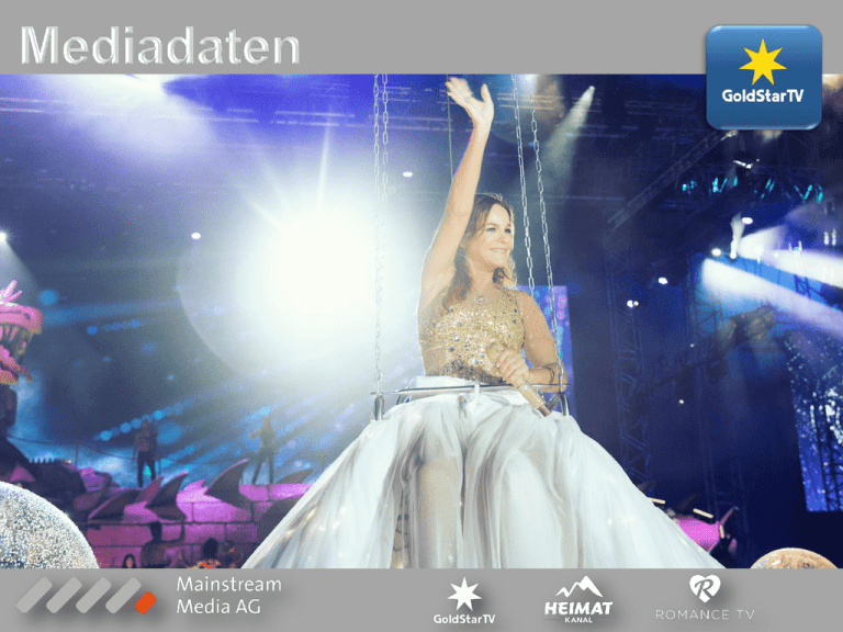 Key Facts 3 Programm und Zielgruppe 4 Fernsehen: Medium Nr. 1 5 Programmmarken 6 Moderatoren 7 Technische Reichweite und Distribution 8 Marktanteil 9 Tagesnettoreichweite Werbung 10 11-13 AGB 14 Unternehmen & Kontakt 15 2 Programm Wachstumsmarkt Pay-TV Seit März 2000 Deutschlands etablierter Musiksender für Schlager und internationale Unterhaltungsmusik: Alle großen Stars & ihre Hits hautnah erleben Aktuelle Videoclips & Eigenproduktionen Exklusive Konzerte & Interviews Prominente Moderatoren Pay-TV ist DIE wachstumsstarke Säule und Treiber im deutschsprachigen Fernsehmarkt, Impulsgeber für technische Innovationen und Synonym für qualitativ hochwertiges Entertainment. Zielgruppe 30+, im Kern die Altersgruppe 40+ 82 % der Zuschauer gehören zur werberelevanten Zielgruppe 20-59 In 2015 sind die Pay-TV- & Paid-Video-On-DemandUmsätze gegenüber dem Vorjahr in Deutschland um 12 Prozent auf 2,49 Milliarden Euro angestiegen, im gesamten deutschsprachigen Raum – D A CH - auf rund 2,7 Milliarden Euro. Pay-TV Haushalte in Deutschland Angaben in Mio. 10 Distribution 8 6 4,18 Mio. Empfangshaushalte (Stand 01/2017) 24h Abo-TV-Sender in D + A Exklusiv bei: 4,2 4,8 5,4 6 6,4 6,9 7,4 7,9 8,4 8,7 4 2 0 2009 2010 2011 2012 2013 2014 2015 2016 2017 2018 Quelle: PWC 2014 3 Programm GoldStar TV Abonnenten Exklusive Live-Konzerte, packende BackstageReports, bewegende Homestories und das Beste was der Schlager zu bieten hat – all das gibt es nur bei GoldStar TV, denn hier sind die Stars zu Hause. Seit 16 Jahren präsentiert der Schlagersender frisch und modern eines der wandlungsfähigsten Musikgenres mit kultverdächtigen Hits der 1960er und 70er Jahre, Glanzlichtern der Neuen Deutschen Welle und den Stars und Hits von heute. Musik steht hier an vorderster Stelle. Mit Titeln aus den Bereichen deutschsprachiger Schlager, Oldies, Evergreens, nationaler und internationaler Pop sowie Country nehmen Musikvideos einen Großteil des Programms ein. GoldStar TV hat sich mit seiner musikalischen Positionierung als Leitmedium etabliert und bietet als Service- und Promotionsender den Künstlern dieser Programmsparte ein einzigartiges Forum. beziehen ein hohes Haushalts-Nettoeinkommen bilden einen hohen Anteil an Vollbeschäftigten ab sind konsumorientiert und qualitätsbewusst besitzen eine überdurchschnittliche Haushaltsausstattung Altersstruktur unserer Zuschauer 4 # 60+ Jahre 37 20-59 Jahre 59 3-19 Jahre Quelle: AGF/adflocks, Januar 2016 – Januar 2017 4 Der TV- und Bewegtbildmarkt boomt weltweit und über alle Plattformen und Erlösmodelle hinweg. Das gilt auch für Deutschland, dem gemessen am Umsatzvolumen zweitgrößten Fernsehmarkt der Welt. Wir verzeichnen hierzulande ein Wachstum in allen TV-Segmenten und beobachten weiterhin eine besonders dynamische Entwicklung im Pay-TV. Fernsehen ist Medium Nr. 1 ! Ø tägliche Fernsehdauer in Minuten 350 2016 311 300 250 200 Medienreichweite täglich 2015 Fernsehen Radio Internet 223 206 171 Zeitung Bücher 150 Games 100 Zeitschriften 50 Blu-Ray & DVD 0 Zuschauer 14-49 Jahre30-49 Jahre ab 50 Jahre gesamt Quelle: Mo-So 3.00 Uhr bis 3.00 Uhr (Fernsehpanel D+EU); AGF in Zusammenarbeit mit GfK, TV Scope, 01.01.2015-31.12.2015 Online Videos… 0 % 20 40 60 80 Quelle: Werte in Prozent, ab 14 Jahren SevenOne Media/ forsa 2015 5 GoldStar TV Spezial Donnerstag, 20 :15 Uhr Hitcocktail Wunschkonzert Sonntag, 11, 15 und 20:15 Uhr, saisonal Hitcocktail SuperGoldies Freitag, 21 Uhr Goldies täglich 12, 16 und 21 Uhr Höchstpersönlich täglich 10, 16, 20 Uhr Schlager & Co Extra Samstag, 18 Uhr, 14-tägig Schlager & Co Country Club Samstag, 19 Uhr täglich 10 und 18 Uhr 7 Alexander-Klaus Stecher Michael Holm Sarah Valentina Winkhaus Frederic Meisner Sonja Weissensteiner 8 Kontinuierliche Reichweitensteigerung: Über 4,18 Mio. Empfangshaushalte mit ca. 10,45 Mio. Personen in Deutschland und Österreich (Stand 01/2017) Als 24h-Abo-TV-Sender via Kabel und Satellit in den beiden Basispaketen „Starter“ und „Entertainment“ exklusiv bei Zusätzliche Verbreitung über das Programmangebot in Sky Sportsbars Technische Reichweitenentwicklung Anzahl Haushalte in Mio. 4,5 4,18 Mio. 4 3,5 3 2,5 2 1,5 1 0,5 0 Quelle: Mainstream Media AG 01/2017 9 Starke Zuschauermarktanteile in deutschen Pay-TV Haushalten GoldStar TV ist der meistgesehene Musiksender! Grafik: VPRT Quelle: AGF in Zusammenarbeit mit GfK, TV Scope, 01.01.2014-30.06.2016, Werte in Prozent 3+, nur in Plattformhaushalten in D. 10 Pay-TV-Seher in Deutschland Steigendes Zuschauerinteresse erhöht die Pay-TV-Nutzung Grafik: VPRT Quelle: AGF in Zusammenarbeit mit GfK, TV Scope 6.1, 01.01.2014-30.06.2016, KFA, 0/1 Verfahren, 1 min konsekutiv 10 GoldStar TV mit treuer Fangemeinde! 338,1 286,3 280,4 218,1 177,8 173,5 160,8 166,2 148,9 141,2 187,8 147,3 130,3 140,9 163,2 135,3 116,1 80,4 92,8 69,0 58,8 82,7 87,5 90,2 96,2 65,5 E3+ 20-59 Alle Angaben monatliche Tagesdurchschnitte in 1.000 Zuschauer Quelle: AGF / adflocks. ZG 20-59 Februar 2016 – Februar 2017 11 Werbewirkung im Pay-TV Aufmerksamkeitsstarkes Werbeumfeld: Zielgruppengenaue Ansprache durch eine klar definierte Senderpositionierung Exklusive Platzierung durch Eingrenzung auf maximal 2 Minuten / max. 3 Spots pro Werbeblock Keine Unterbrecherwerbung: Platzierung der Werbeblöcke vor und nach dem Programm Werbung im Pay-TV wirkt aufgrund stärkerer Werbewahrnehmung und hoher Markenaffinität der Pay-TVZuschauer sowie exklusiver Werbeplätze nachhaltiger als im Free-TV ! Quelle: pilot Hamburg GmbH & Co. KG, 02/2014 Spotpreise Basis 30 Sekunden * Werbeblocklänge & Wirkung: 61% Kurz (3min.) Mittel (5min.) Lang (8min.) 42% 49% 30% 42% gestützte Werbeerinnerung spontane Werbeerinnerung 23% Quelle: IP Deutschland, Wirkung von Werbeblocklängen 2011 / Basis: alle Befragten, n=1352. Frage: „An welche Marken bzw. Produkte die Sie gerade in der Sendungen gesehen haben, können Sie sich denn erinnern?“ * Nettopreise zzgl. Gesetzliche MwSt. . Bei einer Spotlänge von <20 Sek
