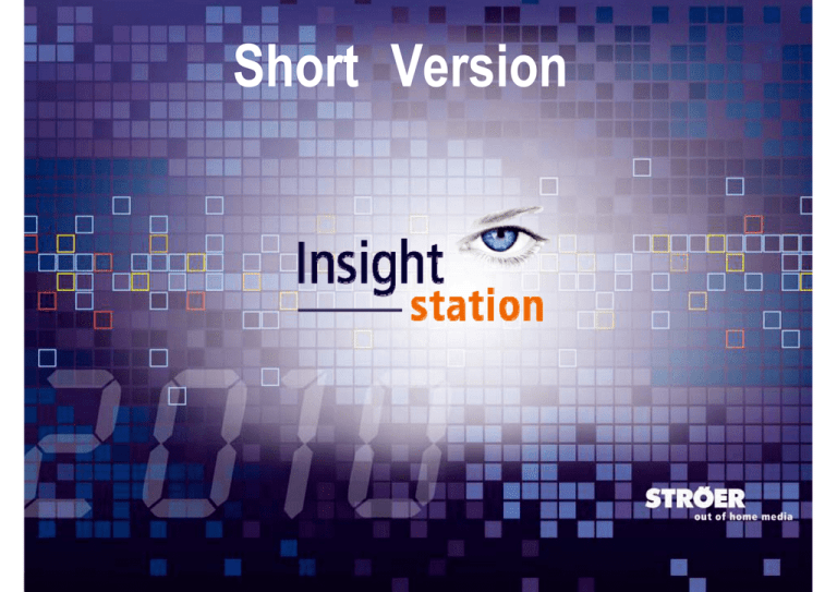 MEGATREND 1 Short Version MARKTFORSCHUNG Zeitbudget für Mediennutzung Mediennutzung gesamt in Minuten * 47 6 25 100 Funk TV 24 331 min. TZ Bahnhof PZ 129 Internet >> Fast 8% ihrer täglichen werblichen Erreichbarkeit entfällt auf den Bahnhof. Quelle: UM/ Media in Mind, 2008, E 14-64, Mo-So, in Minuten; Mediacom Insight Station Study durchschnittliche Bahnhofsaufenthaltsdauer werktags; *by_Peter-Kirchhoff_pixelio.de MARKTFORSCHUNG Erläuterungen Zeitbudget für Mediennutzung > Betrachtet man diese Zahlen, so sieht man, dass die Bahnhofsnutzung mit täglich 25 Minuten einen relevanten Anteil an der täglichen werblichen Erreichbarkeit der Bahnhofsnutzer hat. MARKTFORSCHUNG Einordnung Reichweite Bahnhof Nettoreichweiten nach Medium 60% 54% 50% 39% 40% 30% 24% 20% 16% 13% 12% 9% 19% 12% 10% 4% 0% ARD Sat 1 Kabel 1 Sport 1 N24 DER SPIEGEL Stern Quelle TV: AGF/GfK Fernsehforschung;DAP TV Control, Fernsehp.(D+EU), ohne zeitversetzte Nutzung, ohne außerhaus Nutzung, vorl. gew. 18.04. - 20.04.2010 (Werbeblockreichweiten); Print: ma 2010 Pressemedie; Bahnhof: ma 2010 Plakat; Vollbelegung CLP und GF, Zielgruppe E 14-49 Jahre; * soweit Flächen verfügbar Hörzu Top 200 Bahnhöfe* alle Bahnhöfe national MARKTFORSCHUNG Frequenzverteilung an Bahnhöfen Frankfurt am Main HBF GF CLP Ground Poster Big Banner Stair Poster/ Branding Ground Stripes Quelle: Bahnhofsfrequenzatlas, Fraunhofer Institut 2009 >> Zielgruppen und >> Frequenzen Zielgruppenverund Frequenzen verteilen sich in den teilen sich unterin den Bahnhöfen Bahnhöfen unterschiedlich schiedlich MARKTFORSCHUNG Erläuterungen Frequenzverteilung an Bahnhöfen > Anhand des Bahnhofs-Frequenzatlasses von Fraunhofer lassen sich Bahnhofsbesucherzahlen auf einzelne Bahnhofsbereiche runter brechen. > Aufgrund unterschiedlicher Verkehrssystemnutzung lassen sich Bereiche wie Fern- und S-Bahnbereiche trennen, bzw. differenziert betrachten. > Der Bahnhofs-Frequenzatlas liegt für die 169 größten Bahnhöfe vor. MARKTFORSCHUNG Hintergründe und Untersuchungsdesign Ziel der Untersuchung Analyse der Zielgruppen im Bahnhof und der Wirkung und Wahrnehmung von Werbeträgern in Bahnhofsumfeldern. Desk Research Vorgehensweise Explorierte Werbeträger Testmotive > Zielgruppen im Bahnhof Quantitative Wirkungsanalyse Qualitative Wirkungsanalyse Implizite Wirkungsanalyse Werbewirkung > Imagewirkung > Mindset am Bhf. > Werbewirkung > > Werbewirkung > Motivanalyse MARKTFORSCHUNG Erläuterungen Hintergründe und Untersuchungsdesign > Die Studie hat den Anspruch einer 360 Grad Untersuchung, die neben Nutzerstrukturen für die Bahnhöfe auch Aussagen über klassische Wirkungsparameter (quantitativ, Recall, Recognition), sowie innovative Wirkparameter (implizite Erinnerung), wie die tatsächliche Änderung von Präferenzentscheidungen enthält. > Um die gemessenen Effekte besser verstehen und erklären zu können, wurde im Rahmen der Studie eine umfängliche qualitative Hintergrunduntersuchung durchgeführt. > Testdesign der quantitativen und impliziten Messung ist ein dreidimensionaler Testcube bestehend aus 3 Werbeträgern (CLP, GP und BB), 3 fiktiven Motiven (Mauritius, Fresh und Mediol) und 3 Bahnhöfen (Stuttgart, Bremen und München), der sicherstellt, dass die Messergebnisse genau einer Konstellation zugewiesen werden können. > Im qualitativen Teil wurden GF, ML, CLP und GP getestet. Hier kam nur das Mauritius Motiv zum Einsatz. > Die Kampagnen wurden bewusst mit fiktiven Produkten durchgeführt, um Depot-Effekte auszuschließen und die gemessene Wirkung ausschließlich auf die durchgeführte Bahnhofs-Kampagne zurückführen zu können. > Nachfolgend gehen wir zunächst auf den Desk Research ein. MARKTFORSCHUNG „Insight Station“ – Bahnhofszielgruppen Young Urbans Professionals Business Traveller (ICE) ily a D er s U T ra vel ler Holiday Traveller Foto Leisuretimer City Shopper Quelle: Communications Network 13,0 Night Owls MARKTFORSCHUNG Erläuterungen „Insight Station“ –Bahnhofszielgruppen > Die Studie stellt fest, dass man Bahnhofsbesucher grundsätzlich in 3 Kerngruppen unterteilen kann, die täglichen Pendler, die Reisenden und die Freizeitnutzer. > Hieraus wurden 6 Kernzielgruppen abgeleitet, die Young Urbans, die Professionals, die City Shopper, die Night Owls, die Holiday Traveller und die ICE Business Traveller. > Wie man in dieser Übersicht erkennen kann, entsprechen die im Bahnhof dominierenden Zielgruppen keineswegs dem oft vorherrschenden Vorurteil über die Nutzer der Bahnhöfe in Deutschland. Im Gegenteil können wir hier schon erkennen, dass praktisch alle Kategorien werblich hoch relevanter Zielgruppenpotentiale beschrieben werden. > Nachfolgend gehen wir beispielhaft auf die Young Urbans, die Professionals und die ICE Business Traveller näher ein. MARKTFORSCHUNG „Insight Station“ – Bahnhofszielgruppen Young Urbans Professionals Business Traveller (ICE) ily a D er s U T ra vel ler Holiday Traveller Foto Leisuretimer City Shopper Quelle: Communications Network 13,0 Night Owls MARKTFORSCHUNG Young Urbans – A Day in Life Steckbrief A Day in Life Wir sind > Morgens fahre ich mit der Bahn zur Schule jung Umsteigen am Bahnhof > bzw. lebenUni, nochbeim im „Hotel Mama“ ich öfters ein Brötchen holen > gehe sind noch in dernoch Ausbildung > haben Eltern die gut verdienen, aber noch > kein Nachmittags mache ich mich auf den eigenes Einkommen Nachhauseweg >Wir Oft mache ich dann noch einen Abstecher zum > Supermarkt nutzen jedenoder Tagzum das Shoppen Internet in der Stadt > nutzen jeden Tag den ÖPNV / Bahnhof > Abends ich ins Kino, bin mit Freunden gehen oftgehe ins Kino gehe zum Sport oder in die Disco > zusammen lesen kaumoder Zeitungen und Zeitschriften > nutzen Radio und TV nicht oft 12 Quelle: Communication Network 13,0; In Ausbildung + Nutze ÖPNV zur Arbeit + BIK 100TEW+ Gebiete (Potential 2,34 Mio.) MARKTFORSCHUNG Erläuterungen Young Urbans – A Day in Life > Dies soll nur ein kurzer Eindruck sein. Selbstverständlich u