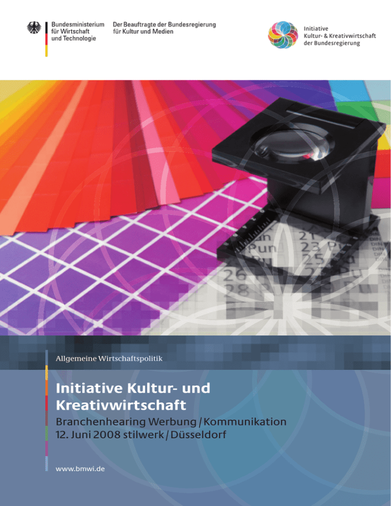 Initiative Kultur- & Kreativwirtschaft der Bundesregierung Allgemeine Wirtschaftspolitik Initiative Kultur- und Kreativwirtschaft Branchenhearing Werbung / Kommunikation 12. Juni 2008 stilwerk / Düsseldorf www.bmwi.de Redaktion Bundesministerium für Wirtschaft und Technologie (BMWi) Text PID Arbeiten für Wissenschaft und Öffentlichkeit GbR Gestaltung und Produktion Michael Vagedes GmbH, Hamburg Druck Harzdruckerei GmbH, Wernigerode Herausgeber Bundesministerium für Wirtschaft und Technologie (BMWi) Öffentlichkeitsarbeit 11019 Berlin www.bmwi.de Stand August 2008 Initiative Kultur- & Kreativwirtschaft der Bundesregierung Allgemeine Wirtschaftspolitik Initiative Kultur- und Kreativwirtschaft Branchenhearing Werbung / Kommunikation 12. Juni 2008 stilwerk / Düsseldorf Inhalt Was die Politik will Fokus und Fahrplan der Initiative Kultur- und Kreativwirtschaft Dagmar G. Wöhrl Parlamentarische Staatssekretärin beim Bundesministerium für Wirtschaft und Technologie Das Profil der Branche Manfred Parteina Geschäftsführer des Zentralverbandes der deutschen Werbewirtschaft e. V. (ZAW) Dr. Henning von Vieregge Hauptgeschäftsführer des Gesamtverbandes Kommunikationsagenturen e. V. (GWA) Bernd Weismann Referatsleiter im Bundesministerium für Wirtschaft und Technologie Werbung im Spannungsfeld gesellschaftlicher Entwicklungen 4 5 6 7 10 11 12 Die Kraft der sozialen Kommunikation Prof. Dr. Rainer Zimmermann PLEON GmbH 13 Werbeeinschränkungen am Beispiel Automobil-Werbung Holger Jung Jung von Matt AG, GWA-Präsident und ZAW-Vize-Präsident 16 Opportunities and Limits for Cooperation – Chancen und Grenzen der Kooperation Dominic Lyle Generalsekretär European Association of Communications Agencies (EACA) 18 Die Menschen in der Agentur-Wirtschaft Einsteller und Arbeitgeber: Arbeitsmarkt-Perspektive? „Generation Praktikum?“ Qualifikationsanforderungen? Till Wagner J. Walter Thompson Group Germany, GWA-Vorstand Astrid Reissig GWA Wirtschaft im Umbruch – Kommunikation und Werbung als Treiber Der Beitrag des Dienstleisters Kommunikations-Agentur: notorisch unterschätzt? Uli Veigel GREY Global Group Germany, GWA-Vorstand Nachrichten über das Gute Wie uns die Werbung über die Welt informiert Prof. Dr. Norbert Bolz TU Berlin, Vorsitzender des Prüfungsausschusses Medienberatung 22 23 25 27 29 3 Kreative Ökonomie Ein Leitbild für Nordrhein-Westfalen Christa Thoben Ministerin für Wirtschaft, Mittelstand und Energie des Landes Nordrhein-Westfalen 34 35 Handlungsperspektiven für die Zukunft der Branche Diskussionsbeiträge der Teilnehmerinnen und Teilnehmer 36 37 Schlusswort Bernd Weismann Referatsleiter im Bundesministerium für Wirtschaft und Technologie 46 47 Gruppenfoto 48 4 Was die Politik will Was die Politik will 5 Fokus und Fahrplan der Initiative Kultur- und Kreativwirtschaft Dagmar G. Wöhrl Parlamentarische Staatssekretärin beim Bundesminister für Wirtschaft und Technologie Zwischen den Branchen der Kultur- und Kreativwirtschaft besteht ein intensives Zusammenspiel, deren Gemeinsamkeit sich auf einen Nenner bringen lässt: ihre schöpferische Aktivität. Wir wissen, dass ohne schöpferische Aktivität auch wirtschaftliche Aktivität nicht zustande kommt. Deshalb betrachten wir die Kultur- und Kreativwirtschaft als einen wichtigen Wirtschaftszweig. Die Kultur- und Kreativwirtschaft ist ein bedeutender Arbeitsmarkt. Im Jahr 2004 lag der Anteil der Branche am Bruttoinlandsprodukt bei 2,6 Prozent. Damit liegt er über dem der Chemischen Industrie. In 2005 betrugen die Umsätze 121 Milliarden Euro. Dabei ist es ein sehr klein strukturierter Bereich: Die Selbstständigenquote liegt mit 25 Prozent weit über dem Durchschnitt anderer Branchen. Unser Ziel ist, der Branche ein Gesicht zu geben. Wir wollen die zukünftige Leistungsfähigkeit dieser Branche und deren Bedeutung verstärkt in die Öffentlichkeit bringen. Wir wollen die Potenziale herausarbeiten, die Entwicklungen aufzeigen, die Vernetzung intensivieren. Wir beobachten natürlich auch, wo noch Anpassungsbedarf besteht und in welchen Bereichen noch etwas getan werden muss Hier muss die Politik tätig werden und dort, wo es möglich ist, die Rahmenbedingungen ergänzen. Die Federführung für die Initiative liegt in den Händen des Beauftragten für Kultur und Medien und des Bundesministeriums für Wirtschaft und Technologie. Aber wir haben auch die Unterstützung von den Ländern, den Verbänden und der Wissenschaft. Wir haben ein Forschungsgutachten in Auftrag gegeben, um mehr über die Kultur- und Kreativwirtschaft zu erfahren. Zu diesem Zweck ist eine Arbeitsgemeinschaft gegründet worden, bestehend aus dem Büro für Kulturwirtschaftsforschung in Köln, der Prognos AG und Creative Business Consult in Bremen, die die Rahmenbedingungen analysieren wird, die für ihre Branchen gelten und entsprechende Handlungsoptionen herausarbeitet. Unsere Aufgabe ist zunächst die Durchführung der Branchenhearings. Zusätzlich werden wir themenspezifische Workshops durchführen, z. B. zum Thema „geistiges Eigentum“. Außerdem planen wir Foren, mit denen wir der Branche ein „Schaufenster“ bieten wollen. Zum Zeitplan: Die Ergebnisse des Forschungsgutachtens sollen bereits nach der Sommerpause vorliegen. In diesem Jahr werden wir fünf bis sechs Branchenhearings durchführen, weitere werden im Jahr 2009 folgen. Eine erste Bilanz werden wir noch vor der Sommerpause 2009 ziehen und danach entscheiden, welche Maßnahmen zu treffen sind. Einige Maßnahmen sind bzw. werden bereits heute in Angriff genommen, basierend auf den Ergebnissen der Enquête-Kommission des Deutschen Bundestages. Beispielsweise haben wir die Auslandsmesseförderung verbessert. Außerdem werden die Förderprogramme zugunsten der Bedürfnisse der kleinen Betriebe angepasst: beispielsweise mit dem KfWStartGeld für einen Kapitalbedarf bis zu 50.000 Euro, um der Unterkapitalisierung der Kleinunternehmen entgegenzuwirken. Außerdem werden wir, das Team des Bundesmini