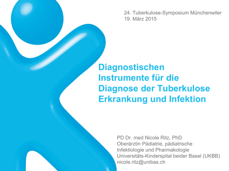 24. Tuberkulose-Symposium Münchenwiler 19. März 2015 Diagnostischen Instrumente für die Diagnose der Tuberkulose Erkrankung und Infektion PD Dr. med Nicole Ritz, PhD Oberärztin Pädiatrie, pädiatrische Infektiologie und Pharmakologie Universitäts-Kinderspital beider Basel (UKBB) [email protected] Conflict of interest Keine finanzielle Unterstützung durch Firmen die TB diagnostische Teste herstellen Pädiatrische, infektiologisch geprägte Sichtweise Neue Konzepte TB Infektion versus Erkrankung (latent versus aktiv) Prinzipien der TB Immuno-diagnose IGRAs zur Diagnose TB Erkrankung: Erwachsene, HIV +, Kinder Limitationen der IGRAs Alternativen zu IGRAs © UKBB, Datum, Vorname Name Seite 3 Natürlicher Verlauf nach TB Exposition Zeitachse Exposition Wochen/ Monate ? 5-50% Keine TB Infektion TB Infektion «latente TB» TB Erkrankung «aktive TB» Reaktivierte TB «aktive TB» Jahre Natürlicher Verlauf: moderne Interpretation Exposition ? Risikofaktoren /Trigger Keine TB Infektion TB Infektion «latente TB» TB Erkrankung «aktive TB» Jahre Wochen/ Monate (1-2 Jahre) Zeitachse TB ein Spektrum an Erkrankungen Ritz N & Curtis N, SMW 2014 Risikofaktoren und Trigger für den Übergang von Infektion zu Erkrankung Risikofaktor RR/OR Trigger Alter < 5 Jahre 2-5 Neue HIV-Infektion Untergewicht 2.5 Anti-TNF Therapie Rauchen 2-3 Mangelernährung Diabetes mellitus 2-4 Vitamin D Mangel Chronische Niereninsuffizienz 10-25 Leukämien/Lymphom 16 Organtransplantation 20-74 HIV-Infektion Virale Infektion Pubertät HIV-Infektion 50-110 Erkens C et al, ERJ 2010 Esmail H, Phil Trans R Soc 2014 Risiko der Progression bei Kindern je nach Alter erhöht 100% 90% 80% 70% 60% no disease 50% pulmonary disseminated or TBM 40% 30% 20% 10% 0% <1 2-3 3-5 5 - 10 >10 Marais BJ, AJRCCM 2006 Horsburgh C, NEJM 2004 Globale Zahlen TB Infektion und Erkrankung 7.2 Milliarden Menschen TB infizierte (2.4 Milliarden) 9 Millionen TB Erkrankungen Risiko der raschen Progression • Prävention der TB Erkrankung für Individuen mit hohem Risiko • Verkleinerung des TB «Reservoir» Esmail H et al, Phil Trans R Soc 2014 Globale Priorität für neue diagnostische Teste für TB 1) Point-of-care: Sputum-basierter Test (als Ersatz für Sputum Mikroskopie) 2) Point-of-care: Nicht-sputum basierter Test, für alle Formen der TB: Biomarker, Biosignatur 3) Point-of-care: Triage Test, vor allem um eine TB auszuschiessen 4) Schnelltest für Resistenzen Pai M & Schito M, JID 2015 Neue Konzepte TB Infektion versus Erkrankung (latent versus aktiv) Prinzipien der TB Immuno-diagnose IGRAs zur Diagnose TB Erkrankung: Erwachsene, HIV +, Kinder Limitationen der IGRAs Alternativen zu IGRAs © UKBB, Datum, Vorname Name Seite 11 Diagnose der Tuberkulose Symptome Kultur PCR Epidemiologie Immunodiagnostik Bildgebung Immuno-Diagnostik Indirekte Methode Latenz Gedächtnis T-zelluläre immunodiagnostische Teste Ritz N & Curtis N. SMW 2014 Aktuell gebräuchliche IGRAs QuantiFERON (Qiagen) T-Spot.TB (Oxford Immunotec) Lange C, Nat Clin Pract Reumatol 2007 Neue Konzepte TB Infektion versus Erkrankung (latent versus aktiv) Prinzipien der TB Immuno-diagnose IGRAs zur Diagnose TB Erkrankung: Erwachsene, HIV +, Kinder Limitationen der IGRAs Alternativen zu IGRAs © UKBB, Datum, Vorname Name Seite 16 IGRAs bei TB Erkrankung: Erwachsene Metcalfe J et al, JID 2011 Sester M et al, ERJ 2011 IGRAs bei TB Erkrankung: HIV-infizierte Metcalfe J et al, JID 2011 Santin M et al, PlosOne 2012 IGRAs bei TB Erkrankung: Kinder Ling D et al, Respir Rev 2011 Machingaize S et al, PIDJ 2011 IGRAs bei TB Erkrankung: “Meta-Meta” Analyse Autor/ Jahr Metcalfe, 2011 n Sens QFT (%) Spez QFT (%) Sens T-SP (%) Spez T-SP (%) Sens TST (%) Spez TST (%) 27 84 124 81 99 88 86 70 - E Sester, 2010 27 80 76 81 59 65 75 E Pai, 2008 20 70-78 96 90 83 77 59-97 E Metcalfe, 2011 27 65 Santin, 2012 38 61 72 75 70 H Chen, 2011 16 77 76 77 63 H Sollai, 2014 37 57-79 Mandalakas, 2011 31 83 91 84 94 80 85 K Sun, 2011 16 85 100 76 90 85 56 K Diel, 2010 88 E 68 H 61-67 K IGRAs: Voraussage der Entwicklung einer TB Erkrankung Ranganka M, et al Lancet Infect Dis 2012 Diel R et al, AJRCCM 2012 Neue Konzepte TB Infektion versus Erkrankung (latent versus aktiv) Prinzipien der TB Immuno-diagnose IGRAs zur Diagnose TB Erkrankung: Erwachsene, HIV +, Kinder Limitationen der IGRAs Alternativen zu IGRAs © UKBB, Datum, Vorname Name Seite 22 Unbestimmbare Resultate (“indeterminates”) 1) Hohe Werte in der unstimmulierten Kontrolle (0-15%) 2) Niedrige Werte in der positiven Kontrolle (85-100%) Kinder HIV + QFT: 8 (6-11)% T.Spot.TB: 6 (4-6%) Higher in high burden settings AUS n = 875 Meta n = 5209 (27 Studien) 2003-2008 2003-2008 Connell TC et al, PIDJ 2010 Santin M et al, PlosOne 2012 Indeterminates: IFN-γ Antwort altersabhängig AUS n = 875 UK n = 3236 2003-2008 2011-2013 Connell TC et al, PIDJ 2010 Tebruegge M et al, JCM 2014 Indeterminates: IFN-γ Antwort CD4 abhängig SA n = 561, 330 HIV pos 2011-2013 Oni T et al, CVI 2012 QFT Plus: Die Lösung? QFT Plus: Prinzip Antigene: Peptidmischung der Proteine ESAT-6 und CFP-10 Postulat: TB1 soll vermehrt CD4 Zellen stimulieren, TB2 soll vermehrt CD8 Zellen stimulieren QFT Gold Plus Packungsbeilage Rozot V et al, CID 2015 QFT Plus: Sensitivität und Spezifität QFT Gold Plus Packungsbeilage Neue Konzepte TB Infektion versus Erkrankung (latent versus aktiv) Prinzipien der TB Immuno-diagnose IGRAs zur Diagnose TB Erkrankung: Erwachsene, HIV +, Kinder Limitationen der IGRAs Alternativen zu IGRAs © UKBB, Datum, Vorname Name Seite 29 Alternativen zu IGRAs Test method Stage of development Cost TAT Complexity C-Tb test In clinical trials (Statens Serum Institut) In development for commercial use (IRISA-TB assay) Unknown Likely 48 to 72 hours < 2 hours Low Distinction between LTBI and active TB No LowModerate Only for active TB Research Moderate Moderate Potentially Research High High Potentially Research High Variable (hours to days) Variable (hours to days) Unknown High Pote