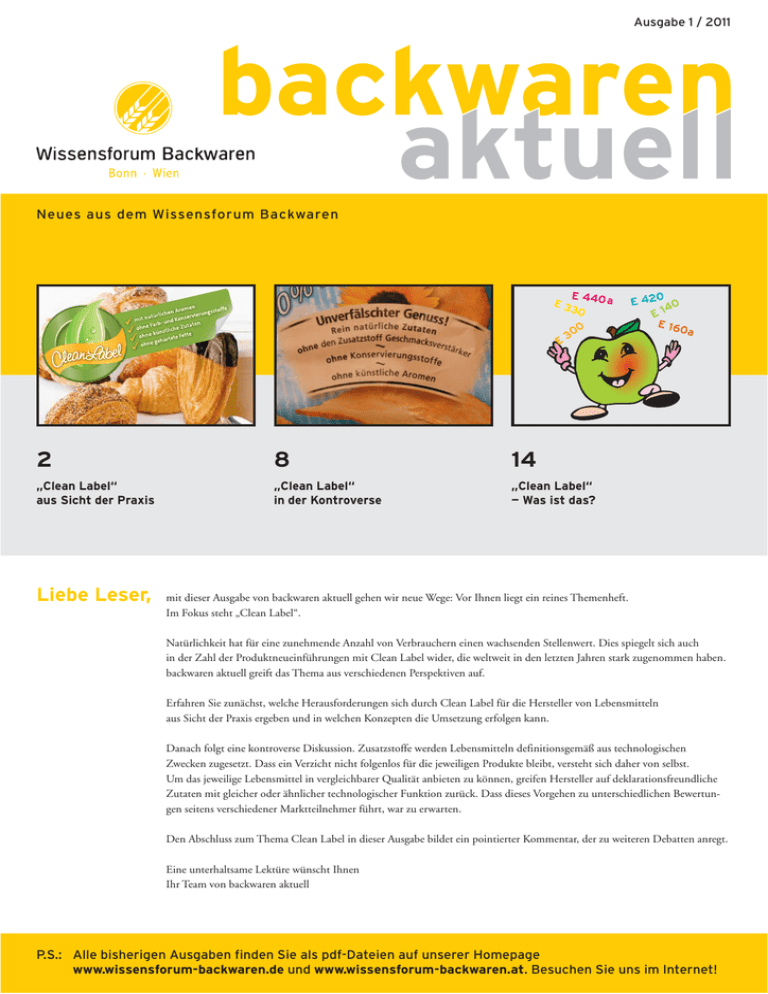 Ausgabe 1 / 2011 Neues aus dem Wissensforum Backwaren E 440 a E3 30 E 0 30 2 8 14 „Clean Label“ aus Sicht der Praxis „Clean Label“ in der Kontroverse „Clean Label“ — Was ist das? Liebe Leser, E 420 0 4 E1 E 16 0a mit dieser Ausgabe von backwaren aktuell gehen wir neue Wege: Vor Ihnen liegt ein reines Themenheft. Im Fokus steht „Clean Label“. Natürlichkeit hat für eine zunehmende Anzahl von Verbrauchern einen wachsenden Stellenwert. Dies spiegelt sich auch in der Zahl der Produktneueinführungen mit Clean Label wider, die weltweit in den letzten Jahren stark zugenommen haben. backwaren aktuell greift das Thema aus verschiedenen Perspektiven auf. Erfahren Sie zunächst, welche Herausforderungen sich durch Clean Label für die Hersteller von Lebensmitteln aus Sicht der Praxis ergeben und in welchen Konzepten die Umsetzung erfolgen kann. Danach folgt eine kontroverse Diskussion. Zusatzstoffe werden Lebensmitteln definitionsgemäß aus technologischen Zwecken zugesetzt. Dass ein Verzicht nicht folgenlos für die jeweiligen Produkte bleibt, versteht sich daher von selbst. Um das jeweilige Lebensmittel in vergleichbarer Qualität anbieten zu können, greifen Hersteller auf deklarationsfreundliche Zutaten mit gleicher oder ähnlicher technologischer Funktion zurück. Dass dieses Vorgehen zu unterschiedlichen Bewertungen seitens verschiedener Marktteilnehmer führt, war zu erwarten. Den Abschluss zum Thema Clean Label in dieser Ausgabe bildet ein pointierter Kommentar, der zu weiteren Debatten anregt. Eine unterhaltsame Lektüre wünscht Ihnen Ihr Team von backwaren aktuell P.S.: Alle bisherigen Ausgaben finden Sie als pdf-Dateien auf unserer Homepage www.wissensforum-backwaren.de und www.wissensforum-backwaren.at. Besuchen Sie uns im Internet! „Clean Label“ aus Sicht der Praxis Dr. Petra Unland, Bielefeld Gründe für „Clean Label“ bei der Werbung für Lebensmittel „Clean Label“ – ein in den Medien zurzeit viel diskutiertes Thema, findet sich zunehmend auf den Etiketten zahlreicher Lebensmittel, wird aber besonders von den Verbraucherzentralen kritisiert[1]. Gefördert durch die Medien, die Zusatzstoffe in der Vergangenheit wiederholt in ein schlechtes Licht gerückt haben [2], hat der Verbraucherwunsch nach Lebensmitteln ohne Zusatzstoffe bzw. ohne bestimmte Zusatzstoffe in den letzten Jahren immer mehr zugenommen. Der Wunsch beruht vor allem auf der irrationalen Annahme, naturbelassene Lebensmittel seien gesünder als solche, die Zusatzstoffe mit E-Nummern bzw. mit chemisch klingenden Namen, wie beispielsweise „Ascorbinsäure“ oder „Monound Diglyceride von Speisefettsäuren“ enthalten. Diese „E-Stoffe“ werden von einigen Medien sogar als echte Krankmacher ausgewiesen [3]. So erklärt sich, warum für Kunden die Information über die Abwesenheit von bestimmten Zusatzstoffen für die Kaufentscheidung eine wichtige Rolle spielen kann. Jedoch ist es nicht so einfach: Weder lassen sich Zusatzstoffe generell in künstlich und damit schlecht abstempeln, noch sind Produkte ohne Zusatzstoffe generell gesünder oder besser [4]. Zugelassene Zusatzstoffe sind hinsichtlich ihrer Wirkung geprüft und stellen kein Risiko für den gesunden Verbraucher dar [5]. Dass das heutige Lebensmittelangebot ohne Zusatzstoffe in seiner Vielfalt nicht möglich wäre und selbige von der Lebensmittelindustrie in der Regel nach dem „quantum satis“-Prinzip (laut Definition so viel wie nötig, so wenig wie möglich) verwendet werden, übersehen die „Zusatzstoffkritiker“. Unabhängig davon setzen sich zunehmend mehr Produkte mit Clean Label auf dem Markt durch. Wie die nachfolgende Tabelle 1 zeigt, handelt es sich um einen weltweiten Trend [6]. Obwohl der Gesamtanteil der Produkte mit Clean Label in den USA höher ist, so sind die Wachstumsraten in Australien und Großbritannien am höchsten. Allein auf Europa bezogen kommt der Clean Label- Quelle: Mintel GNPD, eigenen Darstellung und Übersetzung Tabelle 1: Neue Produkteinführungen mit „ohne Zusatzstoffe /ohne Konservierungsstoffe“-Claim in ausgewählten Ländern, 2004 —2007 2004 2005 2006 2007 Total %-Wachstum 2006 – 2007 1.350 1.074 1.739 2.198 6.361 26,4 % Großbritannien 402 471 781 1.465 3.119 87,6 % Australien 314 270 462 947 1.993 105,0 % Kanada 286 169 517 823 1.795 59,2 % Deutschland 263 246 526 628 1.663 19,4 % USA 2 backwaren aktuell · Ausgabe 1 / April 2011 Trend vom Markt in Großbritannien. Dort hat vor allem der Handel den Verzicht bestimmter Zusatzstoffe gefordert [7]. Definition Clean Label Unter Clean Label wird eine zumeist blickfangmäßige Produktkennzeichnung verstanden, die auf den Verzicht bestimmter Zutaten oder Verfahren hinweist. Derartige Angaben werden zumeist mit den Worten „ohne …“ oder „ohne Zusatz von …“ eingeleitet und beziehen sich in der Regel auf den Verzicht von Zusatzstoffen oder Aromen [8, 9]. Hier stehen besonders die Stoffe mit ENummern im Blickpunkt, darunter besonders solche Zusatzstoffe, die dem Verbraucher durch Negativkampagnen der Presse bekannt sind, so z.B. Azofarbstoffe, Konservierungsstoffe oder der Geschmacksverstärker Natriumglutamat. In der Gastronomie oder im Großverbraucherservice wird unter Clean Label der Verzicht auf die in Speisekarten kenntlichmachungspflichtigen Zusatzstoffe gemäß § 9 Zusatzstoff-Zulassungsverordnung (ZZulV) verstanden [10]. Der Verzicht auf die Verwendung von gentechnischen Verfahren oder die Negativwerbung in Bezug auf bestimmte Nährstoffe (z.B. ohne Zuckerzusatz) sind in diesem Zusammenhang ebenfalls zu nennen. Eine Legaldefinition zu Clean Label gibt es aber nicht. Das führt dazu, dass Clean Label sehr unterschiedliche Bedeutungen für verschiedene Personengruppen haben kann. Im Folgenden soll auf die in der Praxis zumeist verwendete freiwillige Negativauslobung in Bezug auf Zusatzstoffe und Aromen eingegangen werden. Clean Label-Konzepte im Überblick Folgende Clean Label-Konzepte sind bei der Herstellung von Le