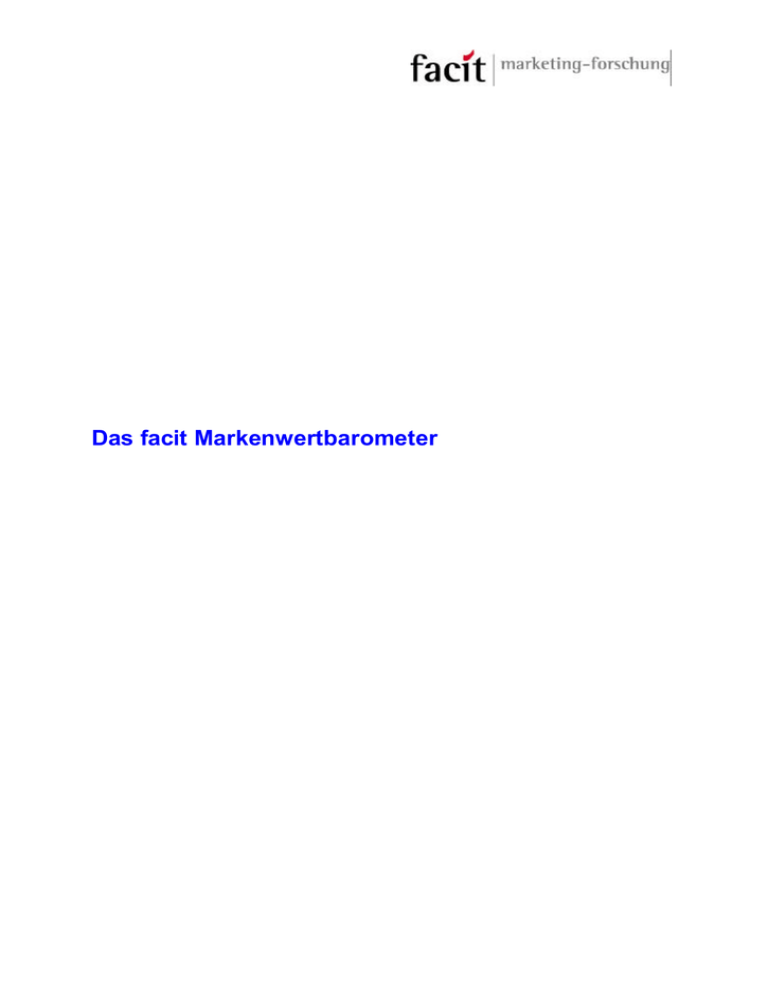Das facit Markenwertbarometer Vorbemerkungen: Das facit-Markenwertbarometer wurde von der facit Marketing-Forschung auf Basis von Erfahrungen über mehrere Jahre hin entwickelt. Diese Erfahrungen beruhen darauf, dass der Wert einer Marke und letztlich auch der Erfolg einer Marke natürlich vom Erst- und vom Wiederkauf abhängig ist. Unsere Erfahrungen haben gezeigt, dass die Erst- und Wiederkaufsbereitschaft von fünf Markenwertfaktoren bestimmt wird, und zwar von der Markenaktualität, der Markensympathie, der Markenqualität, der Markenalleinstellung und dem subjektiven Preis- / Leistungsverhältnis. Nach einer nicht näher zu beschreibenden Methode werden für alle diese Markenwertfaktoren Indexwerte errechnet, die dann zusammen mit den Werten für die Erst- und Wiederkaufbereitschaft bei der Berechnung des Markenwert-Index berücksichtigt werden. Der Vorteil dieser Methode liegt darin, dass man den Wert und den Erfolg einer Marke über eine sehr einfache und kurze Marktforschungsbefragung definieren kann. Für diese Befragung steht ein Fragebogen zur Verfügung, der ca. 12 bis 15 einfache Fragen enthält und für ein persönliches Interview angewendet wird. Das facit-Markenwertbarometer kann sowohl für Marken als auch für Unternehmen angewendet werden. Für viele Marken und Unternehmen stehen bereits Benchmarks zur Verfügung. Ein weiterer Vorteil des facit-Markenwertbarometers ist aber auch, dass bereits vorhandene Benchmarks grundsätzlich nicht notwendig sind, weil sie bei jedem Mal aktuell erhoben werden. Das hier vorgestellte facit-Markenwertbarometer ist das Standardinstrument, das aber durch spezifische Fragen vertieft und ergänzt werden kann. Die Mindeststichprobengröße liegt bei 100 Personen. Größere Stichproben sind dann notwendig, wenn man mehrere Untergruppen getrennt ausgewertet haben möchte. In Ausnahmefällen, z.B. bei besonders großen Stichproben, ist es aus Kostengründen auch möglich, das facit-Markenwertbarometer telefonisch durchzuführen. Die etwas weniger hohe Genauigkeit bei telefonischen Erhebungen wird in der Regel durch die größere Stichprobe ausgeglichen. © by facit 2002 facit-Markenwertbarometer wozu? Die Marktforschung stellt Probleme meist erst dann fest, wenn sie bereits entstanden sind. Das Ziel des facit-Markenwertbarometers ist, die Chancen und Risiken für eine Marke so frühzeitig zu erkennen, dass rechtzeitig mit geringem Aufwand und vor dem Wettbewerb agiert werden kann. Das facit-Markenwertbarometer misst alle wichtigen Faktoren, die für eine effiziente Markenführung und letztlich auch für den Markenwert entscheidend sind. Das Ergebnis des facit-Markenwertbarometers ist der Markenwert-Index. Das facit-Markenwertbarometer ist ein ideales Marketing-Tool, um die oft kontroversen und subjektiv geführten Diskussionen im Unternehmen – sei es über die Probleme und Schwächen, aber auch über die Stärken und Erfolgsfaktoren einer Marke – auf eine objektive Plattform zu stellen. Das facit-Markenwertbarometer wird optimalerweise kontinuierlich durchgeführt, um somit Veränderungen in der Markenentwicklung beim Verbraucher und bei den Wettbewerbern kurzfristig zu erkennen. © by facit 2002 Das facit-Markenwert-Barometer Eigene Marke (Index 118) Konkurrent A 100 80 120 140 60 40 20 Konkurrent B 160 - + 180 Markenwert-Index (errechnet aus den Teil-Indizes) Treiberfaktoren Wiederkaufsbereitschaft Markenloyalität Erstkauf-/Abschlussbereitschaft Markenwert-Faktoren: Markenaktualität Markensympathie Markenqualität Markenalleinstellung subjektives PreisLeistungs-Verhältnis Kommunikationsleistung: Werbe-Impact (Recall, Recognition) © by facit 2002 Werbeinhalte Emotionale Akzeptanz Marken- und Produktprägnanz Beispiel: Der branchenübergreifende Markenwert-Index Einz elne Wettbew erberMarke innerhalb der Branche 60 Branchendurchschnitt 80 100 Eigene Marke Beste Marke der Branche 120 140 Beste branchenfremde Marke 160 40 20 - © by facit 2002 + 180 Der Markenwert-Index gibt konkrete Ansatzpunkte: • ob das Ergebnis des Markenwertes, ausgedrückt in einem Index, im positiven oder negativen Bereich liegt. Je höher dieser Index im positiven Bereich liegt, desto positiver ist das Ergebnis der Markenführung. Der Mehrwert einer Marke zeigt die Bereitschaft der Verbraucher, einen höheren Preis als für Wettbewerbsmarken zu bezahlen, • wie die eigene Marke im Vergleich zu den Wettbewerbern innerhalb der Branche dasteht und wie weit sie vom besten Wettbewerber, also dem mit dem höchsten Markenwert-Index, entfernt liegt, • ob man selbst zu den stärksten und erfolgreichsten Marken innerhalb der Branche gehört, • wie der Markenwert-Index der eigenen Marke im Vergleich zu besonders erfolgreichen und starken Marken respektive Unternehmen aus anderen Branchen aussieht. Dazu stehen facit Benchmarks zur Verfügung. Der facit-Markenwert-Index gibt also darüber Auskunft, wie eine Marke oder ein Unternehmen sowohl im Vergleich zu den Wettbewerbern der eigenen Branche als auch im Vergleich zu branchenfremden Unternehmen dasteht, aber noch nicht, welche Faktoren im Einzelnen für das Ergebnis des Markenwertes verantwortlich sind. © by facit 2002 Aus einer Vielzahl von Untersuchungen weiß die facit Marketing-Forschung, dass das Ergebnis des Markenwertes durch fünf Markenwert-Faktoren beeinflusst wird, und zwar: • die Aktualität einer Marke, die unter anderem auch darüber Auskunft gibt, inwieweit die eigene Marke zum Relevant-Set eines Käufers zählt, • die Markensympathie, die sich aus dem Akzeptanz- und Ablehnungspotenzial der Marke im Vergleich zu den Wettbewerbern ergibt, • die Markenqualität, die durch das Produkt selbst, aber auch durch das Image einer Marke bestimmt wird, • die Markenalleinstellung, die über die Eigenständigkeit einer Marke Auskunft gibt und zeigt, welche die nächsten Wettbewerber sind und ob eine Substitutionsgefahr für die eigene Marke besteht, • das subjektive Preis- / Leistungsverhältnis, das unte