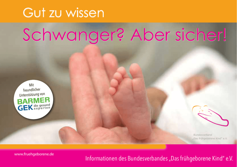 Gut zu wissen Schwanger? Aber sicher! Mit freundlicher Unterstützung von Bundesverband „Das frühgeborene Kind” e.V. www.fruehgeborene.de Informationen des Bundesverbandes „Das frühgeborene Kind“ e.V. Impressum Impressum Herausgeber Bundesverband „Das frühgeborene Kind“ e.V. Speyerer Str. 5-7 60327 Frankfurt am Main Alle Rechte vorbehalten Text, Redaktion & Layout: Bundesverband „Das frühgeborene Kind“ e.V. Wissenschaftliche Beratung: Dr. med. Babett Ramsauer, Vivantes Klinium Neukölln, Berlin Professor Dr. med. Rainer Rossi, Vivantes Klinikum Neukölln, Berlin Fotos: Foto Video Sessner, Dachau © id-foto.de - Fotolia.com © HLPhoto - Fotolia.com © Barbara Pheby - Fotolia.com © gandolf - Fotolia.com © MariusdeGraf - Fotolia.com © lifeonwhite - Fotolia.com © Steffen Schwenk - Fotolia.com © Stocksnapper - Fotolia.com © Ilike - Fotolia-com © Ljupco Smokovski - Fotolia.com © kanate - Fotolia.com © Sebastian Kaulitzki - istockphoto.com Druck: Volkhardt Caruna Medien Richterstraße 2 63916 Amorbach Stand: März 2014 Wir bedanken uns herzlich bei Frau Dr. med. Babett Ramsauer und Herrn Prof. Dr. med. Rainer Rossi für die wissenschaftliche Beratung. 2 Liebe Eltern in spe, wenn sich ein neues Familienmitglied ankündigt, dann ist das der spannende Beginn des Abenteuers Familie. Neben der Vorfreude auf den mit Spannung erwarteten Zuwachs müssen sich mittlerweile allerdings ca. 75 Prozent aller Schwangeren in Deutschland als sogenannte Risikoschwangere auch mit Begrifflichkeiten wie „Risiko“ und „Gefahr“ auseinandersetzen. Das klingt zunächst erschreckend, handelt sich aber lediglich um eine rein statistische Wahrscheinlichkeit für ein erhöhtes Risiko von Schwangerschaftskomplikationen. Risikofaktoren sind beispielsweise allein das Alter der Schwangeren (< 35 Jahre), bestehende Vorerkrankungen wie Diabetes, Bluthochdruck, Komplikationen in einer vorausgegangenen Schwangerschaft, Mehrlingsschwangerschaften. Viele dieser Risikofaktoren können unbehandelt zum vorzeitigen Ende der Schwangerschaft führen. In Deutschland kommt derzeit knapp eins von zehn Neugeborenen als sogenanntes Frühgeborenes vor der 37. Schwangerschaftswoche zur Welt. Das sind ca. 60. 000 Babys pro Jahr. Risikoschwangere werden daher engmaschig von ihrem Frauenarzt/ihrer Frauenärztin begleitet, was in vielen Fällen zu einem komplikationslosen Verlauf beiträgt. Von Komplikationen können im umgekehrten Fall aber auch Frauen betroffen sein, die nicht zur Gruppe der Risikoschwangeren gehören. Über einige dieser Risikofaktoren und möglichen Ursachen für eine vorzeitige Geburt möchten wir Sie mit dieser Broschüre kurz informieren, damit Sie sich und Ihr ungeborenes Baby bestmöglich schützen können. Schwanger? Aber sicher! Vorwort/Inhalt Potenzielle Auslöser für eine zu frühe Geburt sind vielfältig. Einige dieser Auslöser sind bereits seit Jahren bekannt. Es gibt jedoch auch noch verhältnismäßig neue Zusammenhänge, die eine zu frühe Geburt bewirken können. Nicht alle Ursachen lassen sich immer rechtzeitig erkennen oder gar vermeiden. Viele kündigen sich jedoch bereits im Vorfeld an und sind gut behandelbar. Unter Umständen ist eine vorzeitige Entbindung sogar medizinisch indiziert, wenn die Versorgung des Kindes im Mutterleib unzureichend ist, oder das Leben von Mutter und/oder Kind aufgrund von Komplikationen akut gefährdet wäre, falls die Schwangerschaft nicht umgehend beendet wird. Die Auseinandersetzung mit bestehenden Risiken und Gefahren für die Gesundheit von Mutter und/oder Kind verunsichert und beängstigt schnell, insbesondere wenn sie in der Summe nachzulesen sind. Dennoch kann es hilfreich sein, sich einen kurzen Überblick über bestehende Risiken für eine gesunde Entwicklung des Ungeborenen zu verschaffen und mögliche Ursachen für eine vorzeitige Geburt zu kennen. Das machen auch immer wieder Aussagen von betroffenen Frühchen-Eltern deutlich, die sich im Nachhinein mehr Aufklärung über schwangerschaftsgefährdendes Verhalten und/oder möglicherweise auftretende Komplikationen, die zu einer vorzeitigen Geburt führen können, gewünscht hätten. Für den weiteren Verlauf Ihrer Schwangerschaft und einen möglichst unbeschwerten Start ins gemeinsame Familienleben mit Ihrem Baby wünschen wir Ihnen alles erdenklich Gute! Inhaltsverzeichnis Impressum Vorwort/Inhalt 2 2/3 Beachtenswertes 4 Ernährung 6 Vitamine 8 Verzicht auf bestimmte Lebensmittel 9 Infektionsrisiken 10 Viruserkrankungen 12 Weitere gesundheitliche Probleme 14 Körperliche & psychische Belastungen 16 Besondere Umstände 17 Vorzeitige Wehen 18 Wichtige Adressen und Linktipps 20 Bundesverband „Das frühgeborene Kind“ e.V. Schwanger? Aber sicher! 3 Beachtenswertes Beachtenswertes Als werdende Eltern können Sie bereits entscheidend dazu beitragen, dass die Schwangerschaft möglichst gesund und sicher verläuft. • Regelmäßige Vorsorgetermine Eine der wichtigsten Maßnahmen sind regelmäßige Schwangerschaftsvorsorge-Termine beim Frauenarzt. Auf diese Weise können viele Auffälligkeiten bereits frühzeitig erkannt und, wenn nötig, behandelt werden. • Verzicht auf Zigaretten, Alkohol & Drogen Der Verzicht auf Zigaretten, Alkohol und Drogen versteht sich von selbst, denn Ihr Kind konsumiert notgedrungen über den Blutkreislauf der Mutter alle schädlichen Inhaltsstoffe mit. Das kann neben dem Risiko einer zu frühen Geburt auch die weitere Entwicklung des ungeborenen Kindes nachhaltig negativ beeinträchtigen. Fehlbildungen, Minderwuchs und geistige Behinderungen können zudem die Folge von Alkohol- und Drogenkonsum während der Schwangerschaft sein. Daher auf jeden Fall ganz darauf verzichten! ! 4 Achtung: Auch Passivrauchen schadet dem ungeborenen Kind. Daher ist der Partner ebenfalls in der Pflicht. Gemeinsam fällt das Aufhören auch deutlich leichter! • Schadstoffbelastungen vermeiden Viele werdende Eltern planen während der Schwangerschaft einen Umzug und diverse Renovie