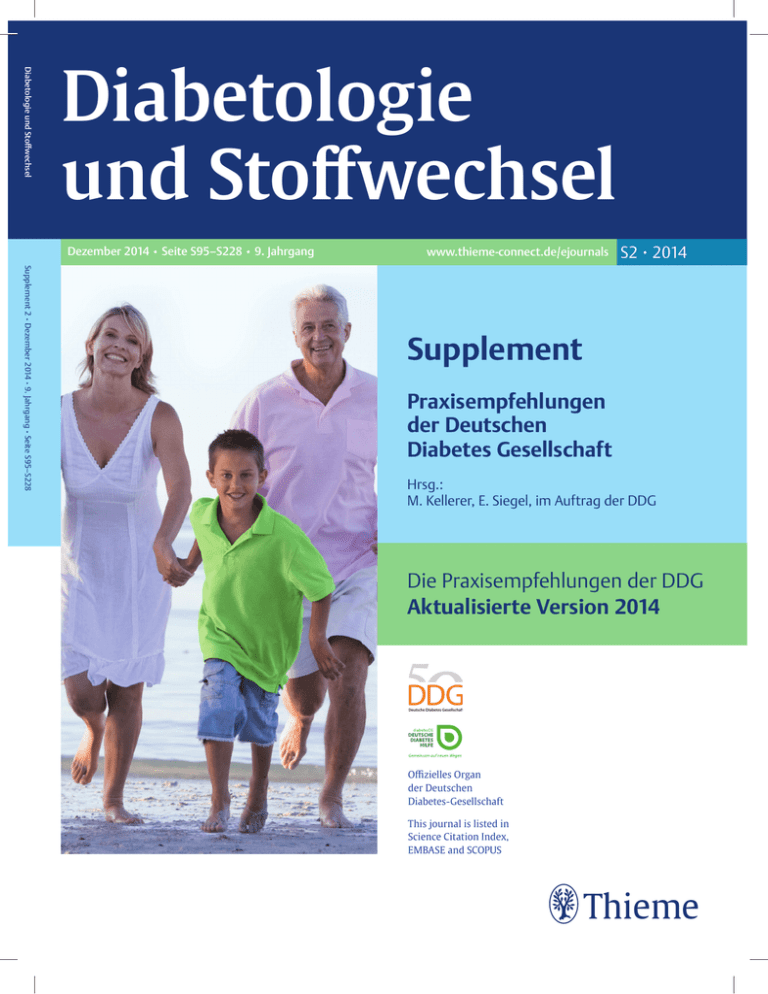 Diabetologie und Stoffwechsel Diabetologie und Stoffwechsel Dezember 2014 • Seite S95–S228 • 9. Jahrgang www.thieme-connect.de/ejournals S2 • 2014 Supplement 2 • Dezember 2014 • 9. Jahrgang • Seite S95–S228 Supplement Praxisempfehlungen der Deutschen Diabetes Gesellschaft Hrsg.: M. Kellerer, E. Siegel, im Auftrag der DDG Die Praxisempfehlungen der DDG Aktualisierte Version 2014 Offizielles Organ der Deutschen Diabetes-Gesellschaft This journal is listed in Science Citation Index, EMBASE and SCOPUS S214 DDG Praxisempfehlung Diabetes und Schwangerschaft Autoren H. Kleinwechter1, U. Schäfer-Graf2, C. Bührer3, I. Hösli4, F. Kainer5, A. Kautzky-Willer6, B. Pawlowski7, K. Schunck8, T. Somville9, M. Sorger10 Institute Die Institutsangaben sind am Ende des Beitrags gelistet. Erstveröffentlichung 5/2007 in: „Diabetologie und Stoffwechsel“, Thieme Verlag; Autoren der Erstveröffentlichung: H. Kleinwechter, C. Bührer, W. Hunger-Battefeld, F. Kainer, A. Kautzky-Willer, B. Pawlowski, H. Reiher, U. Schäfer-Graf, M. Sorger Letzte Aktualisierung 10/2014 Bibliografie DOI http://dx.doi.org/ 10.1055/s-0034-1385413 Diabetologie 2014; 9 (Suppl 2): S214–S220 © Georg Thieme Verlag KG Stuttgart · New York · ISSN 1861-9002 Korrespondenzadresse für die Deutsche DiabetesGesellschaft Dr. med. Helmut Kleinwechter Diabetologikum Kiel Diabetes-Schwerpunktpraxis und Schulungszentrum Alter Markt 11 u. 14 24103 Kiel Tel.: 04 31/9 58 07 Fax: 04 31/9 58 05 [email protected] für die Deutsche Gesellschaft für Gynäkologie u. Geburtshilfe Prof. Dr. med. Ute Schäfer-Graf Sprecherin der Expertengruppe „Diabetes und Schwangerschaft“ der DGGG, Berliner Diabeteszentrum für Schwangere, Klinik für Gynäkologie und Geburtshilfe St. Joseph Krankenhaus Wüsthoffstraße 15 12101 Berlin Tel.: 0 30/78 82 42 14/22 36 Fax: 0 30/78 82 27 66 [email protected] Vorbemerkung ! Diese Praxis-Leitlinie bearbeitet nur den präkonzeptionell bekannten Typ-1- und Typ-2-Diabetes. Dieses sind Hochrisiko-Schwangerschaften und bedürfen einer gemeinsamen Betreuung durch spezialisierte Diabetologen, Geburtsmediziner und Neonatologen in enger Kooperation mit Hebammen, Augenärzten und anderen Fachgebieten. Prävalenz vorgenommen werden. Der HbA1c-Wert sollte alle 4 – 6 Wochen bestimmt werden und im Referenzbereich für Gesunde liegen. (Anm.: Auf unterschiedliche regionale Referenzbereiche der HbA1c-Methoden soll hingewiesen werden. Im Allgemeinen soll der HbA1c-Wert präkonzeptionell nicht mehr als 0,5 – 1 % absolut oberhalb des oberen Referenz-Grenzwertes der verwendeten Labormethode liegen). Die Qualität der Blutglukose-Selbstmessung durch die Schwangere soll regelmäßig mit gerätespezifischen Kontroll-Lösungen überprüft werden. ! Im Jahr 2013 wurde in deutschen Geburtskliniken bei rund 658 000 Schwangerschaften in 0,95 % ein präkonzeptionell bekannter Diabetes registriert (n = 6256). Eine Differenzierung in Typ-1- und Typ-2-Diabetes ist aus den zur Verfügung stehenden Daten nicht möglich. Der Anteil Schwangerer mit Typ-2-Diabetes wird auf ca. 20 % geschätzt. Beratung bei Kinderwunsch ! Praxistool (s. Anhang) Tab. 1: Blutglukose-Zielwerte (kapilläre Messung) nach Eintritt der Schwangerschaft. Stoffwechselziele Humangenetische Beratung ! Das Risiko der Kinder, an einem Typ-1-Diabetes zu erkranken, liegt bei 0,8 % nach 5 Jahren (5,3 % nach 20 Jahren). Ist auch der Vater an Typ-1-Diabetes erkrankt, beträgt das 5-Jahres-Risiko 11 %, ist neben der Mutter auch ein Geschwister erkrankt, liegt die Rate nach 5 Jahren bei 12 %. Das Risiko in der Allgemeinbevölkerung beträgt bis zum 25. Lebensjahr ca. 0,3 %. Präkonzeptionell soll eine normnahe Stoffwechseleinstellung mit einem HbA1c < 7 % (besser < 6,5 %) für mindestens 3 Monate erzielt werden. Die Blutglukose-Zielwerte (kapillär mit dem Handmessgerät der Schwangeren gemessen) nach Eintritt der " Tab. 1): Schwangerschaft lauten (s. Praxistool, ● Mittlere Blutglukosewerte (MBG) eines Tages, bestehend aus 6 Werten (vor den Hauptmahlzeiten und 1 – 2 Stunden danach) von < 90 mg/dl (5,0 mmol/l) deuten auf eine zu straffe Einstellung mit dem Risiko fetaler Wachstumsretardierung hin, MBG > 110 mg/dl (6,1 mmol/l) gelten als nicht ausreichend gut eingestellt. Die postprandialen Werte (nach 1 oder 2 Stunden) sind für die fetale Prognose bedeutsam, hiernach sind die nachfolgenden präprandialen Insulindosierungen zu adaptieren. Eine sofortige postprandiale Korrektur soll ab 200 mg/dl (11,0 mmol/l) Kleinwechter H et al. Diabetes und Schwangerschaft Diabetologie 2014; 9: S214–S220 Abort- und Fehlbildungsrisiko Das Risiko für Frühaborte ist erhöht und abhängig von der präkonzeptionellen Stoffwechseleinstellung. Numerische Chromosomenanomalien treten bei diabetischen Schwangerschaften nicht gehäuft auf. Ebenso abhängig von der Qualität der präkonzeptionellen Stoffwechseleinstellung ist das Risiko für Fehlbildungen, es liegt im Mittel rund 4-fach höher im Vergleich zur Allgemeinbevölkerung, im Mittel Diabetes und Schwangerschaft bei 8,8 %. Dies gilt für Typ-1- und Typ-2-Diabetes gleichermaßen. In geplanten Schwangerschaften ist das Fehlbildungsrisiko bedingt durch die gezielte Beratung, die bessere Stoffwechseleinstellung und Blutglukose-Selbstkontrollen geringer als in ungeplanten. Fehlbildungen betreffen vorwiegend das Herz und herznahe Gefäße (Risiko: 4-fach), Neuralrohrdefekte (Risiko: 2- bis 3-fach) und multiple Fehlbildungen. Ein diabetes-spezifischer Fehlbildungstyp existiert nicht. Das häufig genannte kaudale Regressionssyndrom ist sehr selten (Prävalenz bei diabetischen Schwangerschaften: 1,3/1 000). Das Risiko für Fehlbildungen ist außerdem assoziiert mit einer Adipositas, mikrovaskulären Komplikationen und unzureichender perikonzeptioneller Folsäuresubstitution bei der Schwangeren. Typ-2-Diabetes extrem hoch sein, gleichzeitig sinkt das Hypoglykämie-Risiko. Zum Zeitpunkt der Geburt fällt der Insulinbedarf relativ schnell ab. Mit 