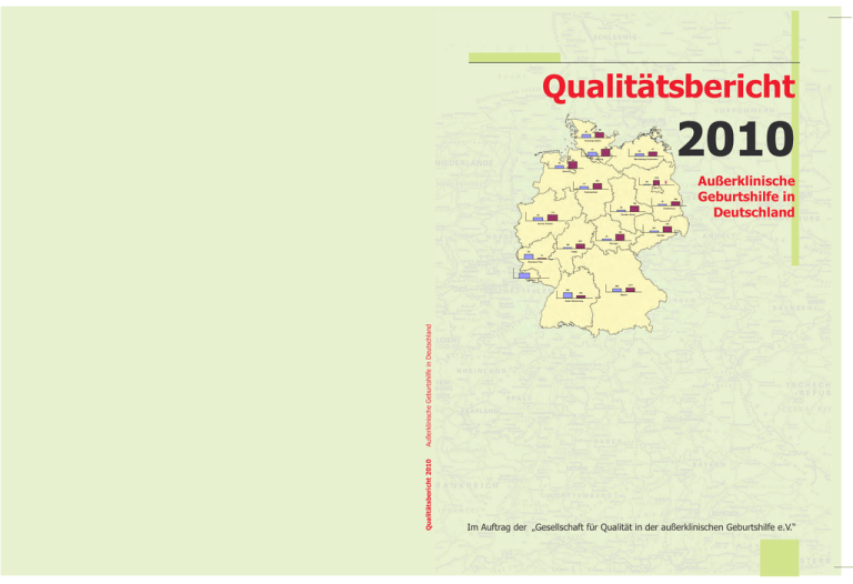 Qualitätsbericht 2010 Qualitätsbericht 2010 Außerklinische Geburtshilfe in Deutschland Außerklinische Geburtshilfe in Deutschland Im Auftrag der „Gesellschaft für Qualität in der außerklinischen Geburtshilfe e.V.“ Qualitätsbericht 2010 Außerklinische Geburtshilfe in Deutschland Herausgeber: Gesellschaft für Qualität in der außerklinischen Geburtshilfe e.V. (QUAG e.V.) Alle Rechte vorbehalten. Autorin: Christine Loytved Ansprechpartner für das Verfahren: Geschäftsstelle QUAG e.V., Anke Wiemer Telefon: (033678) 41 276 Telefax: (033678) 41 276 Email: [email protected] Internet: www.quag.de Druck und Verarbeitung: Verlag Wissenschaftliche Scripten Kaiserstraße 32, 08209 Auerbach/V. Telefon: (03744) 22 41 97 Telefax: (03744) 22 41 98 E-Mail: [email protected] 1. Auflage 2012 ISBN: 978-3-942267-38-0 Qualitätsbericht 2010 Außerklinische Geburtshilfe in Deutschland Im Auftrag der "Gesellschaft für Qualität in der außerklinischen Geburtshilfe e.V." Inhalt 1 EINLEITUNG......................................................................................................... 3 1.1 Erfasste Geburten ............................................................................................................ 3 1.2 Zur Frage der Vollständigkeit ......................................................................................... 4 1.3 Der Dokumentationsbogen ............................................................................................. 6 2 DATENÜBERBLICK / SUMMARY 2010............................................................... 9 2.1 Die Geburten aus 2010 im Überblick ............................................................................ 14 3 BETEILIGTE EINRICHTUNGEN UND GEBURTENZAHLEN ............................ 16 3.1 Beteiligte Hebammen und Einrichtungen .................................................................... 16 3.2 Geburtenzahlen nach Einrichtung................................................................................ 16 3.3 Gruppierte Geburtenzahlen der einzelnen Einrichtungen.......................................... 17 3.4 Aus den Bundesländern................................................................................................ 18 3.4.1 Geburtenzahlen nach Einrichtung und Bundesland .................................................. 18 3.4.2 Errechbarkeit des außerklinischen Angebots ............................................................ 19 4 ANGABEN ZU DEN BETREUTEN FRAUEN ..................................................... 20 4.1 Geburtenrang und Alter der Frauen ............................................................................. 20 4.2 Motivation der Frauen.................................................................................................... 21 4.3 Berufstätigkeit in der Schwangerschaft ...................................................................... 22 5 BETREUUNG IN DER SCHWANGERSCHAFT ................................................. 23 5.1 Kontakt zur Hebamme ................................................................................................... 23 5.2 Rat und Hilfe in der Schwangerschaft ......................................................................... 24 5.3 Dokumentierte Befunde in der Schwangerschaft ....................................................... 27 QUALITÄTSBERICHT 2010 AUSSERKLINISCHE GEBURTSHILFE IN DEUTSCHLAND 1 6 GEBURT ............................................................................................................. 31 6.1 Geburtsort wie geplant? ................................................................................................ 31 6.2 Hebammenbetreuung .................................................................................................... 32 6.2.1 Betreuungszeit (Zeitintervall vom Eintreffen der Hebamme bis zur Geburt des Kindes).................... 32 6.2.2 Zusätzliche Hilfs- und Begleitpersonen während einer außerklinischen Geburt ....... 33 6.3 Verlegung der Gebärenden ........................................................................................... 35 6.3.1 Entfernung zur nächstgelegenen Klinik nach beteiligter Einrichtung......................... 35 6.3.2 Verlegungen während der Geburt ............................................................................. 36 6.3.2.1 Transportmittel bei der Verlegung in Ruhe und im Notfall ................................... 36 6.3.2.2 Entfernungen zur Klinik und Betreuung in der Klinik............................................ 37 6.3.2.3 Restliche Geburtsdauer nach Verlegung in Ruhe oder in Not ............................. 38 6.3.3 Betreuungskontinuität nach der Verlegung................................................................ 39 6.4 Dokumentierte Geburtsbefunde ................................................................................... 35 6.5 Geburtsspezifische Ergebnisse.................................................................................... 45 6.5.1 Geburtsmodus und -dauer......................................................................................... 45 6.5.2 Gebärpositionen ........................................................................................................ 47 6.5.3 Geburtsverletzungen ................................................................................................. 47 6.5.4 Begleitende Maßnahmen........................................................................................... 50 6.6 Nach der Geburt des Kindes ......................................................................................... 52 6.6.1 Gesundheit der Mutter ............................................................................................... 52 6.6.2 Postpartale Verlegungen von Müttern ....................................................................... 53 6.6.3 Gesundheit der Kinder nach der Geburt.....................................................